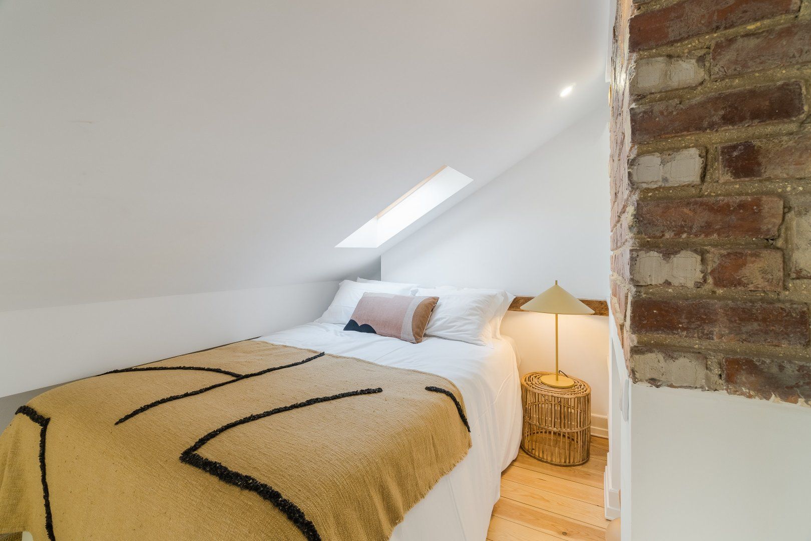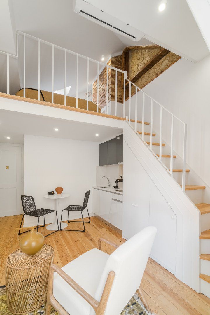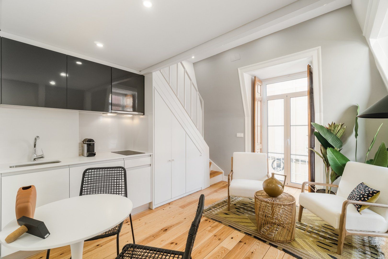 Inside, it’s a timeless canvas of high ceilings, hardwood floors and floor-to-ceiling French windows, ushering in heaps of natural light. Though compact, the interior is exquisitely renovated and offers all the bells and whistles for a comfortable stay, including a modern kitchen and a cosy mezzanine bedroom. However, the real highlight is undoubtedly the little balcony. Drenched in sunlight and furnished with a table and chairs, it's a lovely spot for alfresco breakfasts in the sun. Spend mornings roosted here, sipping coffee amidst the terracotta-tiled rooftops before a stroll through Eduardo VII Park, just seventeen minutes away on foot.