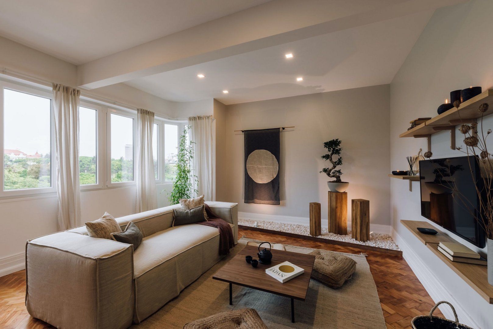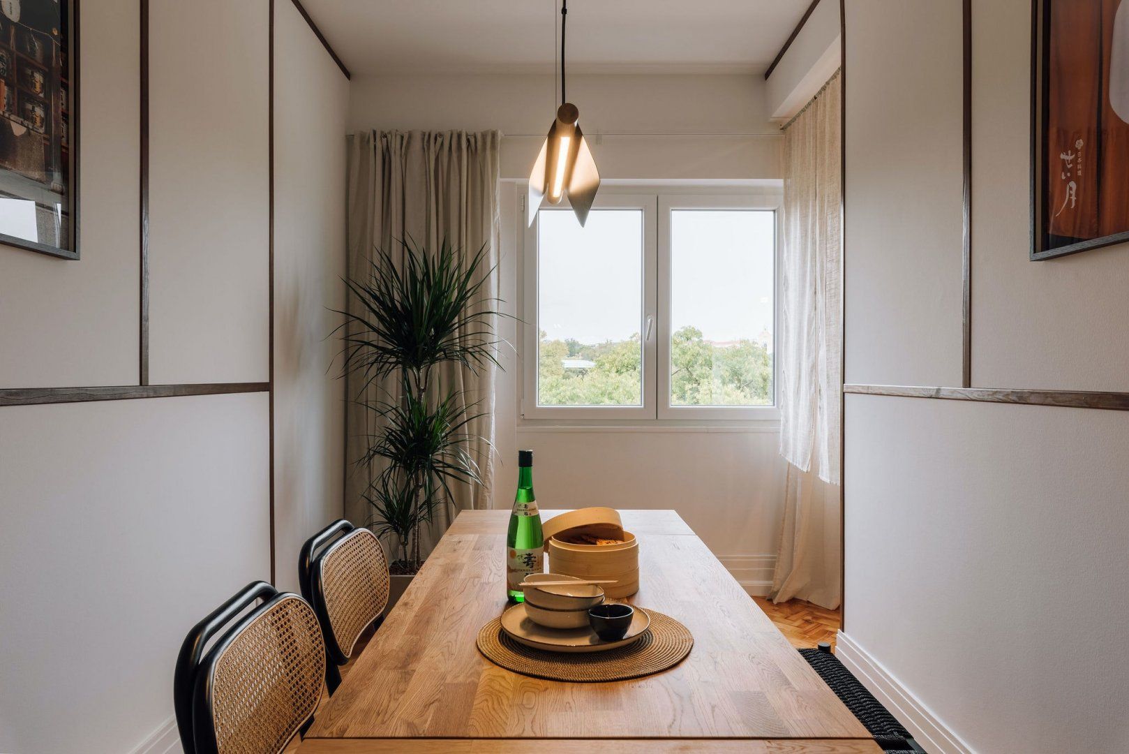 A vision of Japanese serenity in Lisbon’s Santo António neighbourhood, this beautiful apartment is an ideal retreat for those looking for a peaceful stay away from the tourist crowds. We love the natural hues that have been used in the home’s colour block walls and the shoji-inspired panelling that is featured in most rooms. A rock garden complete with a bonsai makes the living area a chilled out space, ideal for kicking back on the sofa with a glass of wine and a vinyl on the record machine. Choosing where to enjoy your homemade Portuguese feasts is tough with a sunny dining room beckoning larger gatherings and a window-framed dining snug off of the kitchen – an ideal spot for morning coffees while basking in the city’s rays. The two bedrooms, meanwhile, are equally relaxing with their parquet flooring and mellow palettes, and each boasts its own desk space should you need to catch up on work. When you’re ready to head out for a day of exploring, you’ll find plenty to see and do within easy reach. Take a stroll through Parque Eduardo VII (a four-minute walk), treat yourself to some luxury shopping along Avenida da Liberdade (a five-minute walk) and explore the fado bars that line the cobbled streets of Bairro Alto, a twenty-five-minute stroll from your door.