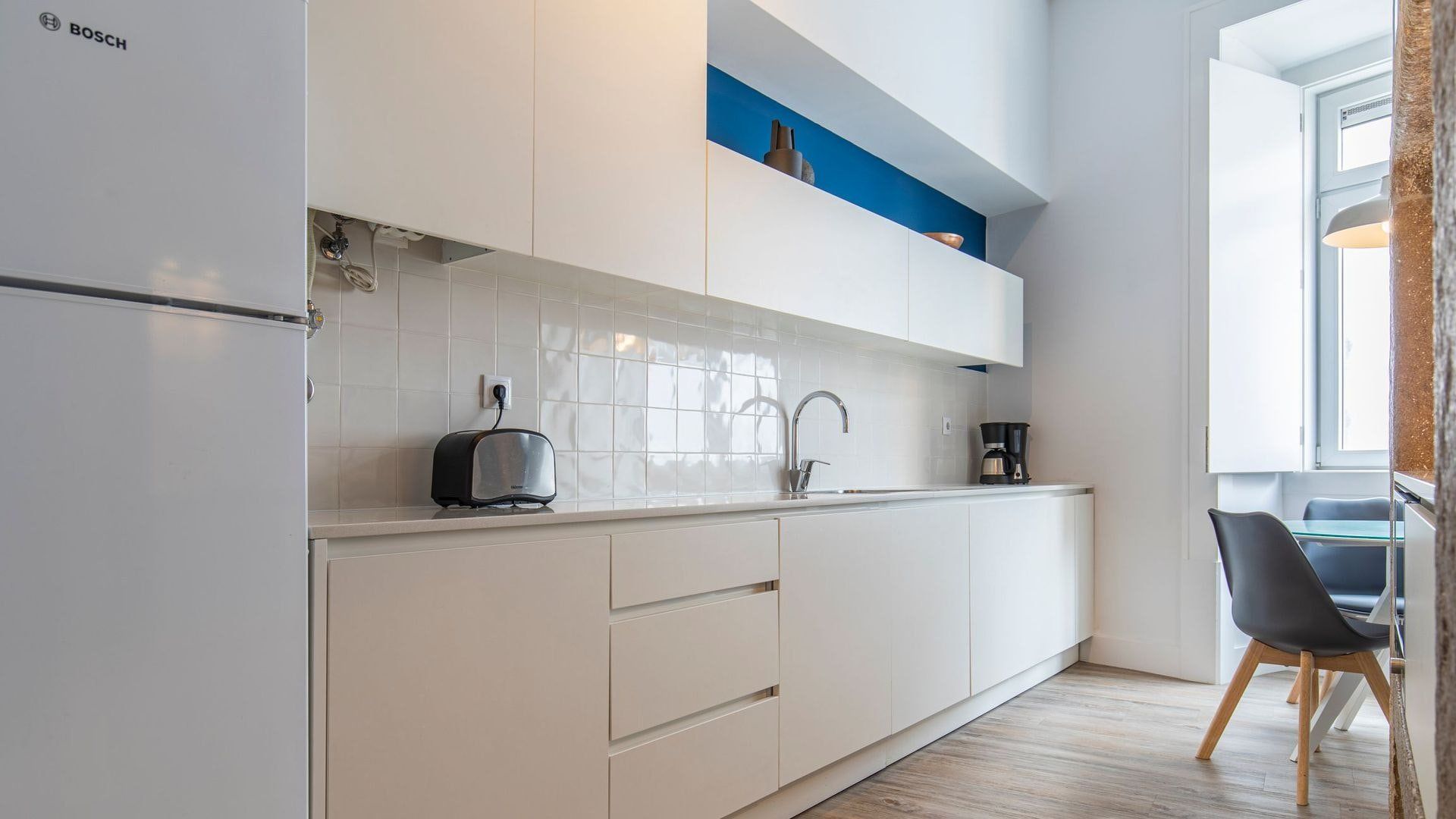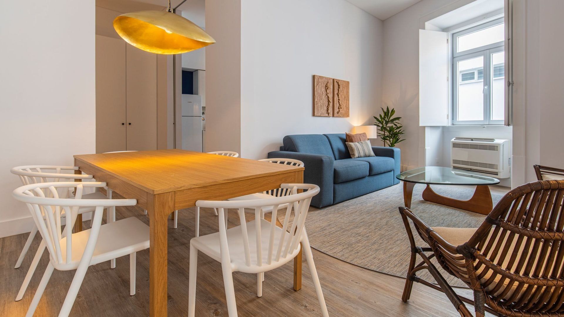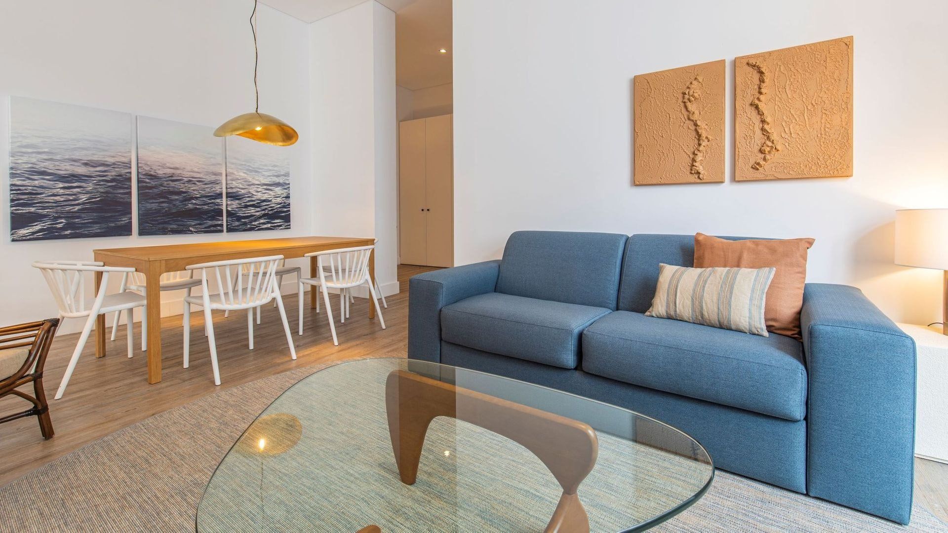 Wandering through the streets of Santos provides the perfect opportunity to admire Lisbon’s beautiful 18th-century mansions. And sitting within a sky-blue building, this apartment brings a contemporary touch to the rich heritage of its location.