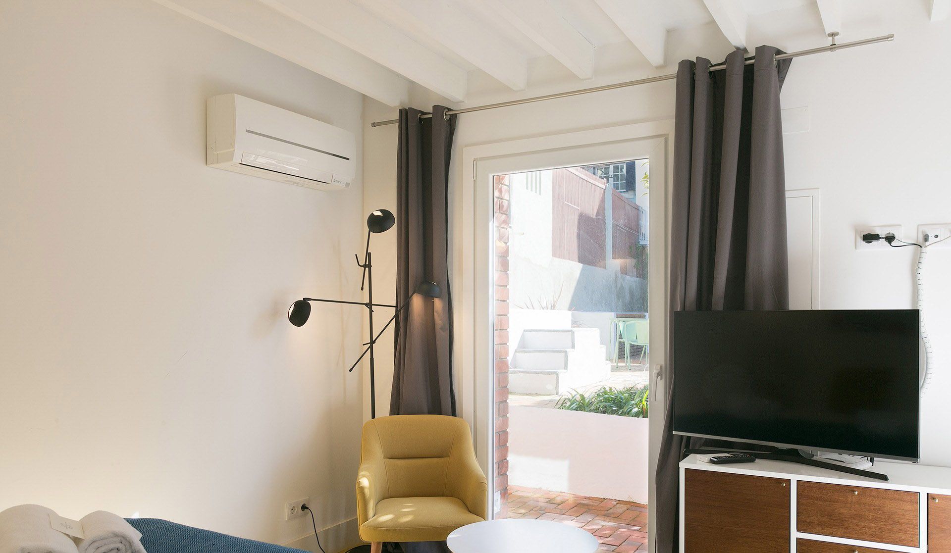 Located in authentic Graça, with charming buildings, churches and restaurants nearby, plus easy access to tram 28, this little apartment is a true hidden gem. While the interiors may not be the most inspiring and the kitchen is on the smaller side, the real standout here is the pretty terrace, which serves as an idyllic spot for alfresco breakfasts or to enjoy a chilled glass of wine under the orange trees. The shared garden also provides a shaded oasis for you to relax after exploring the local area and climbing the city's biggest hills – you'll find the Senhora do Monte a short walk away.
