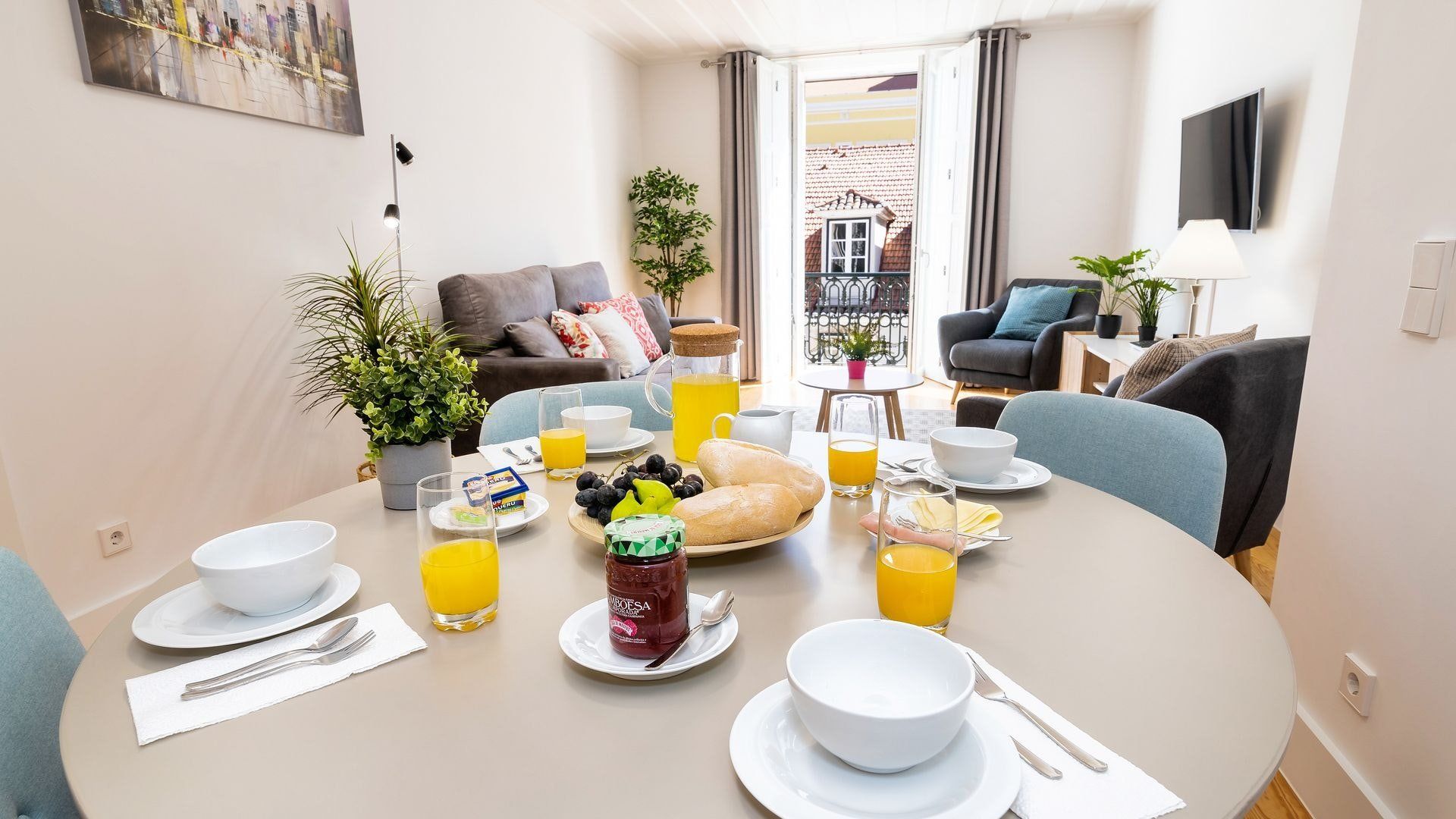 Back at this lovely apartment, take in the fabulous views over the River Tagus with a glass of rosé wine – we love the traditional tiles here too. Inside, an array of plants give this place a homely feel. Enjoy a pastel de nata at the dining table or relax on the comfy grey sofa after all that sightseeing. This home is perfect for a couple or friends looking for a sophisticated setting.