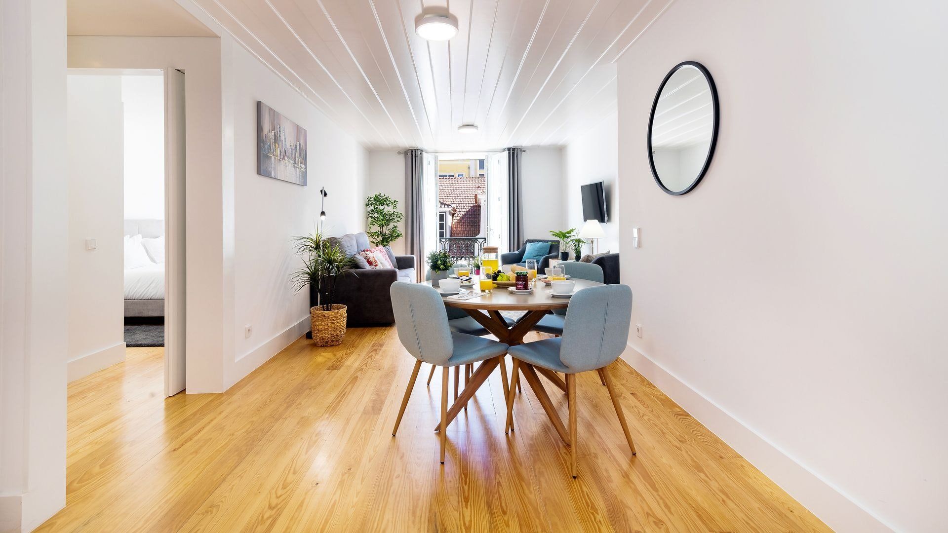 If browsing stylish boutiques is your bag, then this home in chic Chiado is just the ticket. You'll also find stylish restaurants, and the iconic 1700s Bertrand Bookstore here. It's just a two-minute stroll to Praça Luís de Camões with its statues of Portuguese literary icons, while the National Theatre of São Carlos is five minutes on foot. Other attractions nearby include Lisbon Cathedral, under a twenty-minute walk and the Elevador De Santa Justa, a ten-minute saunter.