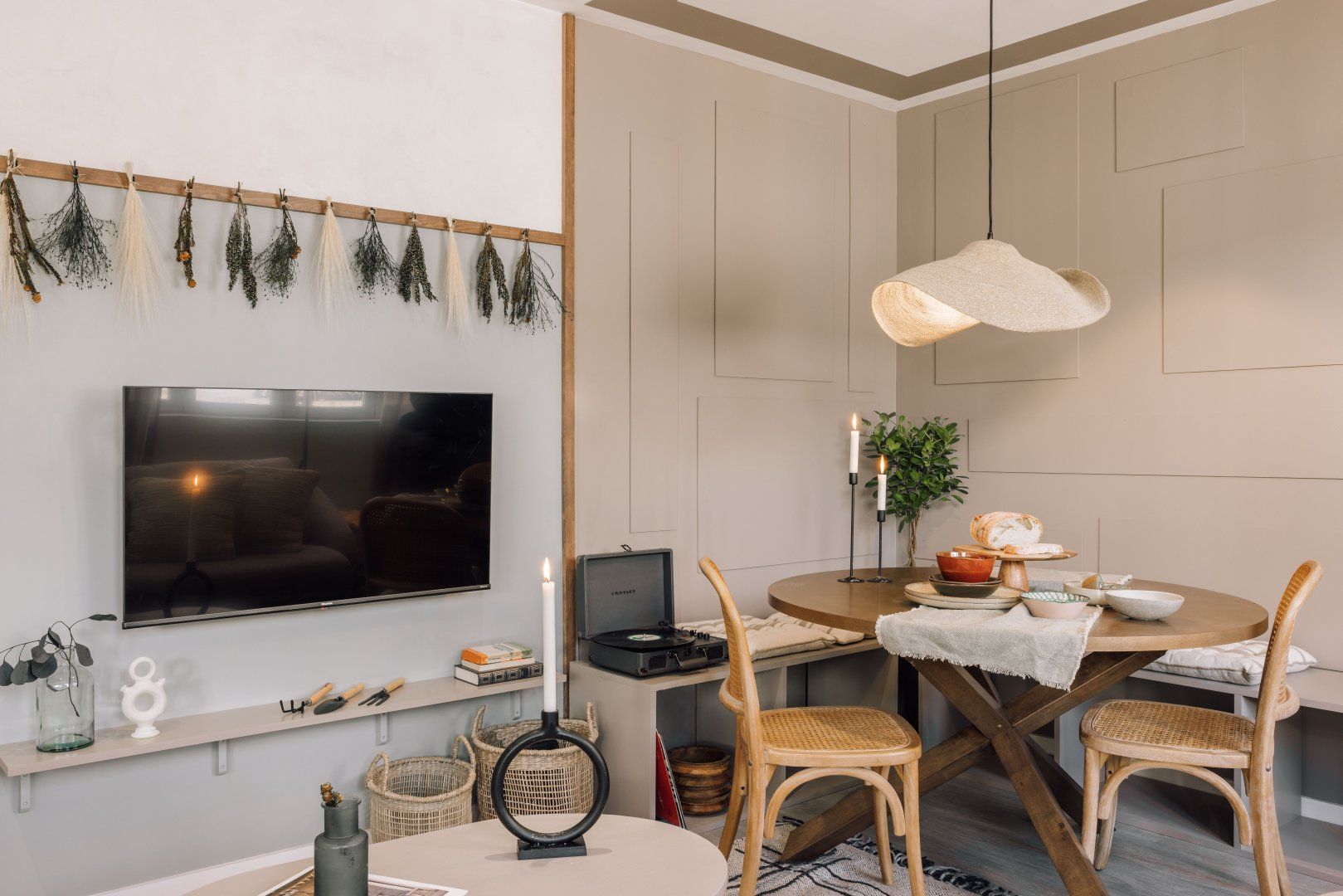 Discerning design lovers will find perfect contentment in this Arroios apartment. From the soft tones and personal touches to the cosy furnishings, every detail has been considered to bring ease to your city stay. There is also a dedicated home office for remote workers and everyone can enjoy listening to records or watching movies. It’s worth noting you may hear some street noise while you are here, but this is a sweet option if you’re seeking comfort and style in a great location. Outside, you can stroll to restaurants, cafes and shops. It’s also just a short walk to the nearest metro station – making it easy to access central Lisbon.