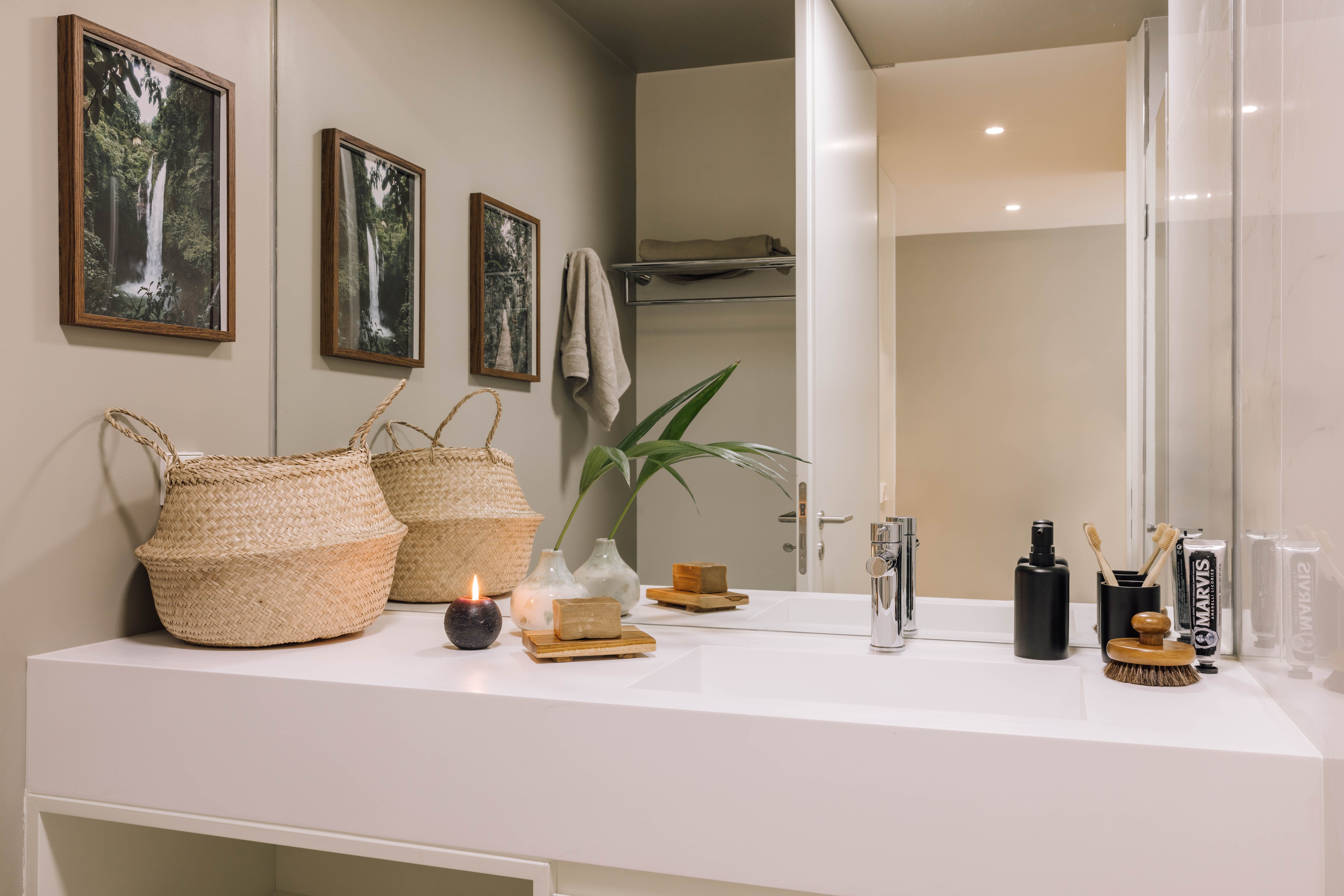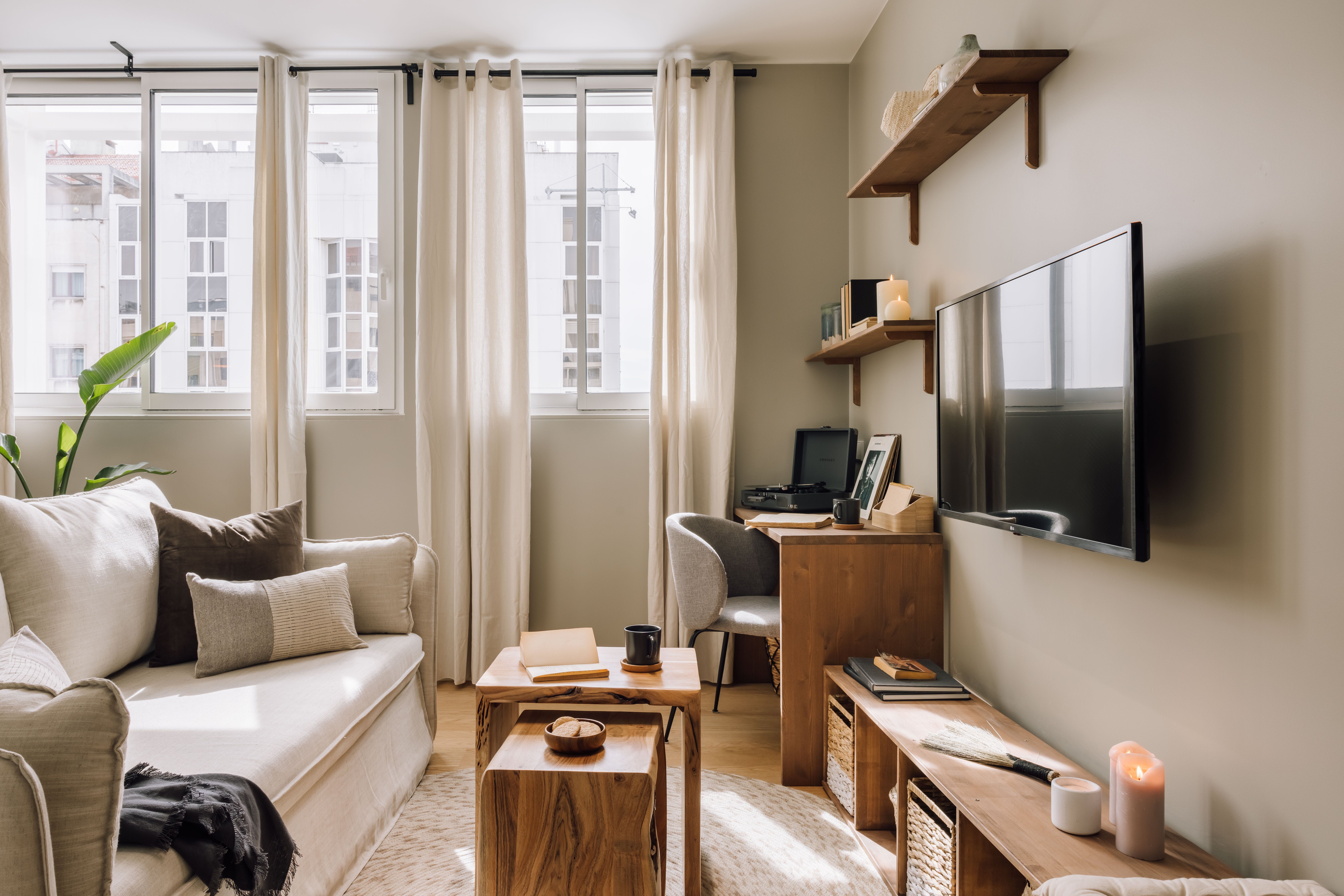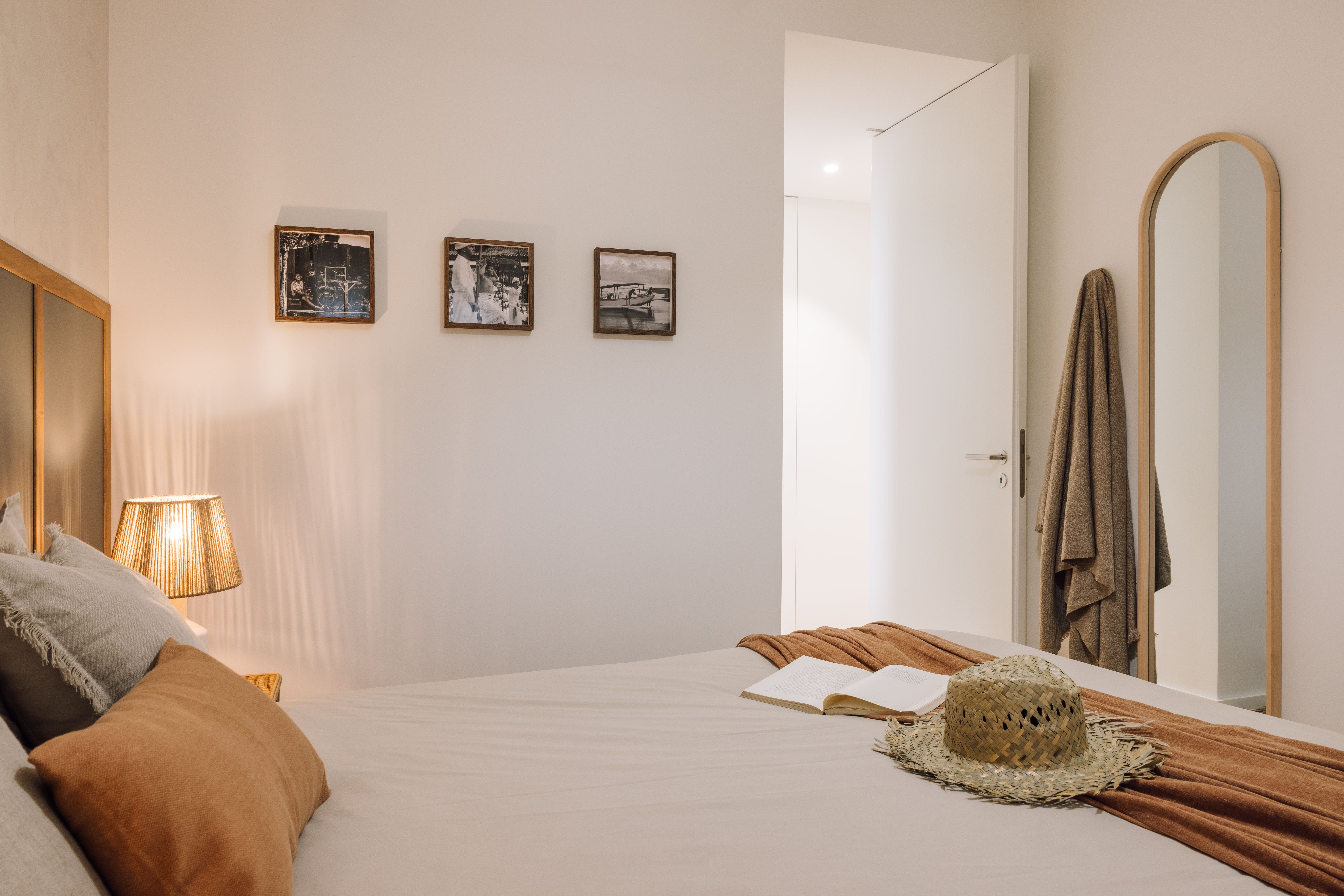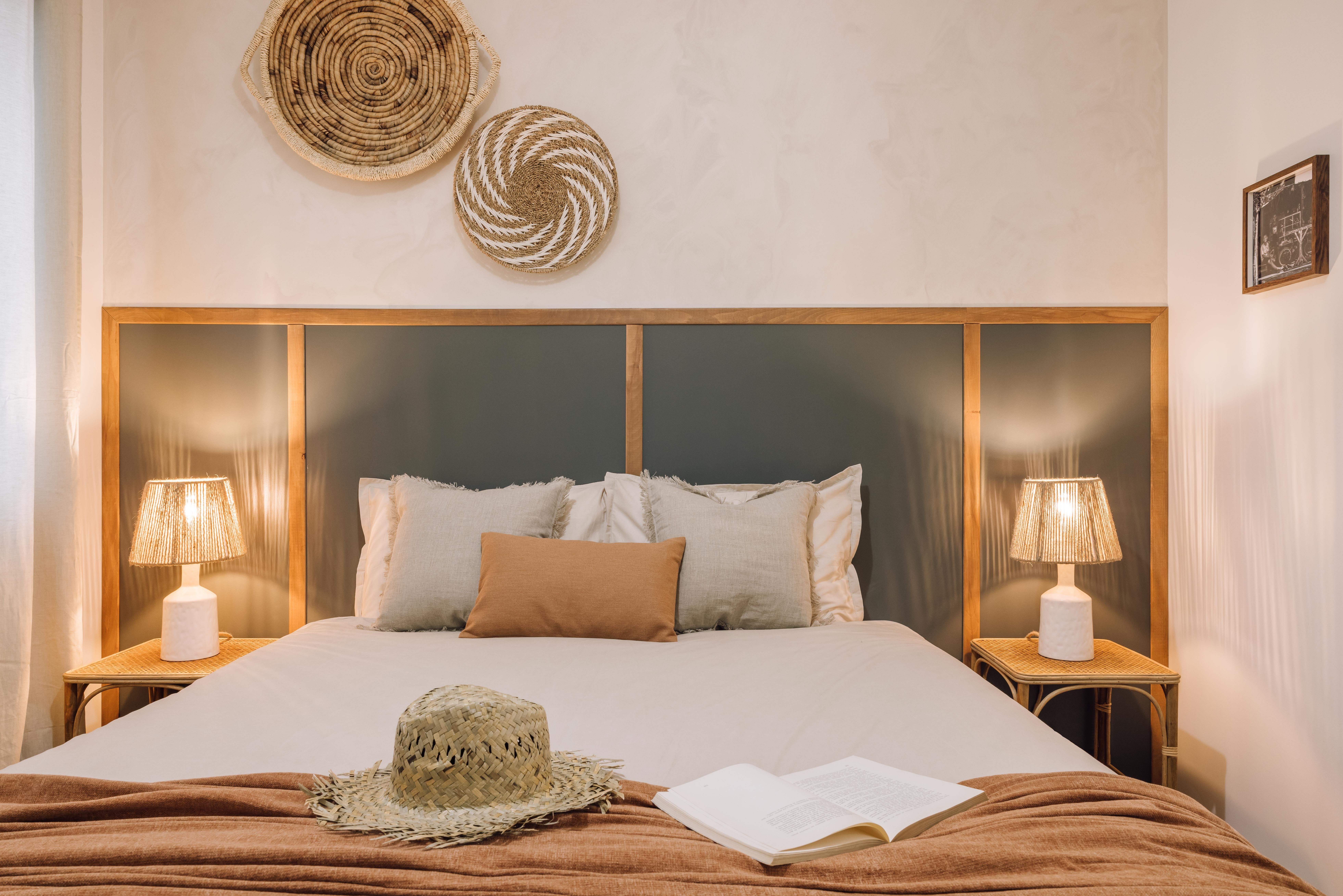 A hop, skip and a jump from the buzzing centre of Lisbon, you’ll find this haven of boho calm. A couple or even a solo traveller can delight in the stylish decor of this apartment. Natural light pours in from big windows in the living room, and here you’ll find a neutral palette of cream, wood and fawn to assist in your post-sightseeing relaxation. Ink-black accents on the wooden dining table and green botanica add a touch of Japanese zen, and the kitchen has everything you need for self-catering. Those that need to work remotely will find a chic workstation perfect for catching up on emails.
