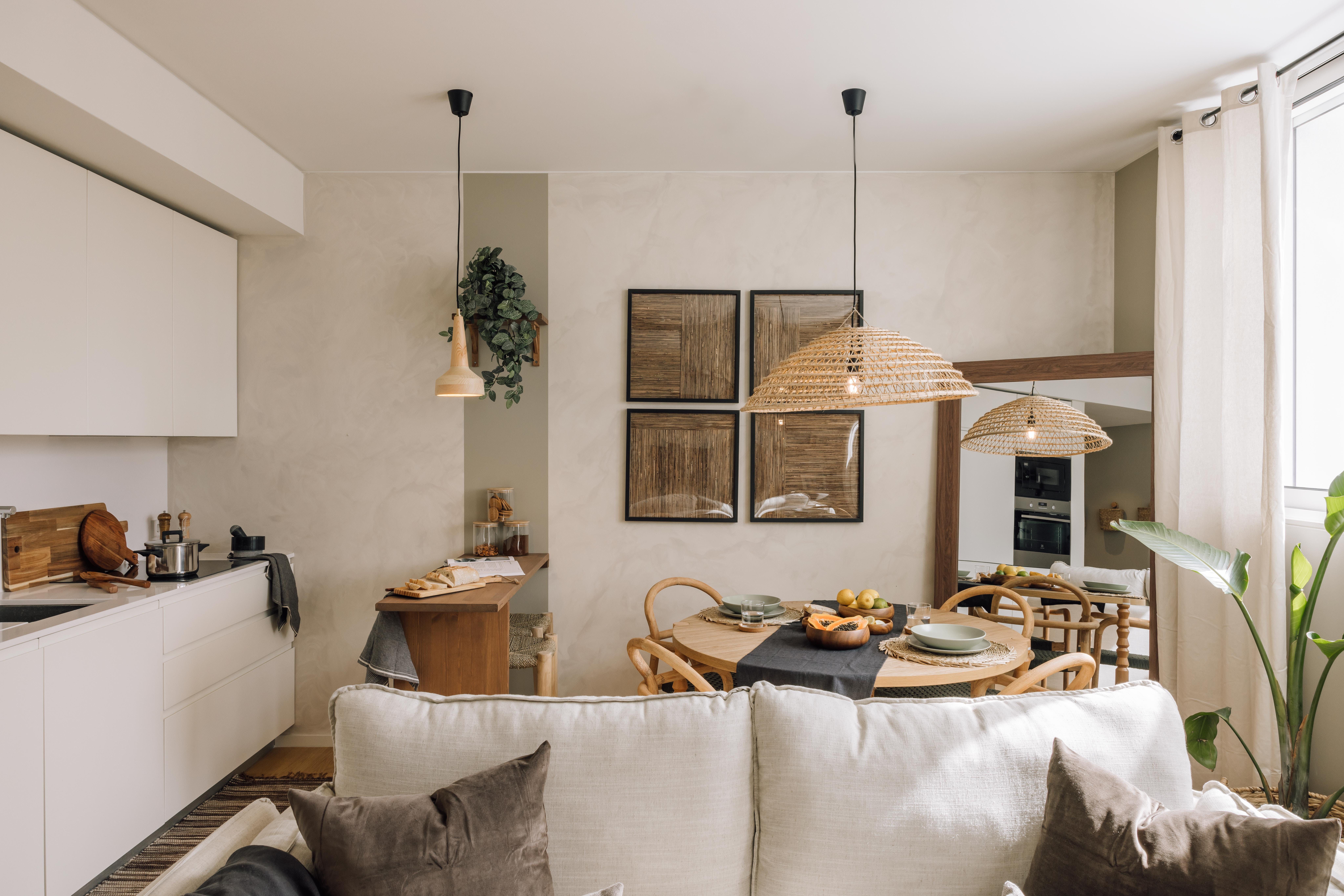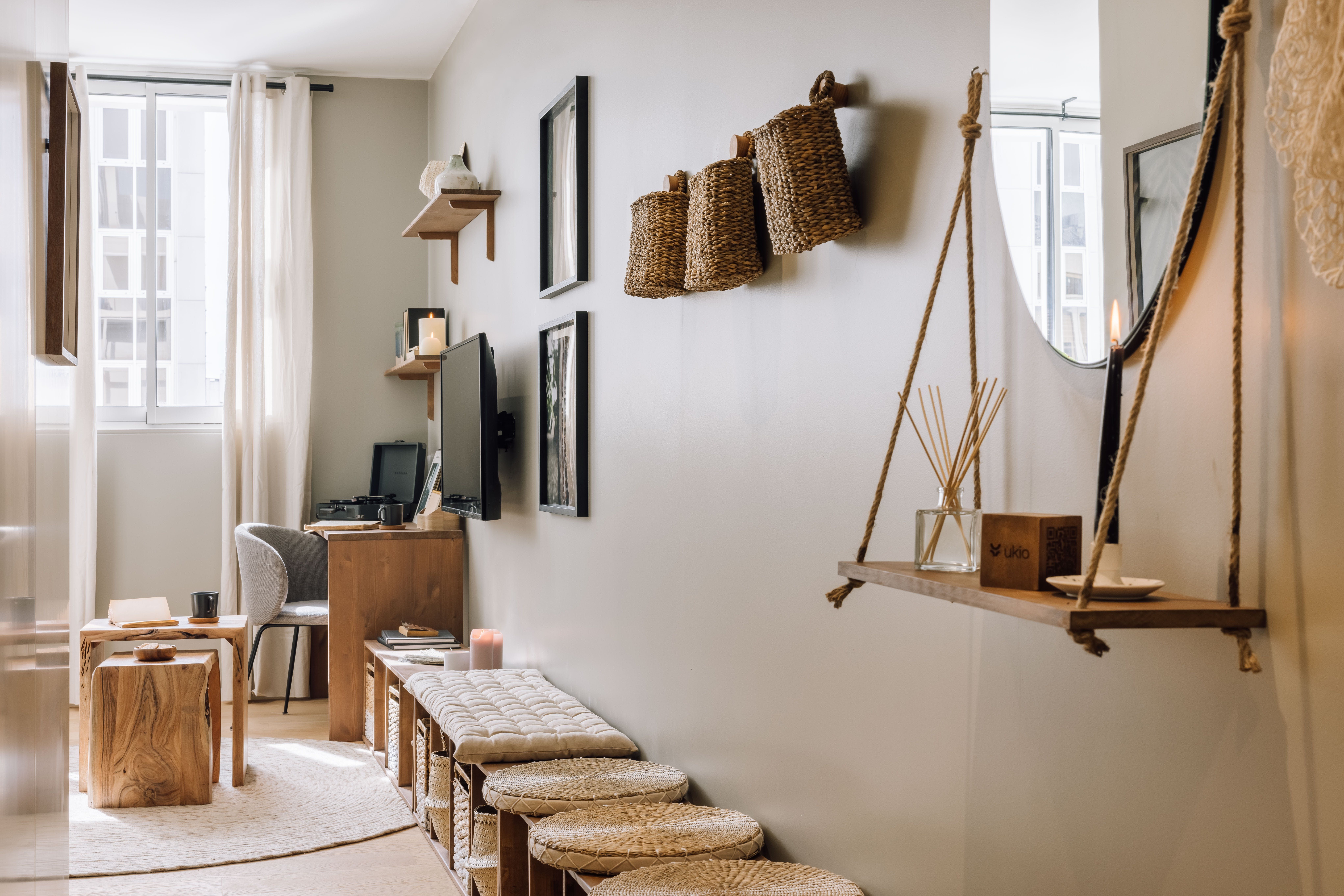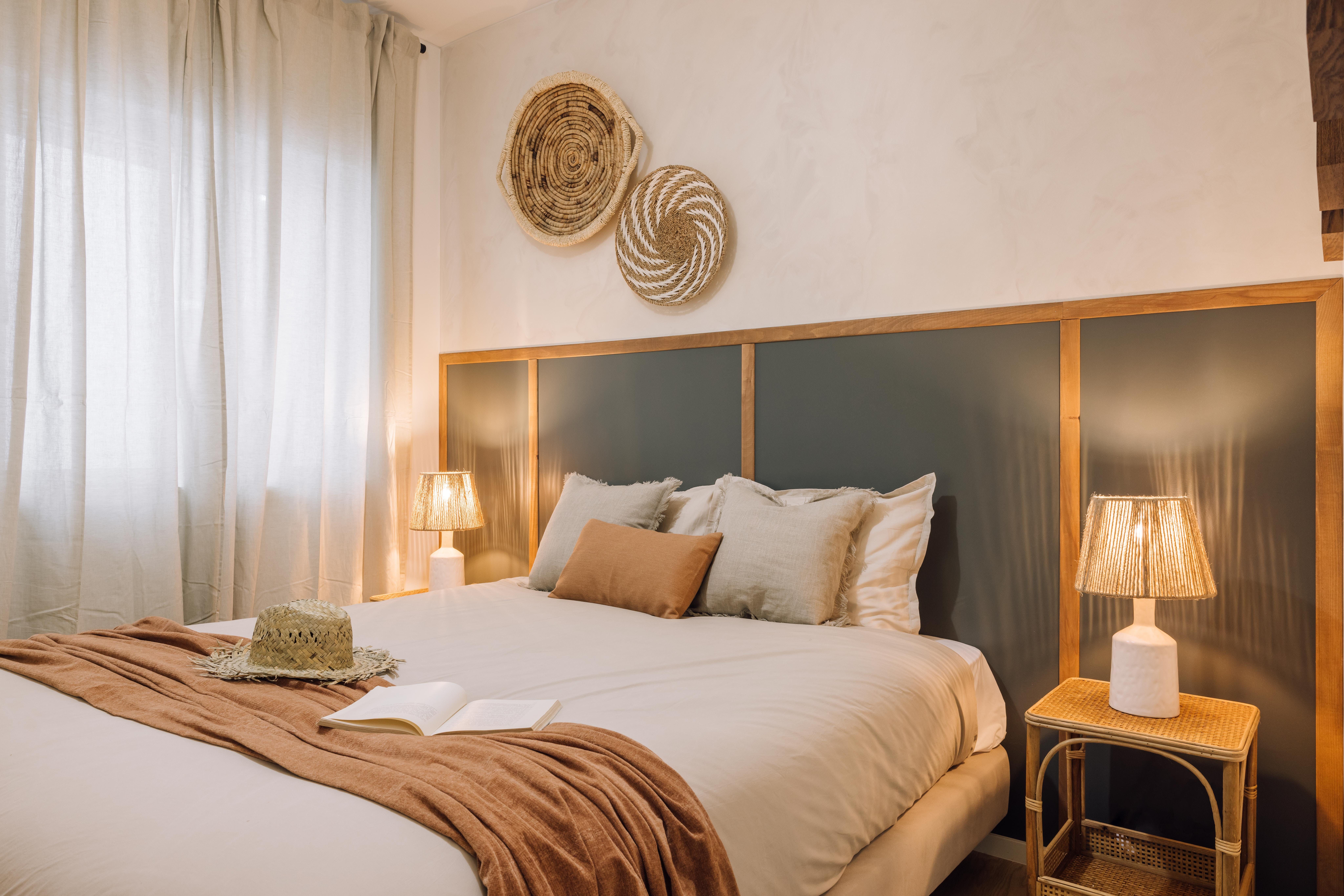 A hop, skip and a jump from the buzzing centre of Lisbon, you’ll find this haven of boho calm. A couple or even a solo traveller can delight in the stylish decor of this apartment. Natural light pours in from big windows in the living room, and here you’ll find a neutral palette of cream, wood and fawn to assist in your post-sightseeing relaxation. Ink-black accents on the wooden dining table and green botanica add a touch of Japanese zen, and the kitchen has everything you need for self-catering. Those that need to work remotely will find a chic workstation perfect for catching up on emails.