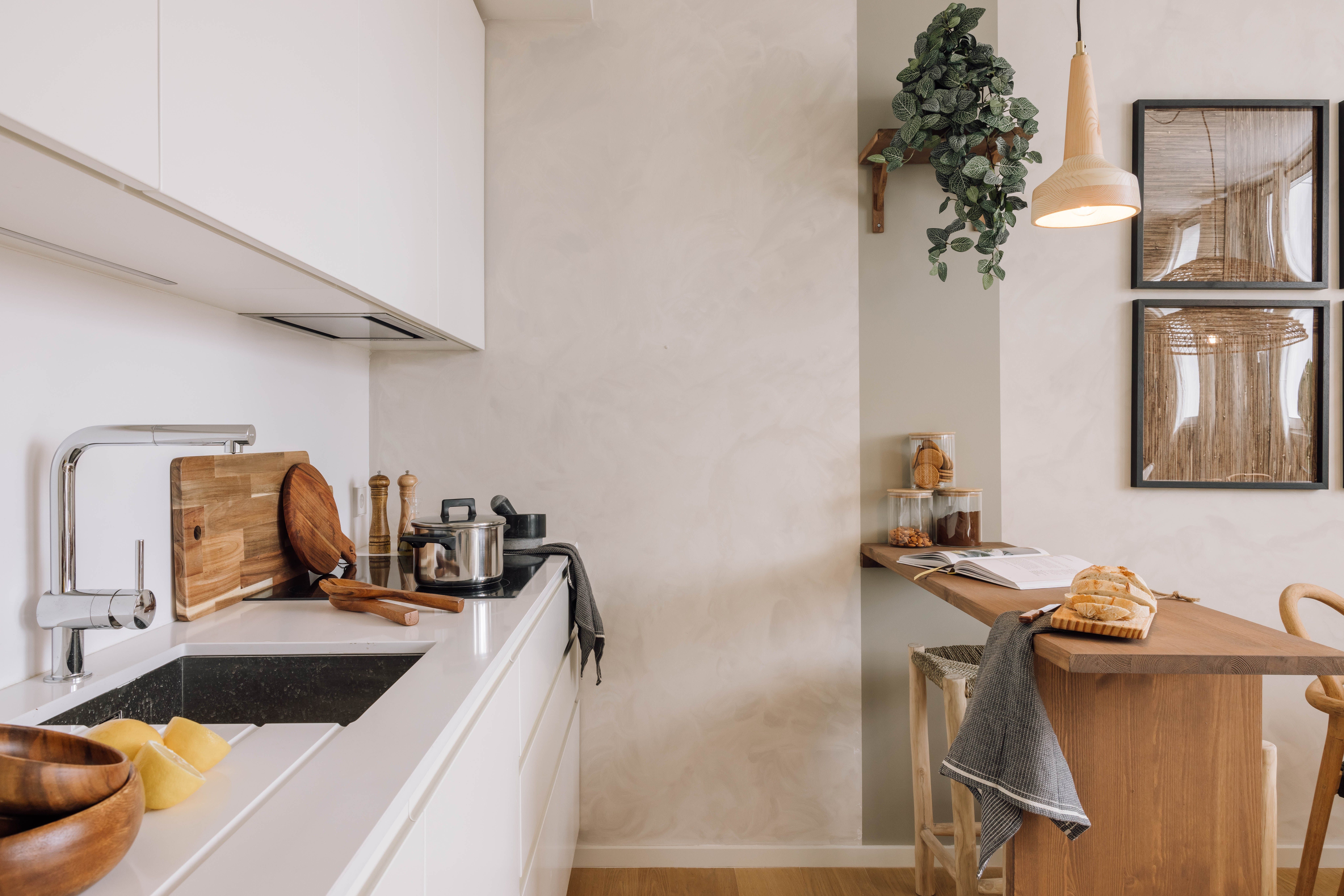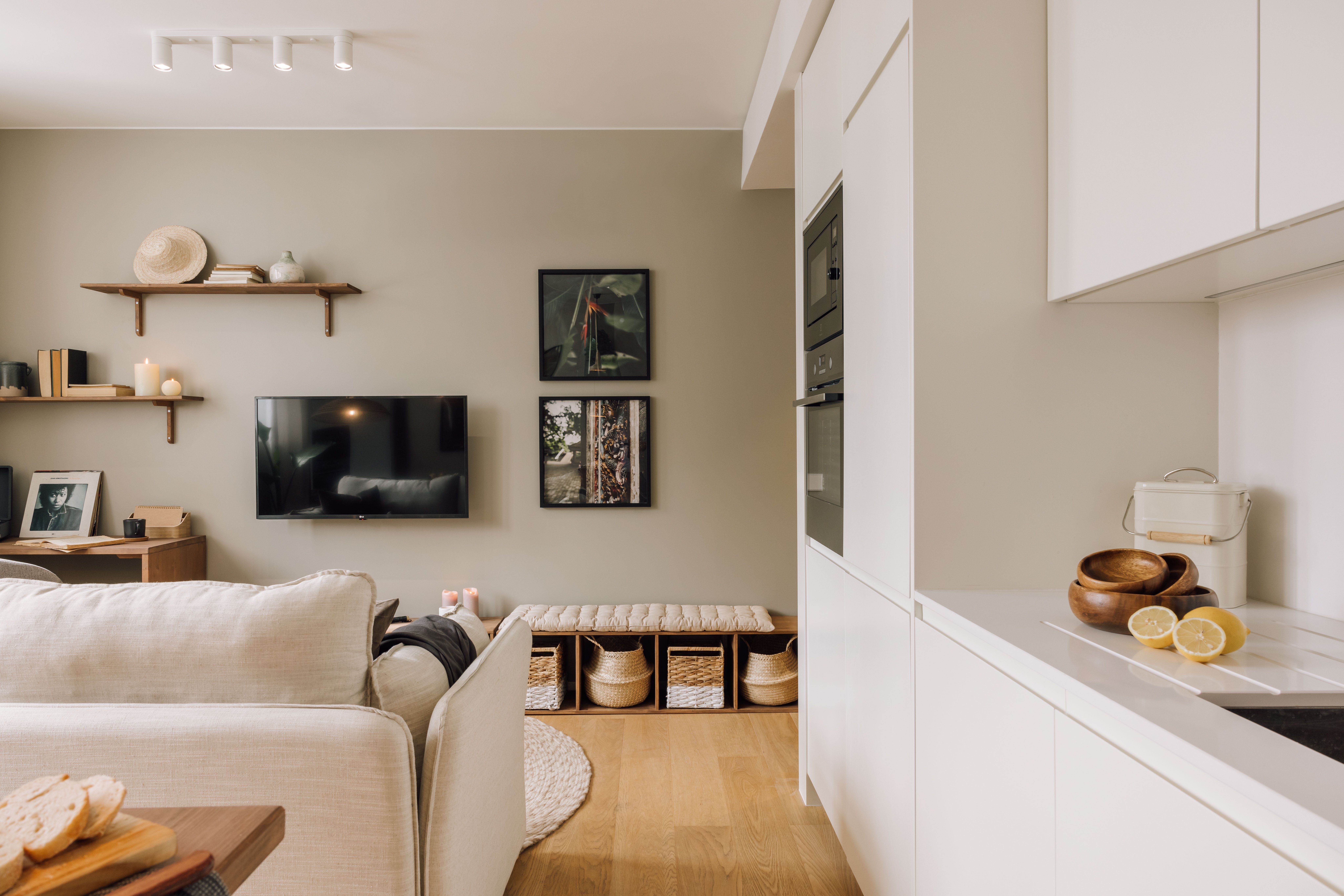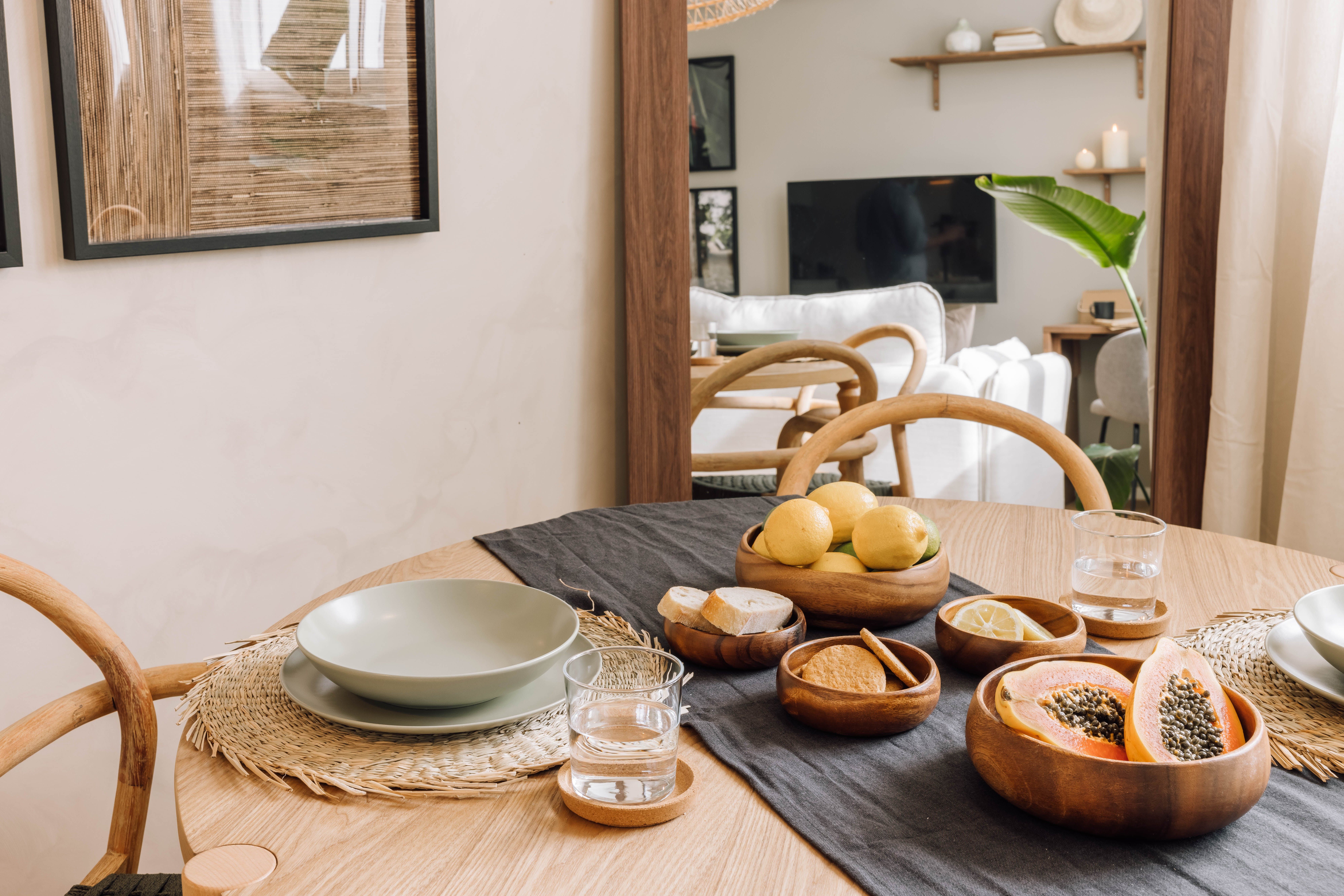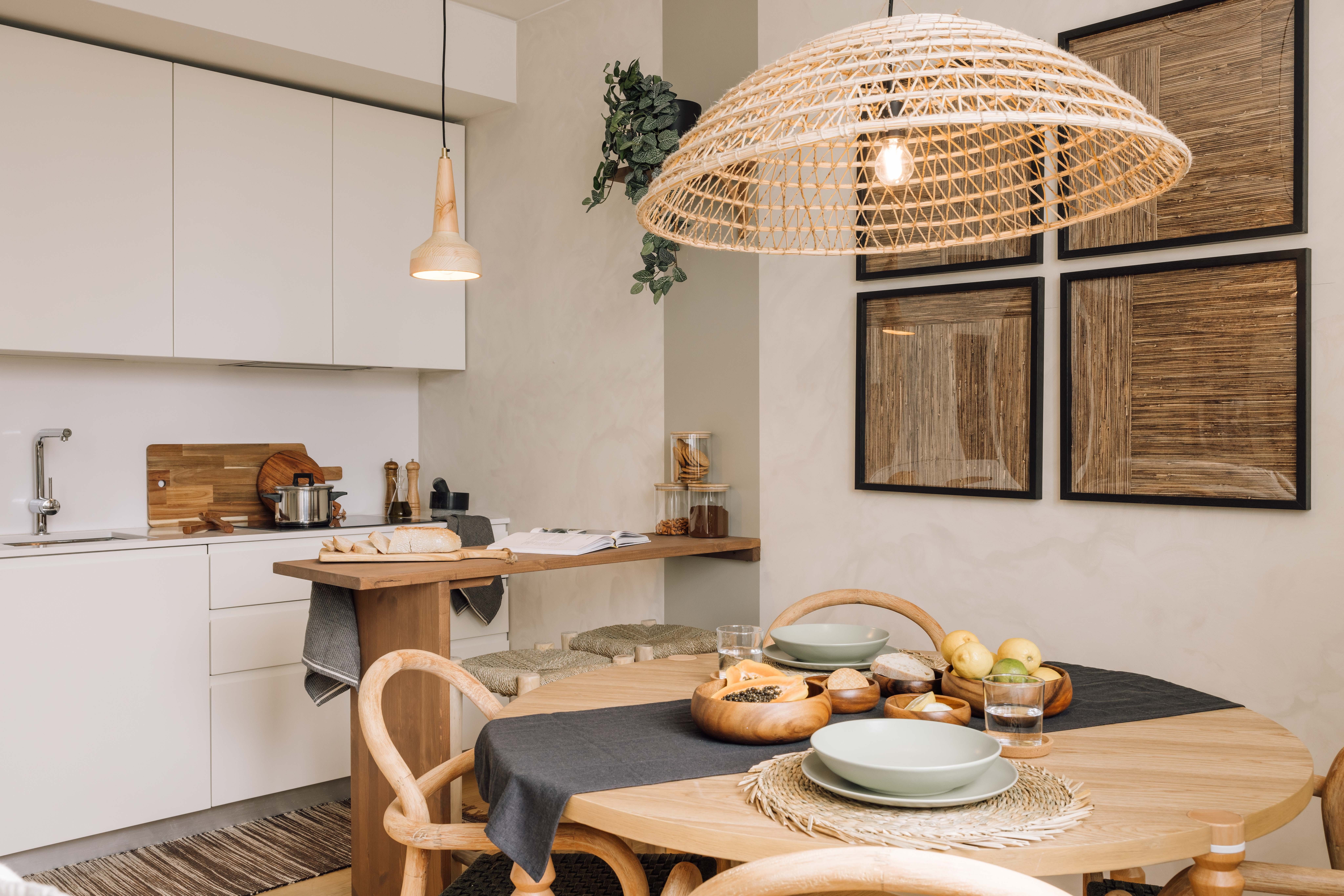 A hop, skip and a jump from the buzzing centre of Lisbon, you’ll find this haven of boho calm. A couple or even a solo traveller can delight in the stylish decor of this apartment. Natural light pours in from big windows in the living room, and here you’ll find a neutral palette of cream, wood and fawn to assist in your post-sightseeing relaxation. Ink-black accents on the wooden dining table and green botanica add a touch of Japanese zen, and the kitchen has everything you need for self-catering. Those that need to work remotely will find a chic workstation perfect for catching up on emails.