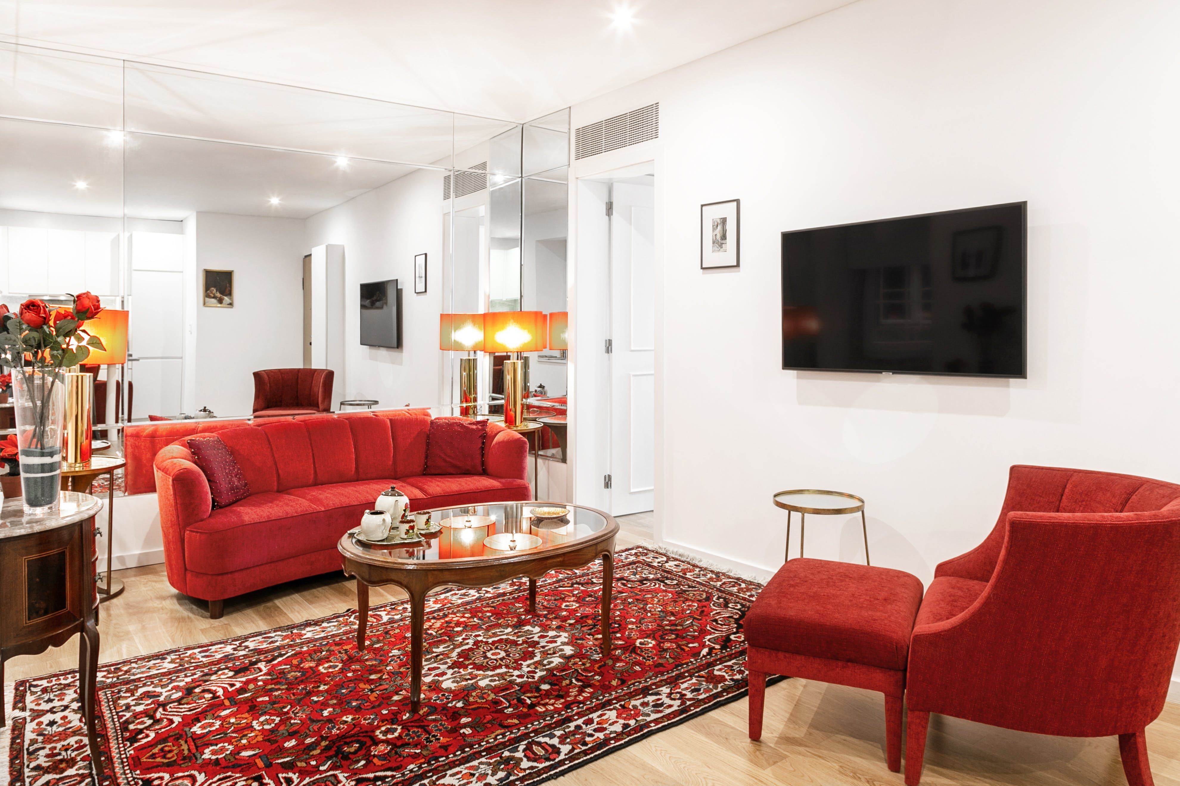 This apartment in the Chiado neighbourhood of Lisbon sure does tick a lot of our boxes. For a start, it's generously sized considering it's only for one or two guests — that's even with the mirrored wall in the main living space cleverly adding the illusion of extra space.