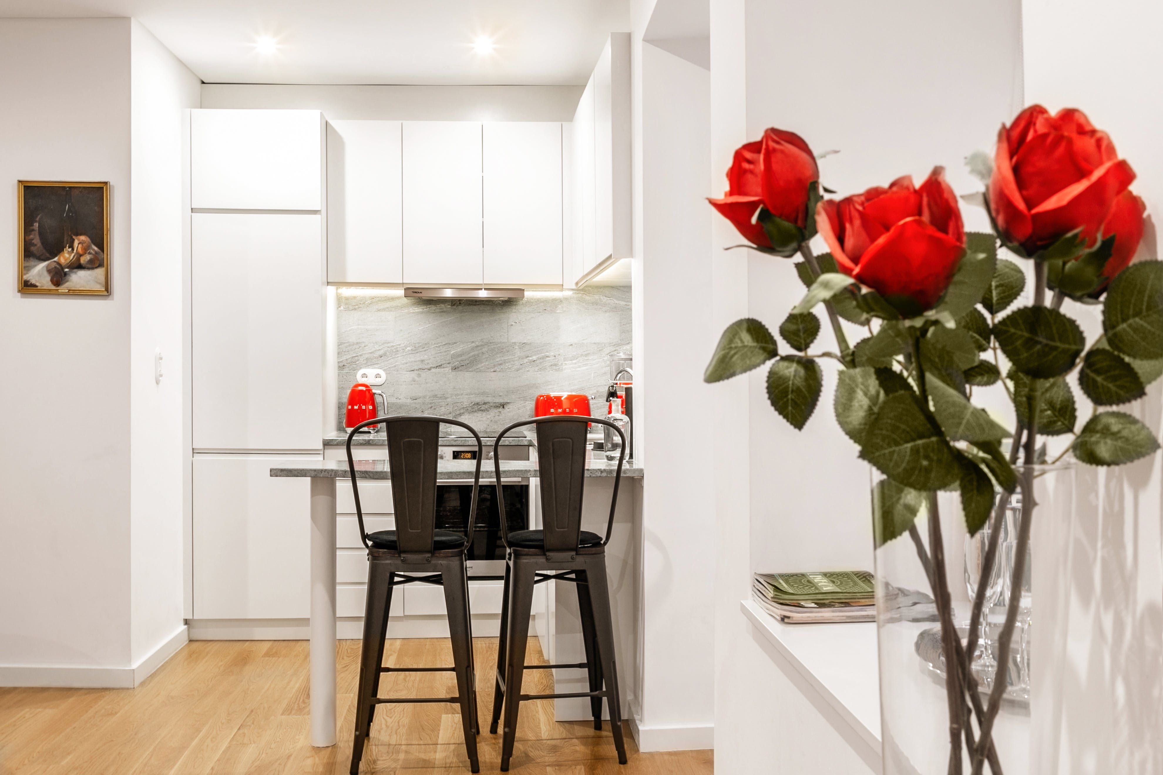 It's also plain to see that a great deal of thought and effort has gone into the design, which is a striking mixture of contemporary aspects such as the sleek kitchen with more traditional flourishes, particularly the vintage furnishings and rug. Add to that a Juliet balcony from which you can get a burst of fresh air at any point and you've got a really rather pleasant space in which to relax.