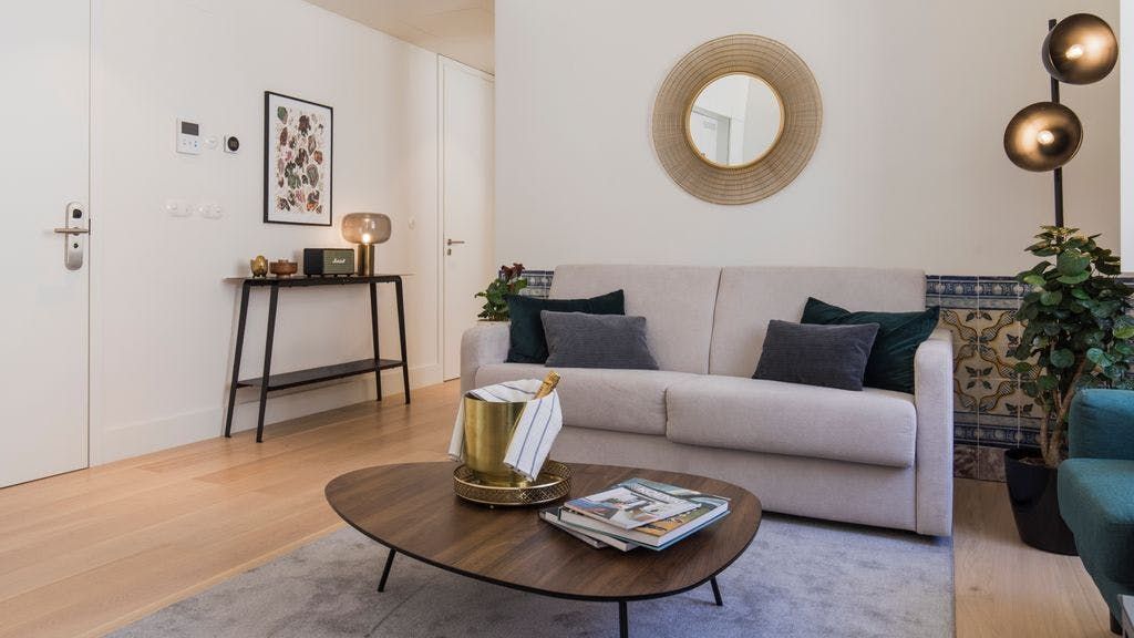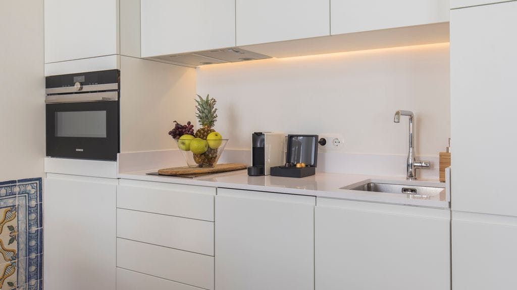 We love the traditional Portuguese tiles in the living room and bedroom, which contrast beautifully with the modern furnishings. Later on, if you don't want to eat out, rustle up some bacalhau à brás (scrambled eggs with salt cod, potatoes and olives) in the bright kitchen. Then get some rest in the stylish bedroom before starting another exciting day in Lisbon.