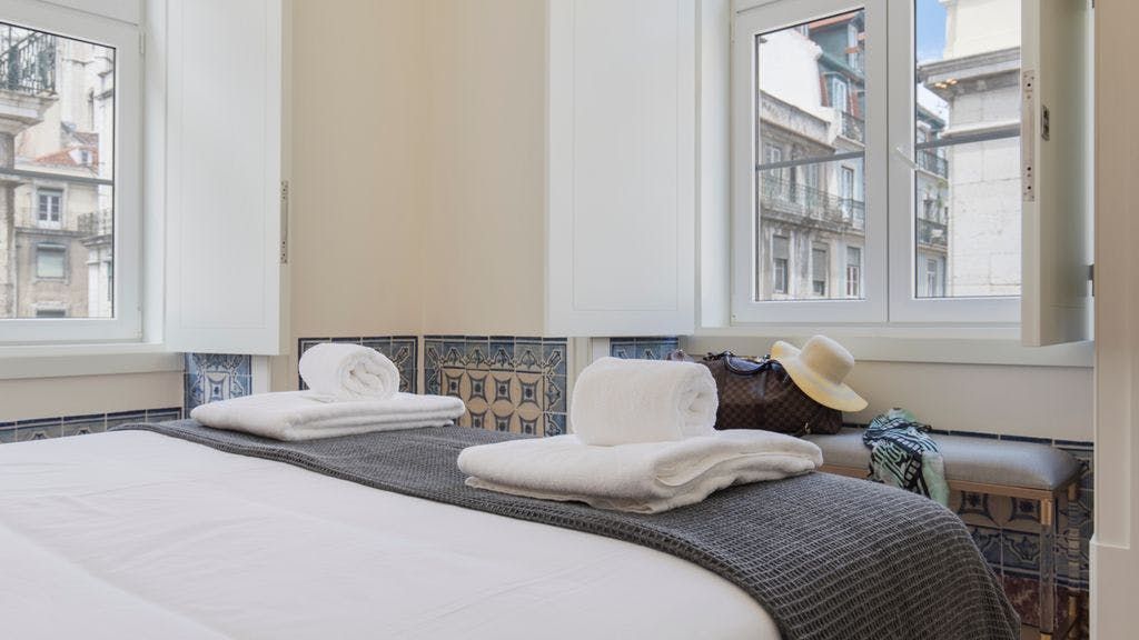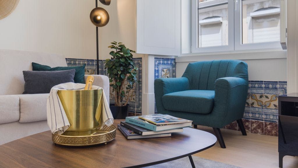 The famous Santa Justa Lift is a forty-second stroll from this lovely apartment. Praça do Comércio, a large, harbour-facing plaza with a range of cafes and museums, is eight minutes on foot. With a metro station and tram stops right around the corner, it's so easy to get around if you don't fancy walking. After a busy day of sightseeing, pick up some pastries from the bakery twenty seconds away from this home and put your feet up for a bit.