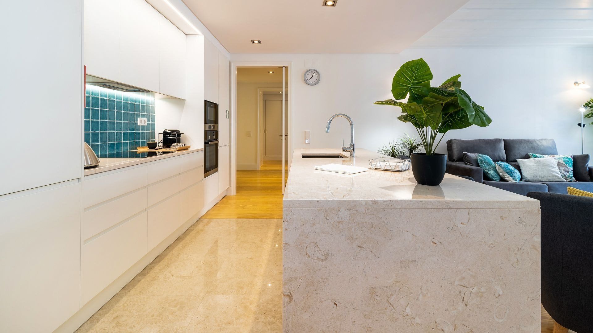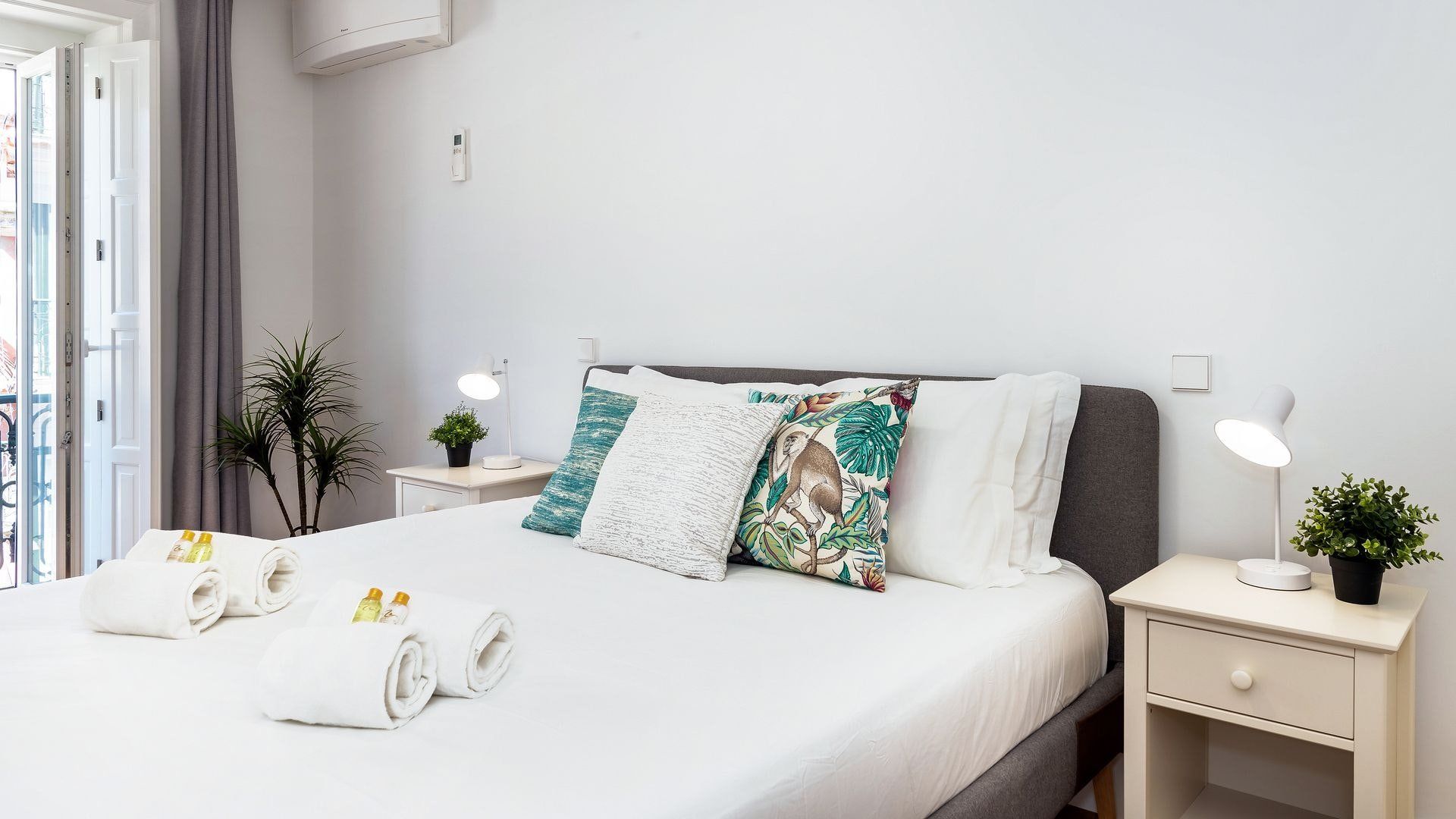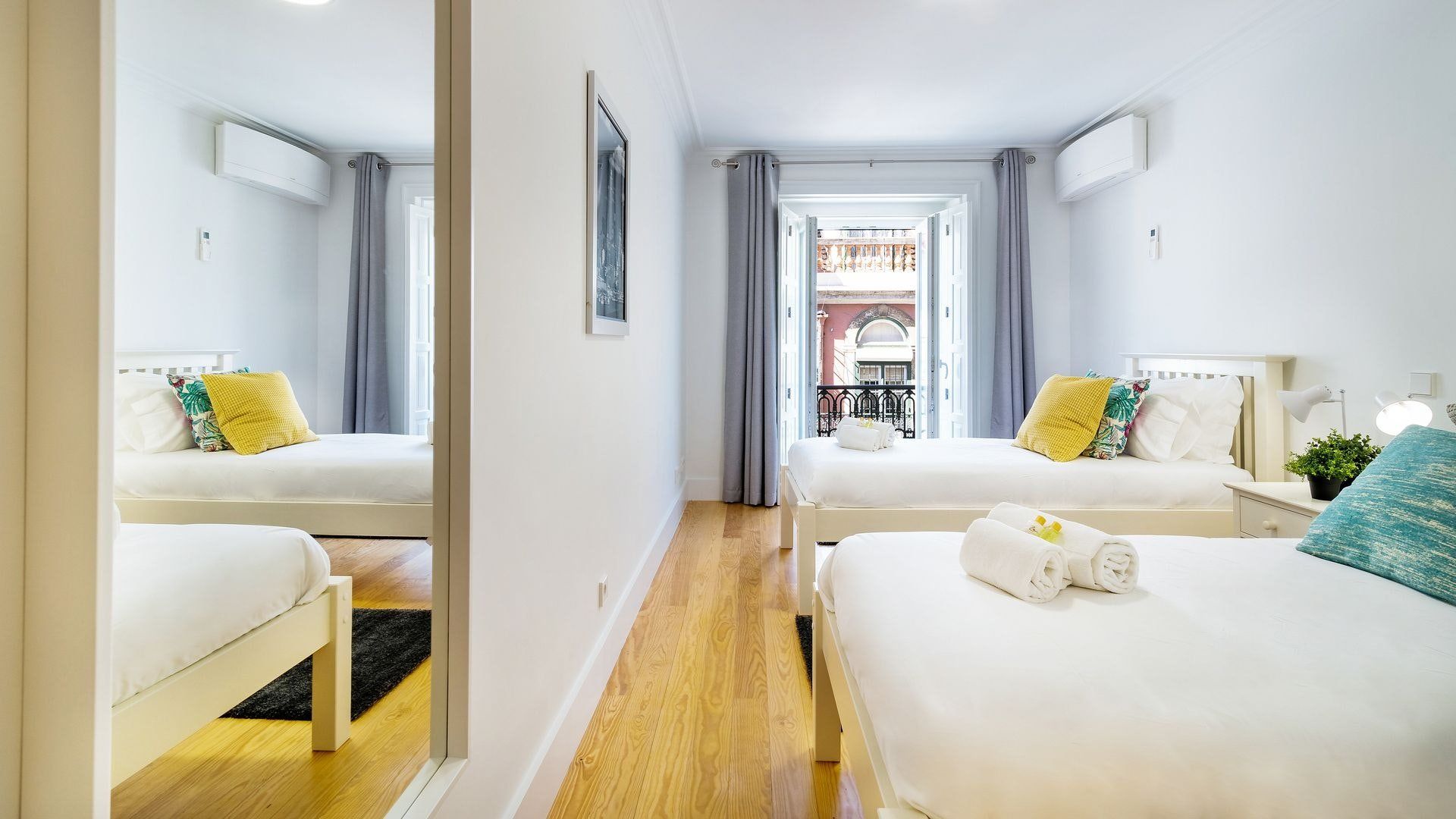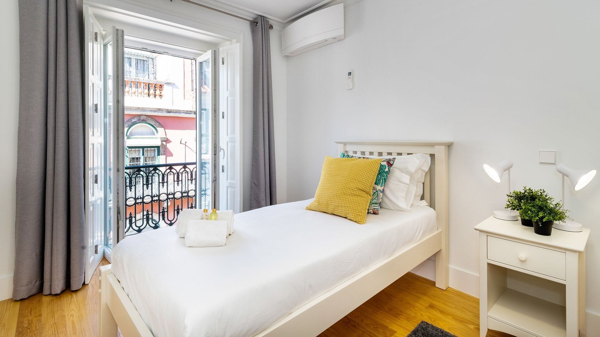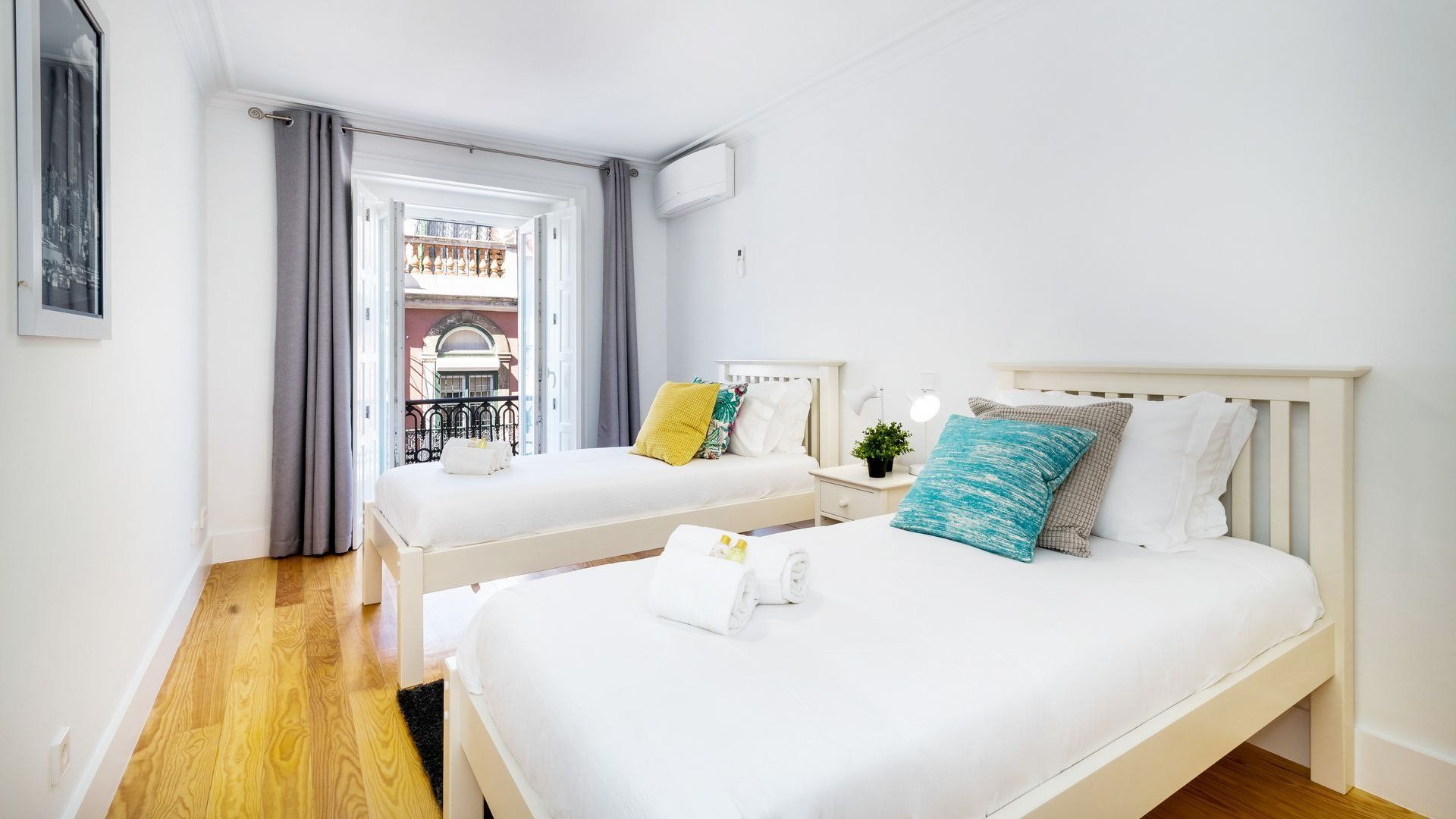 Take in the fabulous views over sought-after Chiado and the River Tagus with a glass of rosé wine when you stay at this home – we love the traditional tiles out here on the balcony. Inside, there are warm wood floors, window shutters, modern artworks and an array of plants creating a stylish interior. Two sets of French doors allow light to flood in, and there's plenty of entertaining space in the large open plan living area for your family or friends.