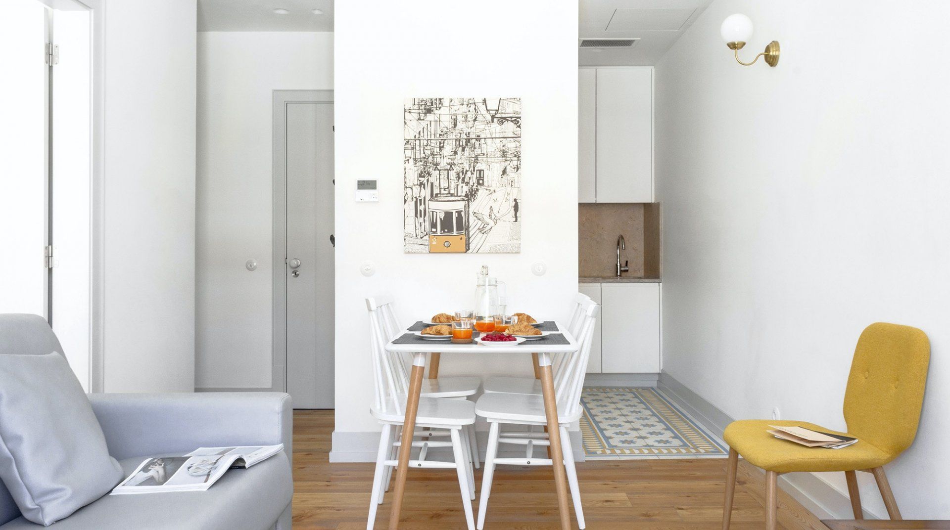 This is a small, cosy home, located right around the corner from the Sé Cathedral. It would best suit a couple of urban explorers who need a modern, central base that will allow them to move between the medieval neighbourhood of Alfama and the modern zones around Baixa-Chiado. Although the design is quite functional, we liked the touches of yellow in the living room and the azulejo tiles in the kitchen.