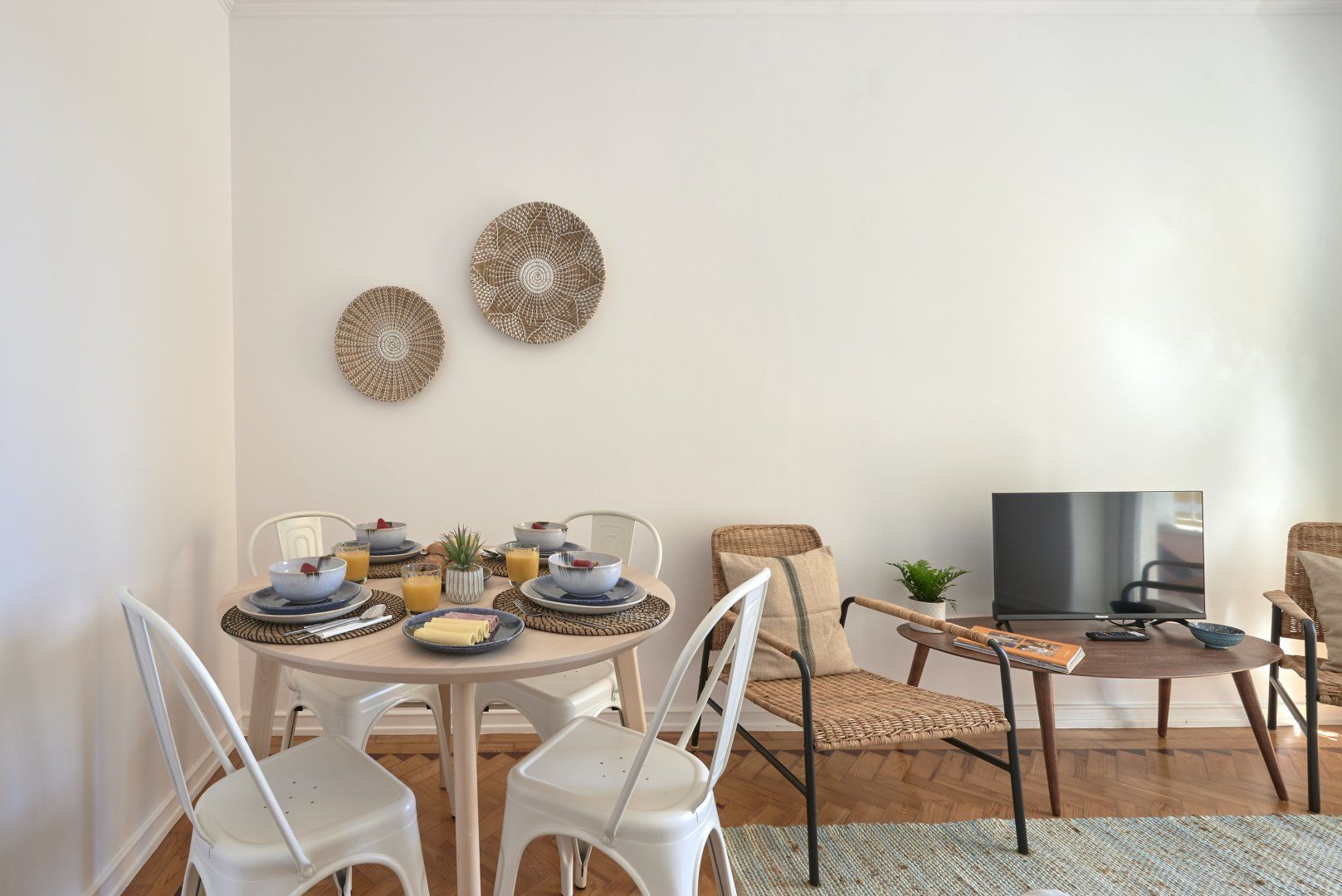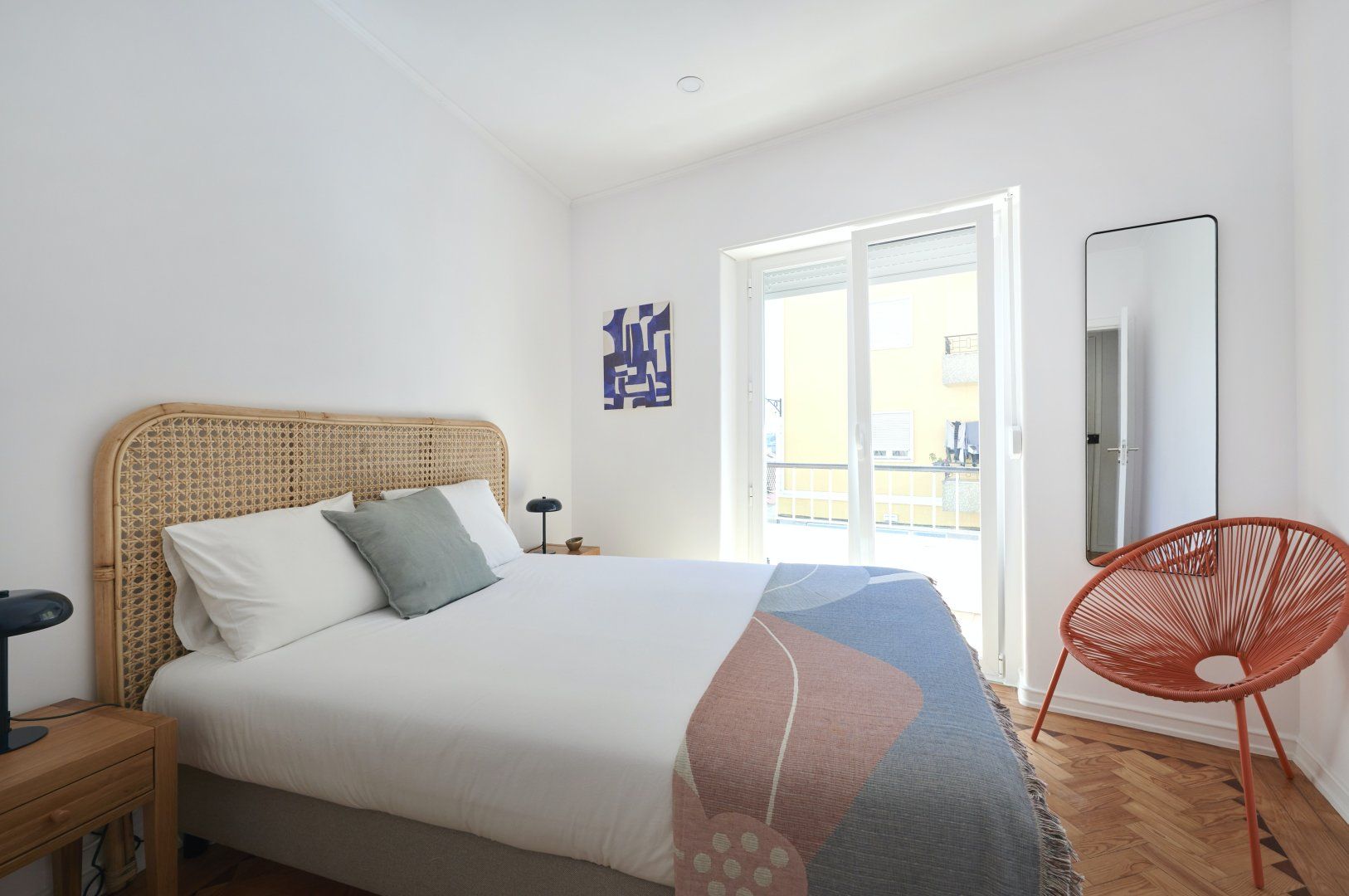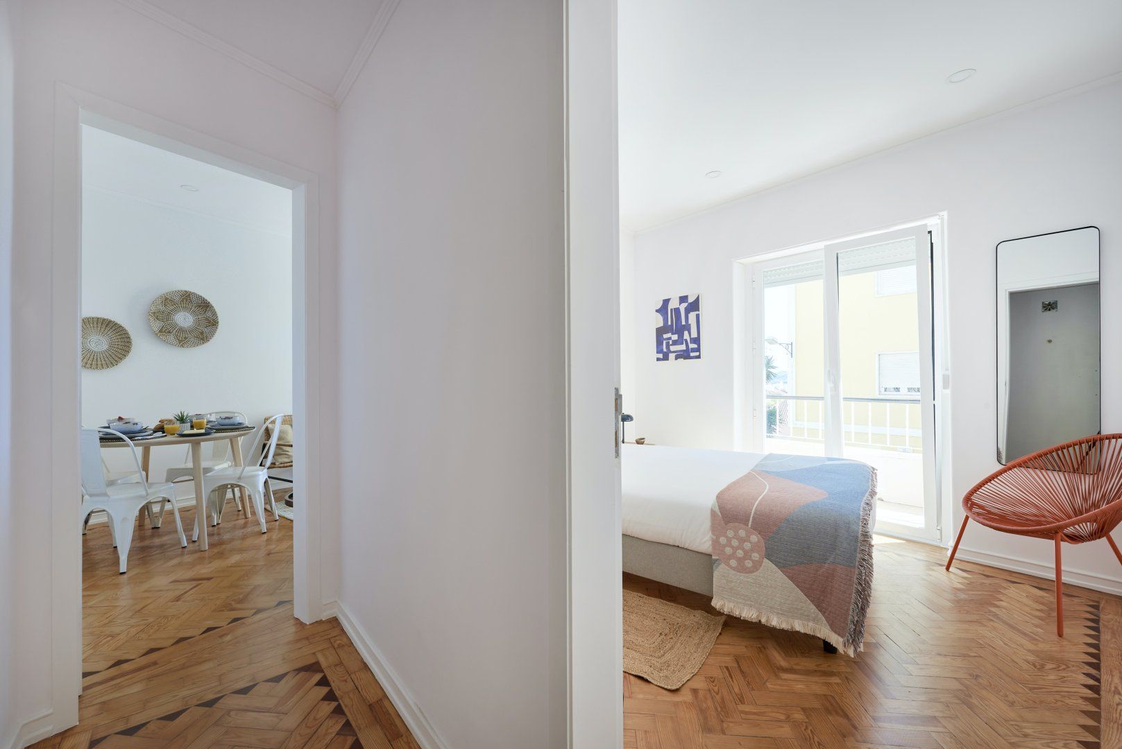 Laid-back Belém is the perfect setting for this sunny home, sitting right across the street from the beautiful Igreja da Memória. Take in views of the church’s striking dome as well as the 25 de Abril suspension bridge from the living room’s sun-drenched balcony – best enjoyed with your morning coffee or over an evening glass of Portuguese wine.