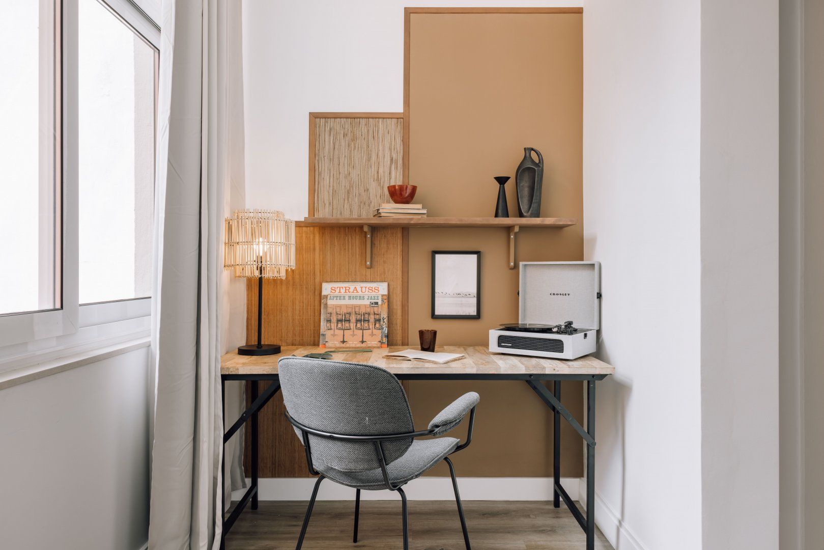 In the Avenidas Nova area of Lisbon, this apartment puts you in a laid-back neighbourhood with plenty of parks, shops and restaurants within walking distance. The building has an outdoor communal sitting area – perfect for sitting with a book in the sunshine. Inside, the apartment features an open-plan main living set-up where guests can relax between excursions in the city. And if you're in town on business, you'll find the desk space (with room to put your laptop) in the secluded sunroom particularly useful. While there is plenty of storage room in the bedrooms if you require additional storage space, there is also a common storage area in the building.