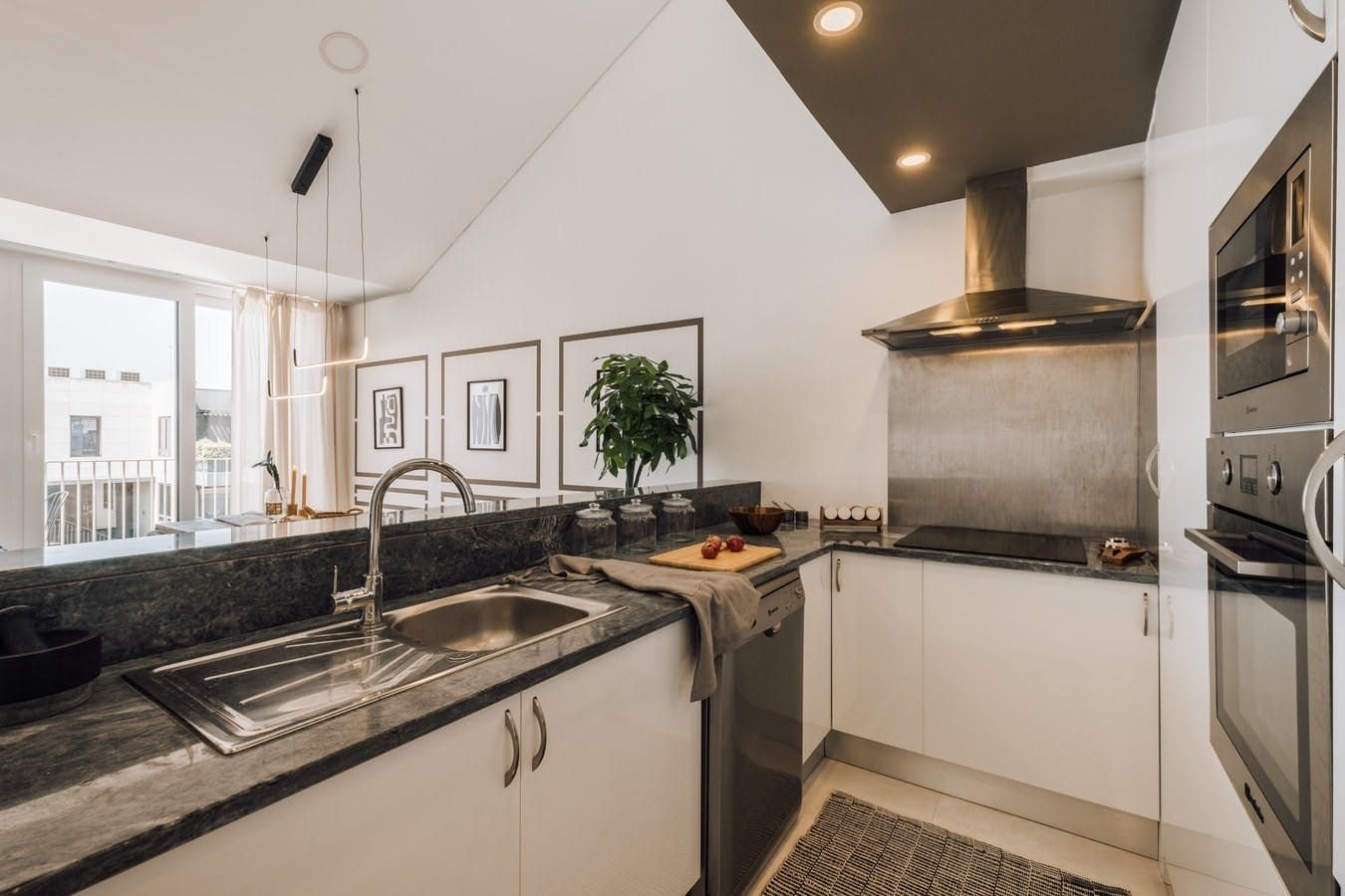 The outdoor space at this apartment really caught our eye. Not only do you have private balconies to enjoy an evening glass of wine – albeit while looking out onto neighbouring buildings – but there’s also a rooftop terrace where you can soak up views of the River Tagus and beyond. If you can tear yourself away from the sun-kissed terraces, inside, you’ll find a comfortable space for four people. In the city for work? There’s even a private desk area in one bedroom, so remote working’s a breeze.