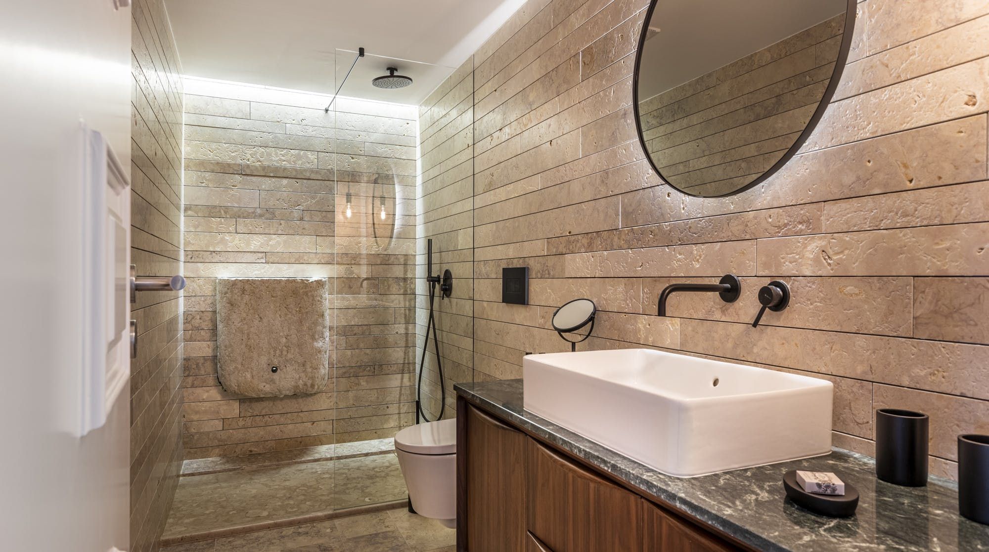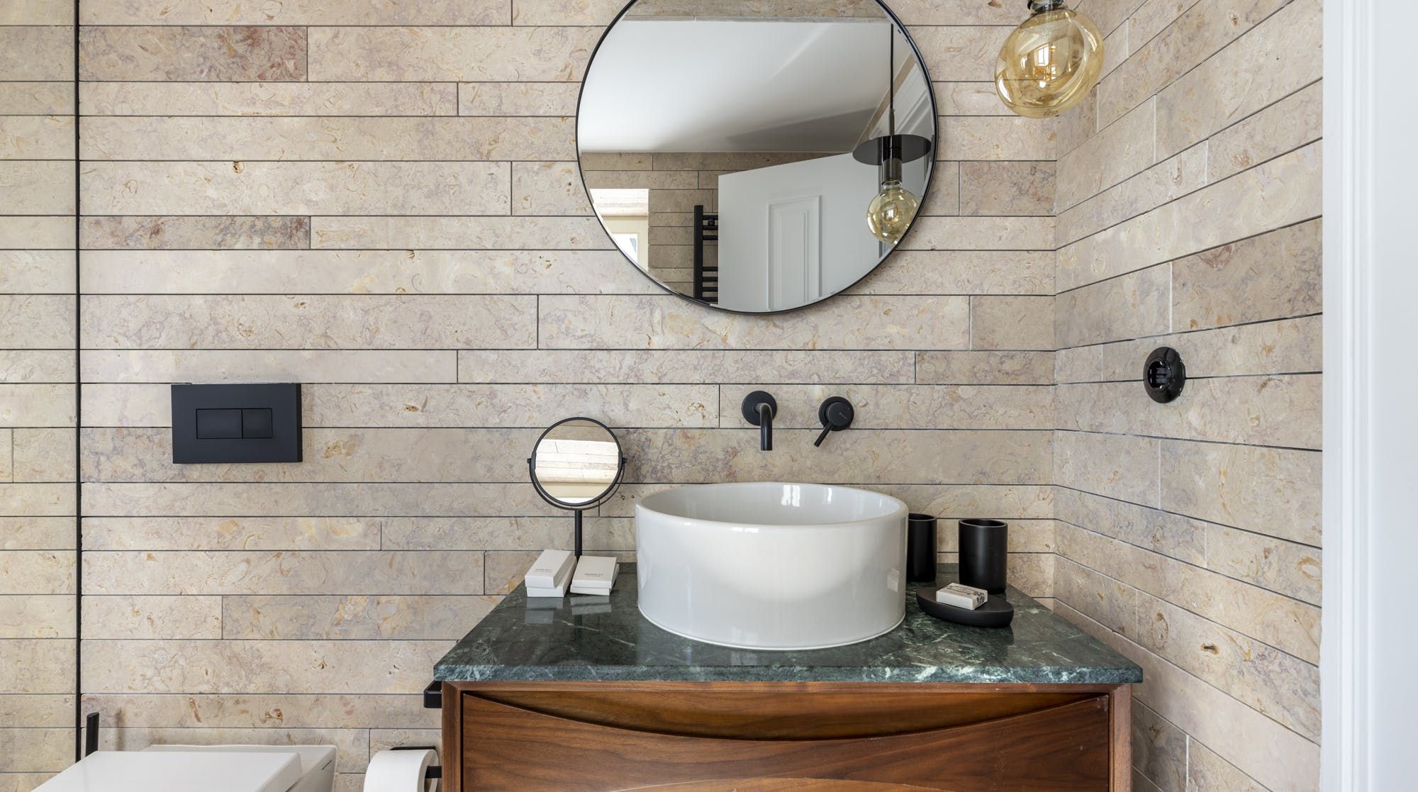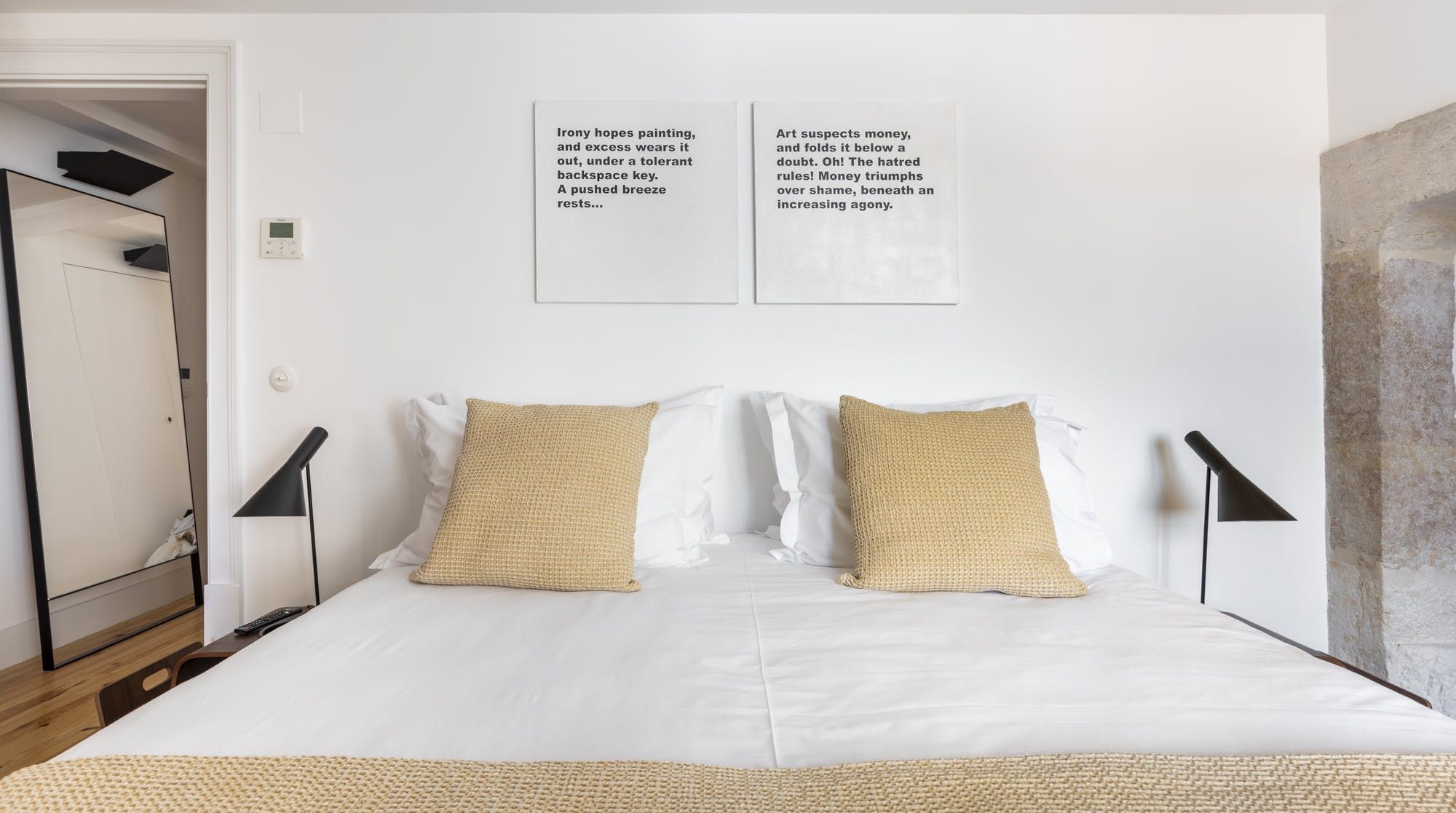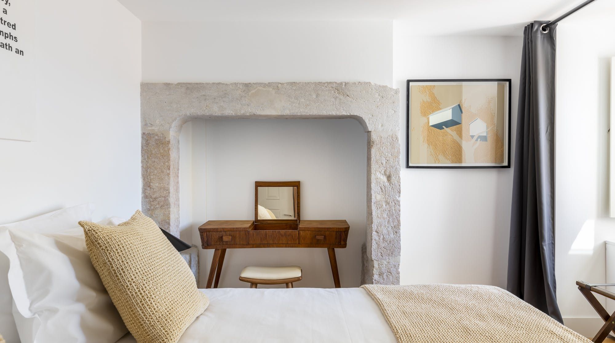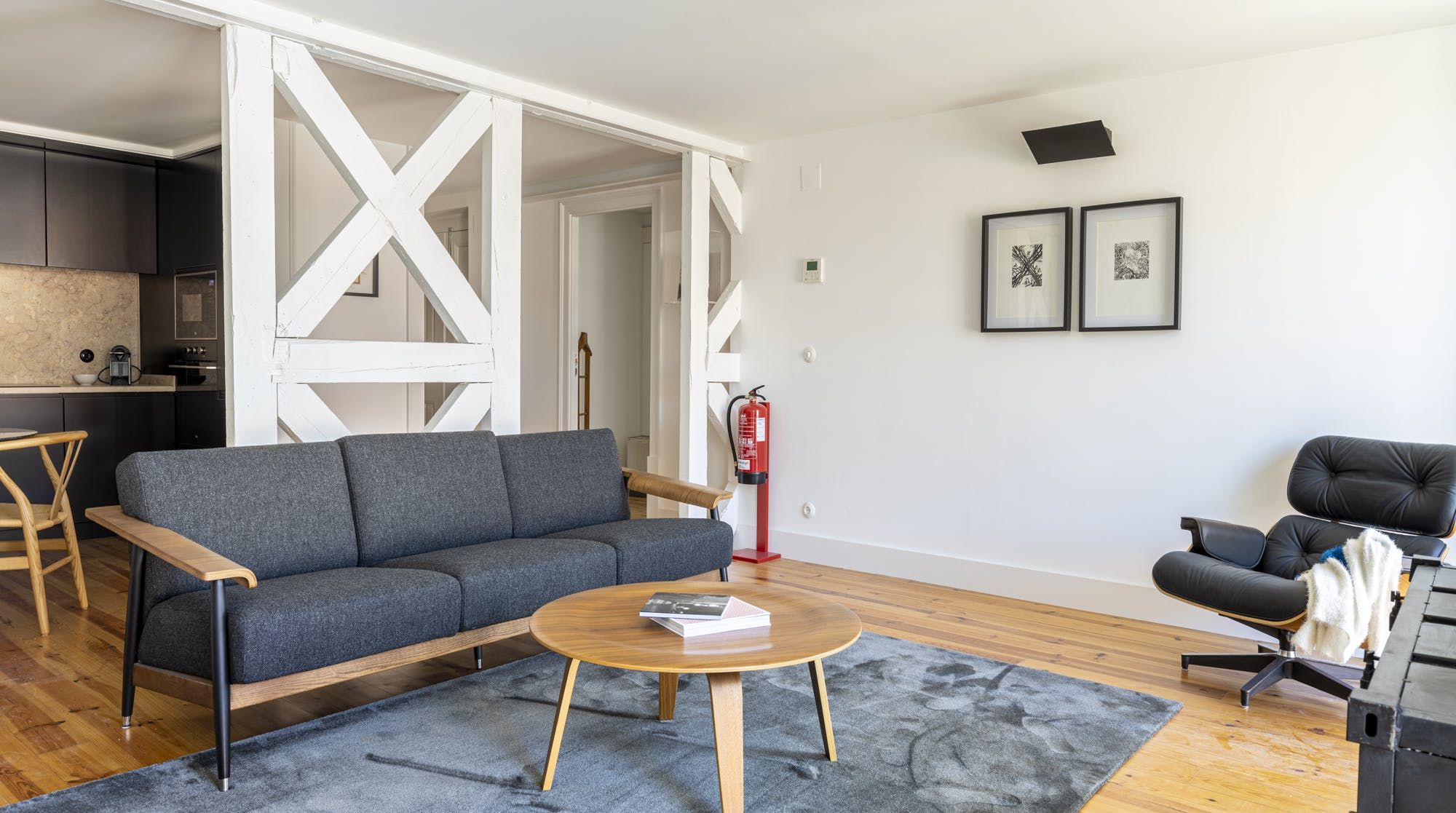 Freshly renovated, this beautiful apartment is the kind of Lisbon home we daydream about. In a period building typical of this ancient part of the city, it's been lovingly brought into the 21st century by owners who clearly care about the quality of the finish. The characteristic Pombalina wooden cage of the stone building shows itself in the open-plan living space. Invented after the great earthquake of the 1750s, it's an architectural structure to ensure stability. It also happens to look really cool. You may also spot some other historic features in the home – an old salting trough in one of the bathrooms, a huge stone fireplace in a bedroom and antique recovered tiles made into large panels that adorn the corridors. At the same time, it's a smart, modern home with luxurious furnishings, and an on-trend black and marble kitchen. We love the views over Lisbon's rooftops from the balcony too. When you're ready to explore you'll be a five-minute walk to Praça do Comércio, which opens up to the Tagus river. The stylish neighbourhood of Chiado is a ten-minute walk away, as are the Ribeira Market and Campo das Cebolas.