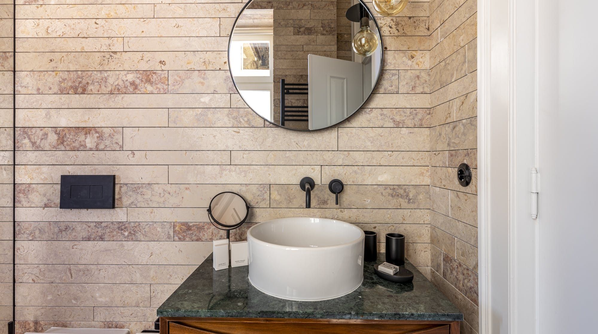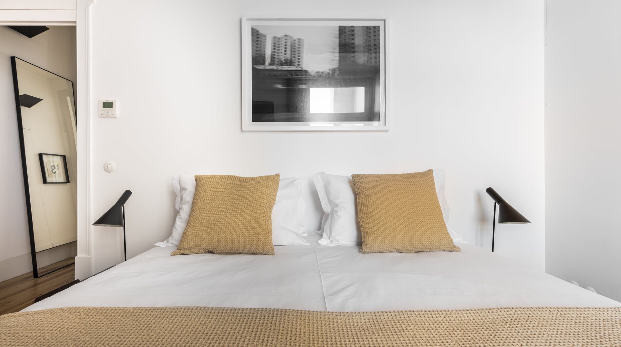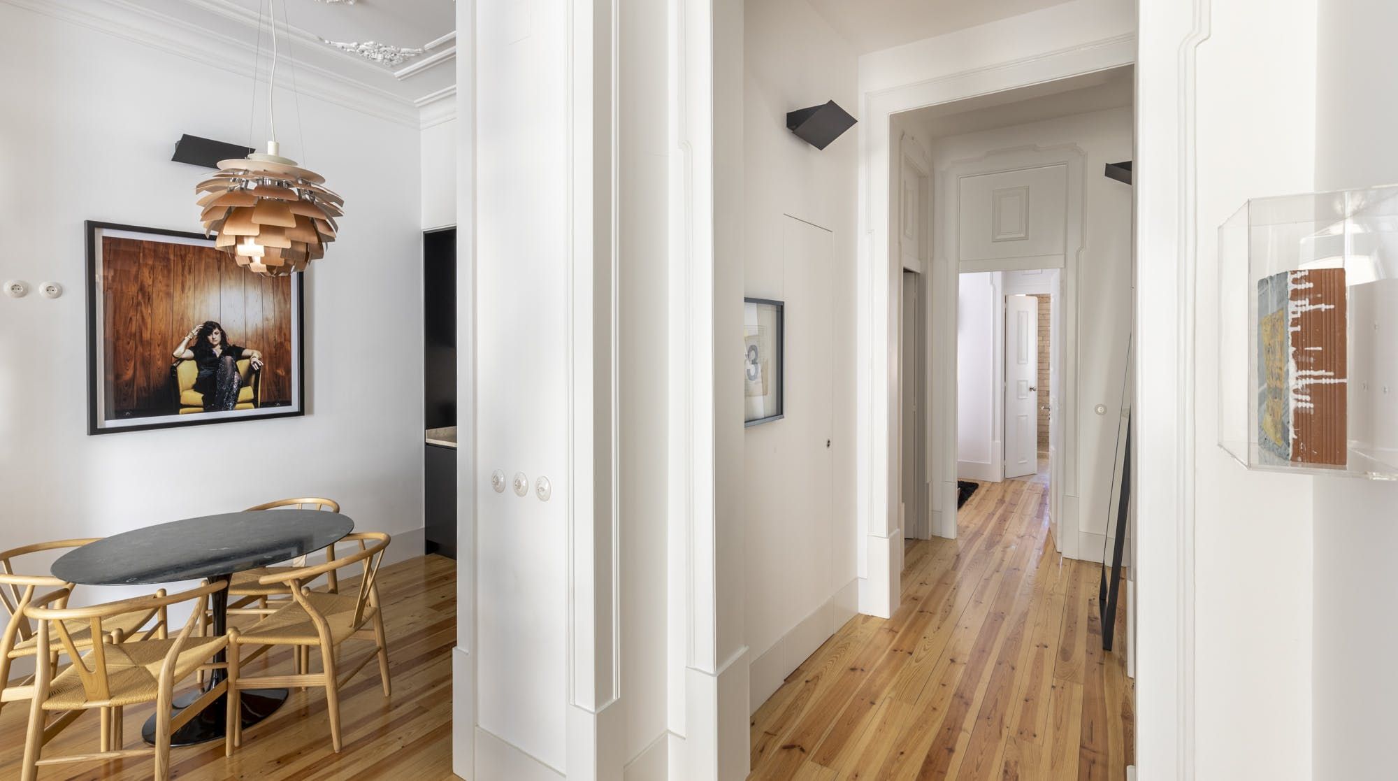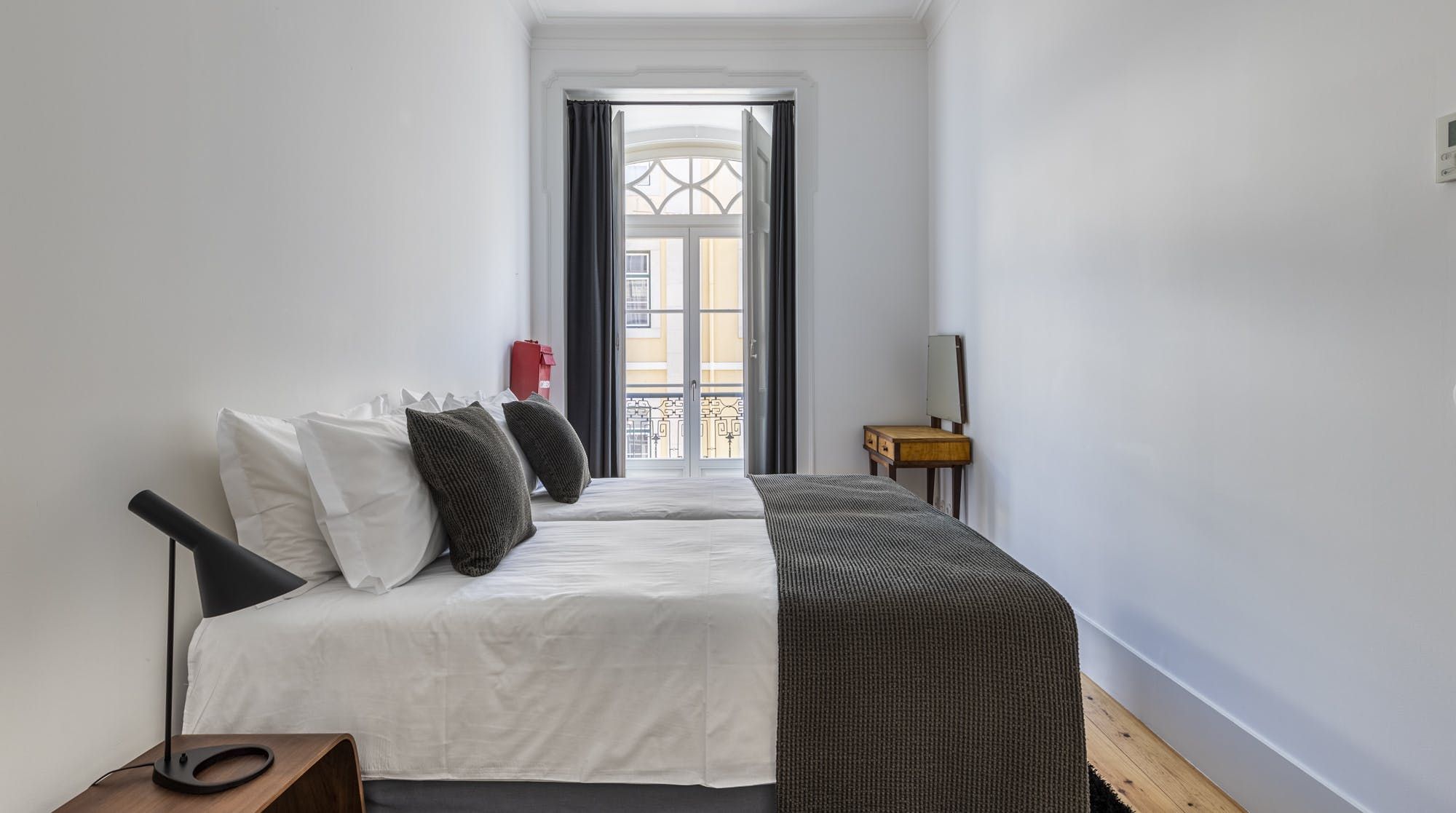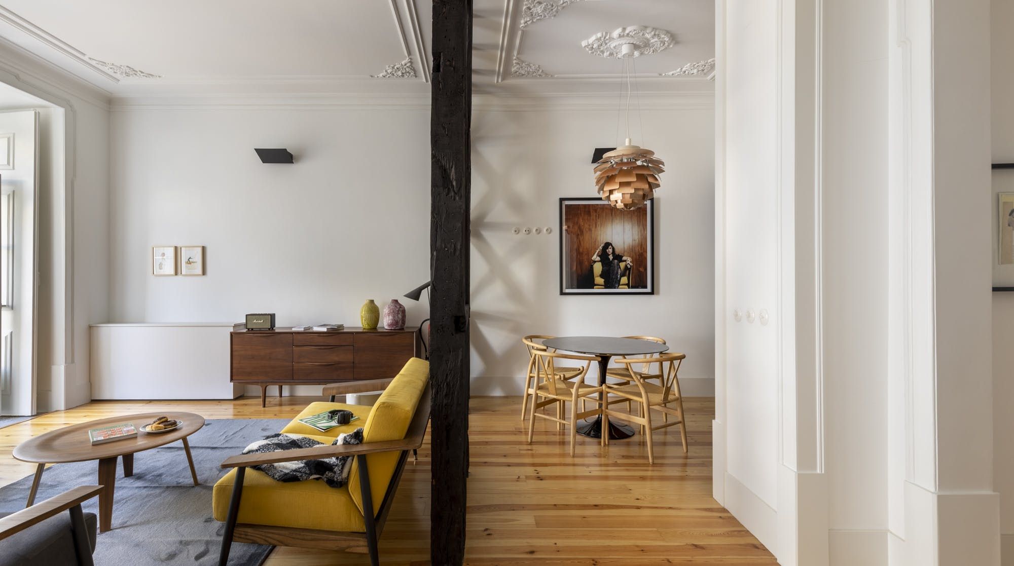 In this Baixa location – also known as Pombalina Downtown – it’s no surprise that you can find some of the finest examples of traditional architecture in the city. Of course, this apartment is no exception. Only a four-minute walk to Lisbon Cathedral, and six to the bustling, harbour-facing square, Praça do Comércio, this renovated building is no less impressive than its local surroundings. We love the care and attention to detail that has gone into this apartment, which retains the building's original architectural features, as well as reusing debris from historic earthquakes. The beautiful timber structures that you’ll notice right away in the lounge are typical of the pombalina style and practicalities. Some antique tiles, recovered from the 1755 disaster, have been made into panels that adorn the corridors. It's not all about the history here though – there are plenty of modern touches too. You’ll have an array of contemporary art to peruse, as well as Bluetooth speakers and a sleek, charcoal-coloured kitchen. After exploring every corner of this elegant home, pour a glass of vinho verde and take in the views from the French doors of the ornate Juliet balcony.