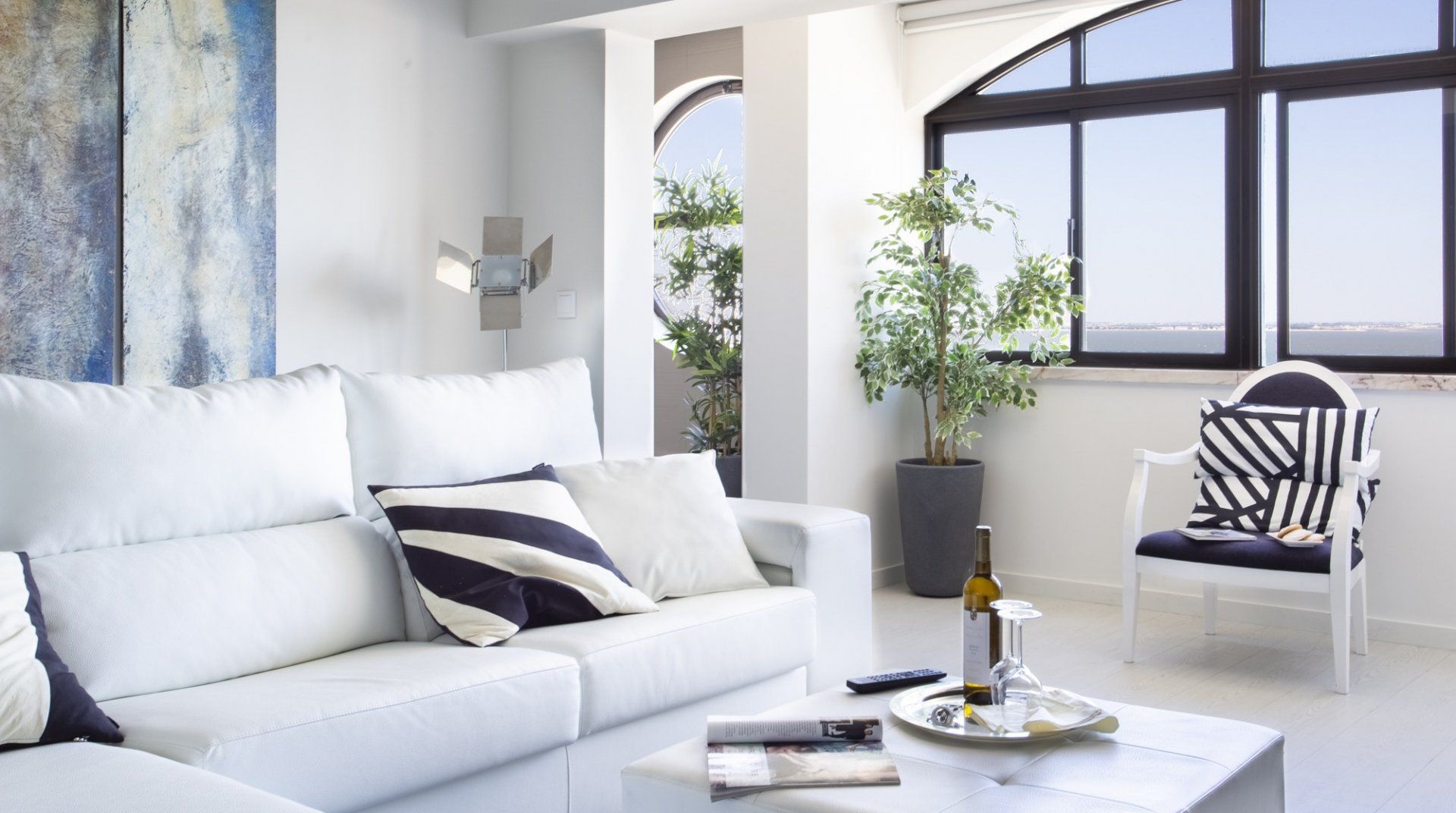 How can you say no to a view like that? With sweeping vistas across the Tagus River, this contemporary penthouse is a one-of-a-kind getaway right on Lisbon's riverfront. Pull up a chair, open a bottle of Vinho Verde and admire the scenery from the porthole-style windows. But if that's not enough, you can take in the panoramic views of the city – including the National Pantheon – from the communal rooftop terrace. Back inside, the modern design is sleek and stylish, with lots of natural light and cosy spots to unwind. When you feel like cooking, the glossy kitchen has everything you need to rustle up a meal and the living room's fireplace is perfect for chilly evenings. And we loved the welcome basket on arrival, filled with a bottle of white wine, fresh fruit and delicious Portuguese custard tarts. Location-wise, you're a little outside the bustling city centre, but it's still an excellent spot to base yourself. Restaurants and museums are just a stone's throw away, while Castelo de S. Jorge is twenty minutes on foot. But with Santa Apolónia Station a three-minute walk away, getting around the rest of the city is a breeze – you can be in Praça do Comércio in five minutes, flat.