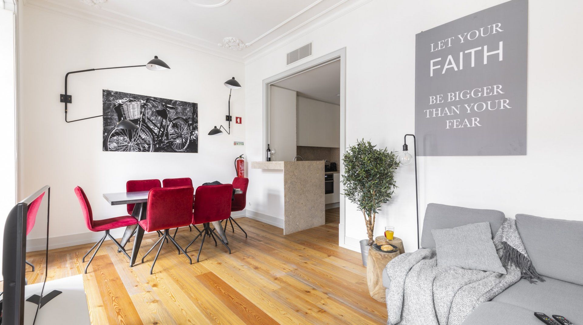 With a fabulous central location and set in a renovated period building, this home is simple, smart, and a little bit sassy. Painted all white, with shuttered windows and warm wood floors, it's a traditional apartment with some far from traditional wall art (we see you, Julia Roberts). A bright living area boasts a particularly squashy corner sofa and a modern dining table with chairs for up to six. The kitchen is sleek and modern, with all you could need to whip up light meals, and the bedrooms are spacious and full of natural light. You'll even have a narrow balcony here, on which to sip coffee, read a newspaper and people watch on the street below. On the lower side of Alfama, you'll get to enjoy a view of the Sé Cathedral, and all the city's sights are within walking distance – we recommend you start your tour at the nearby Praça do Comércio.