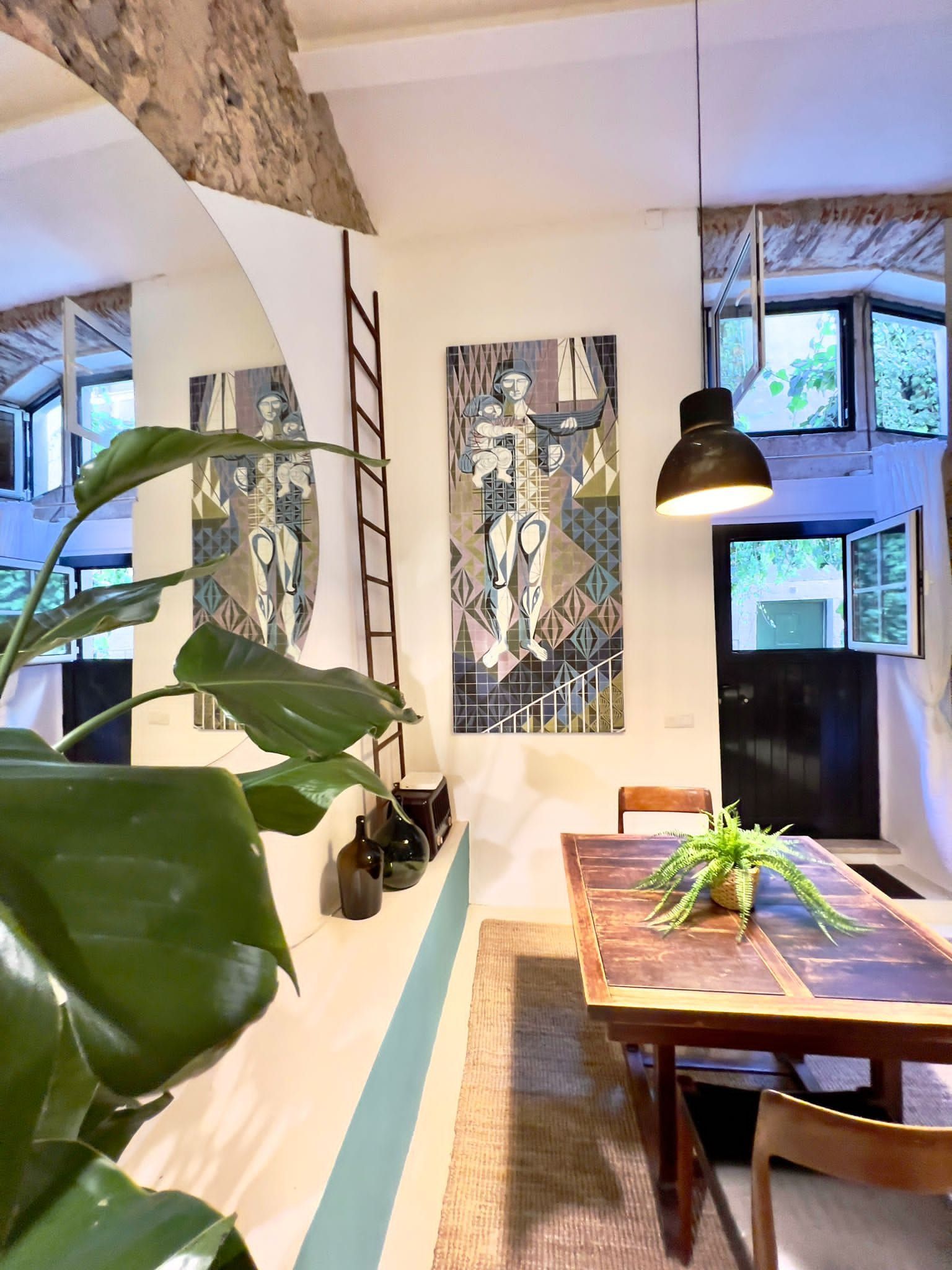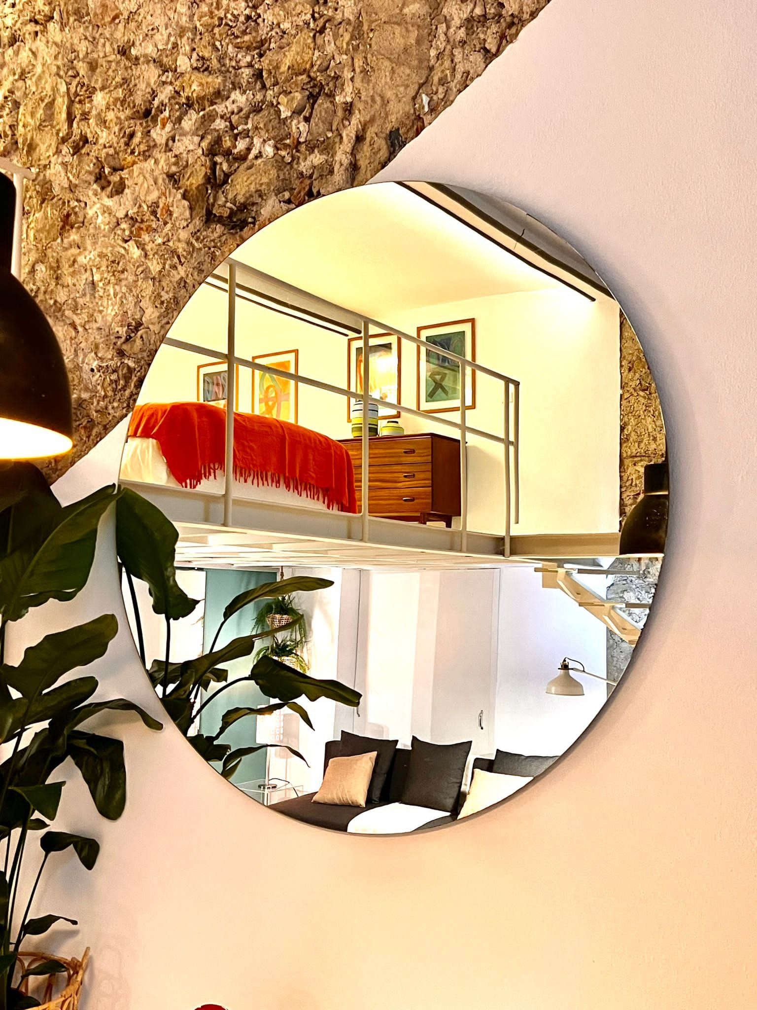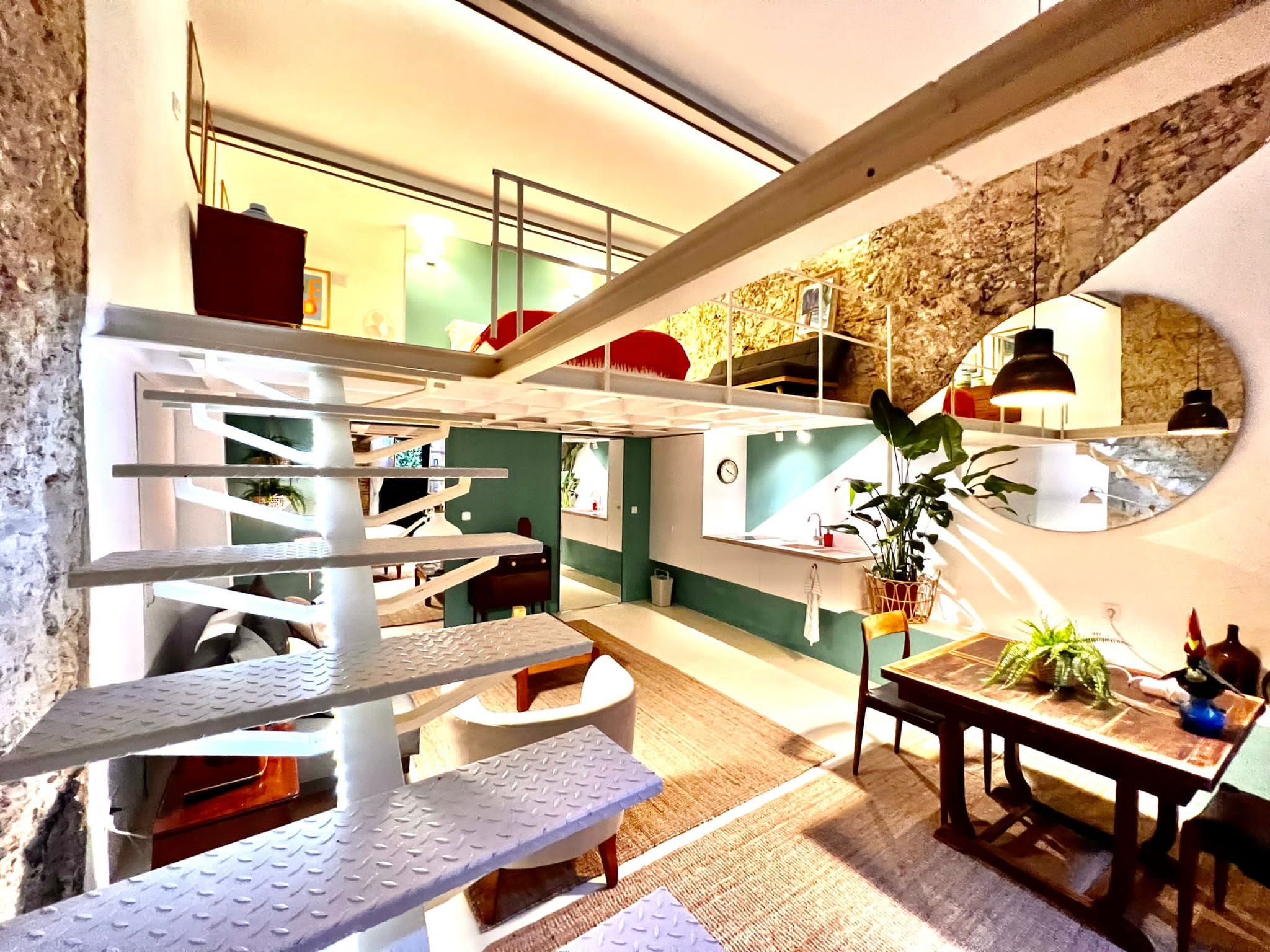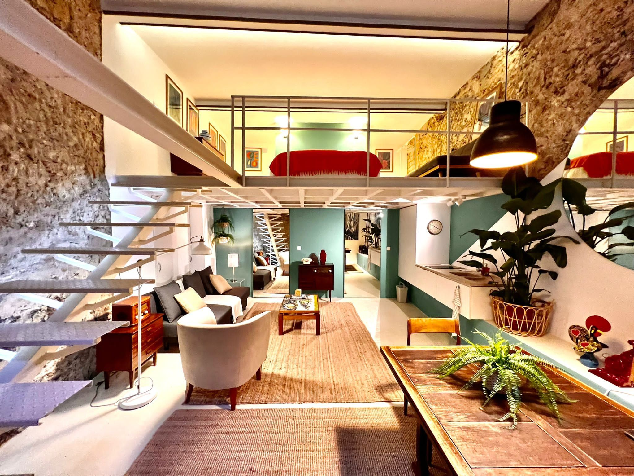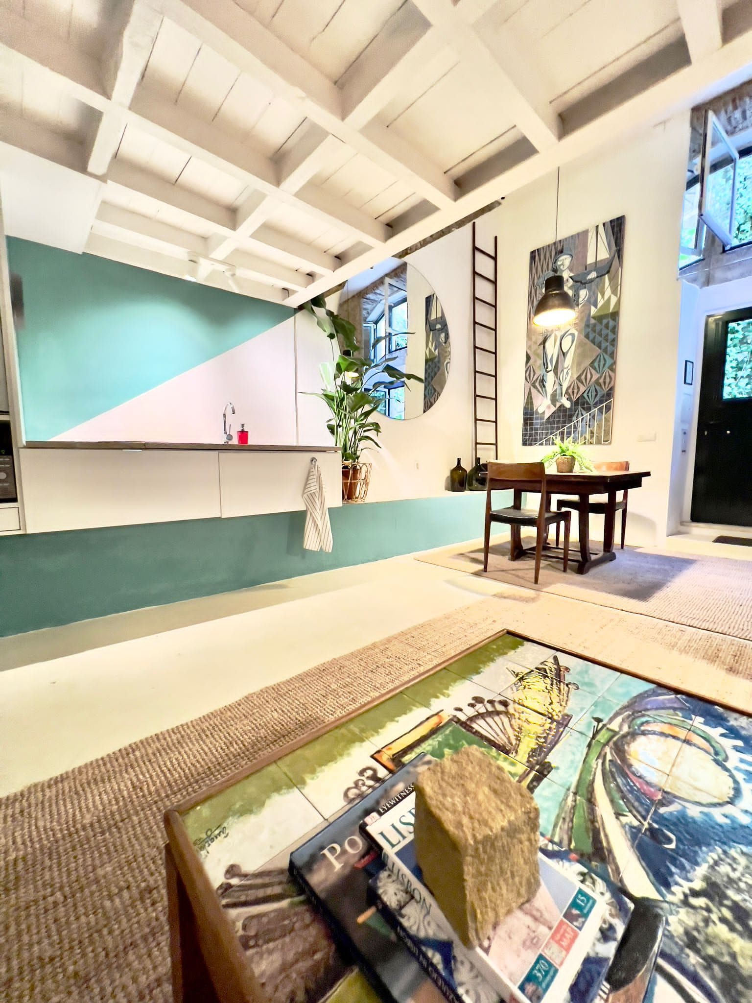 This split-level studio is simply bursting with character. Furnished with a quirky aesthetic and filled with curious art, this is much more than just a place to sleep in. Even though this home doesn't get a lot of daylight, the careful placement of artificial light helps create a cosy, intimate vibe. Located on a quiet street in the medieval neighbourhood of Alfama, you'll only be a short walk away from the riverside.