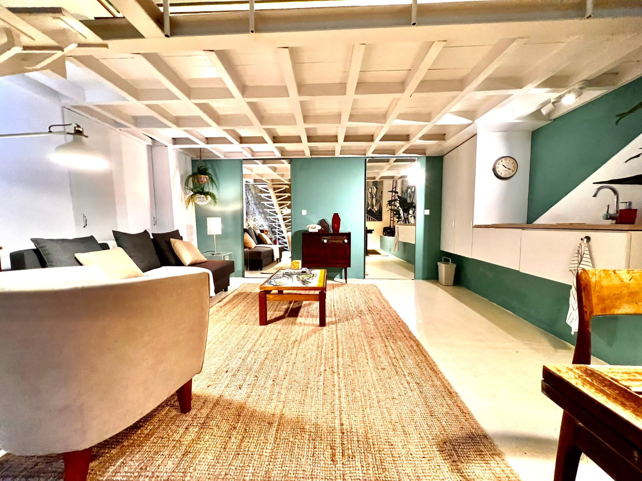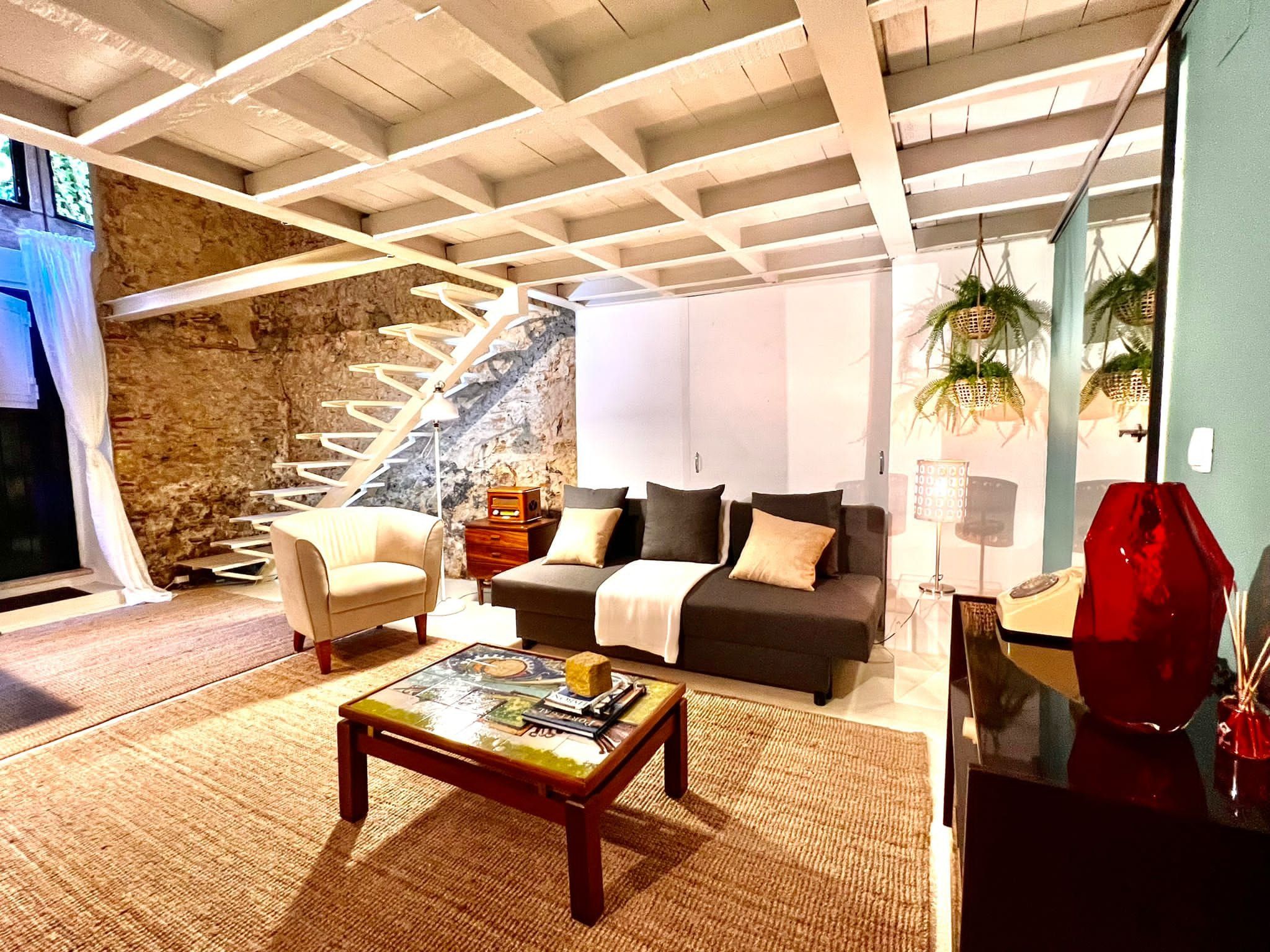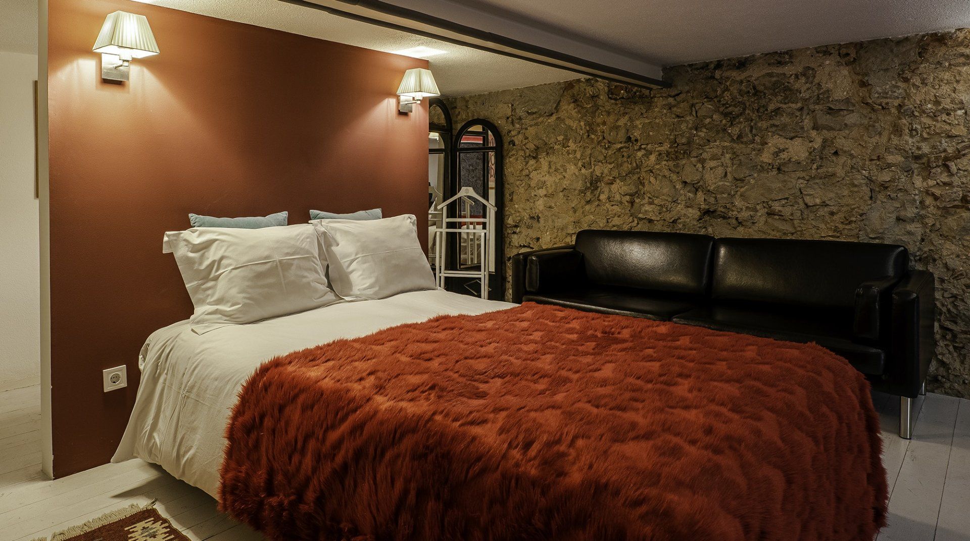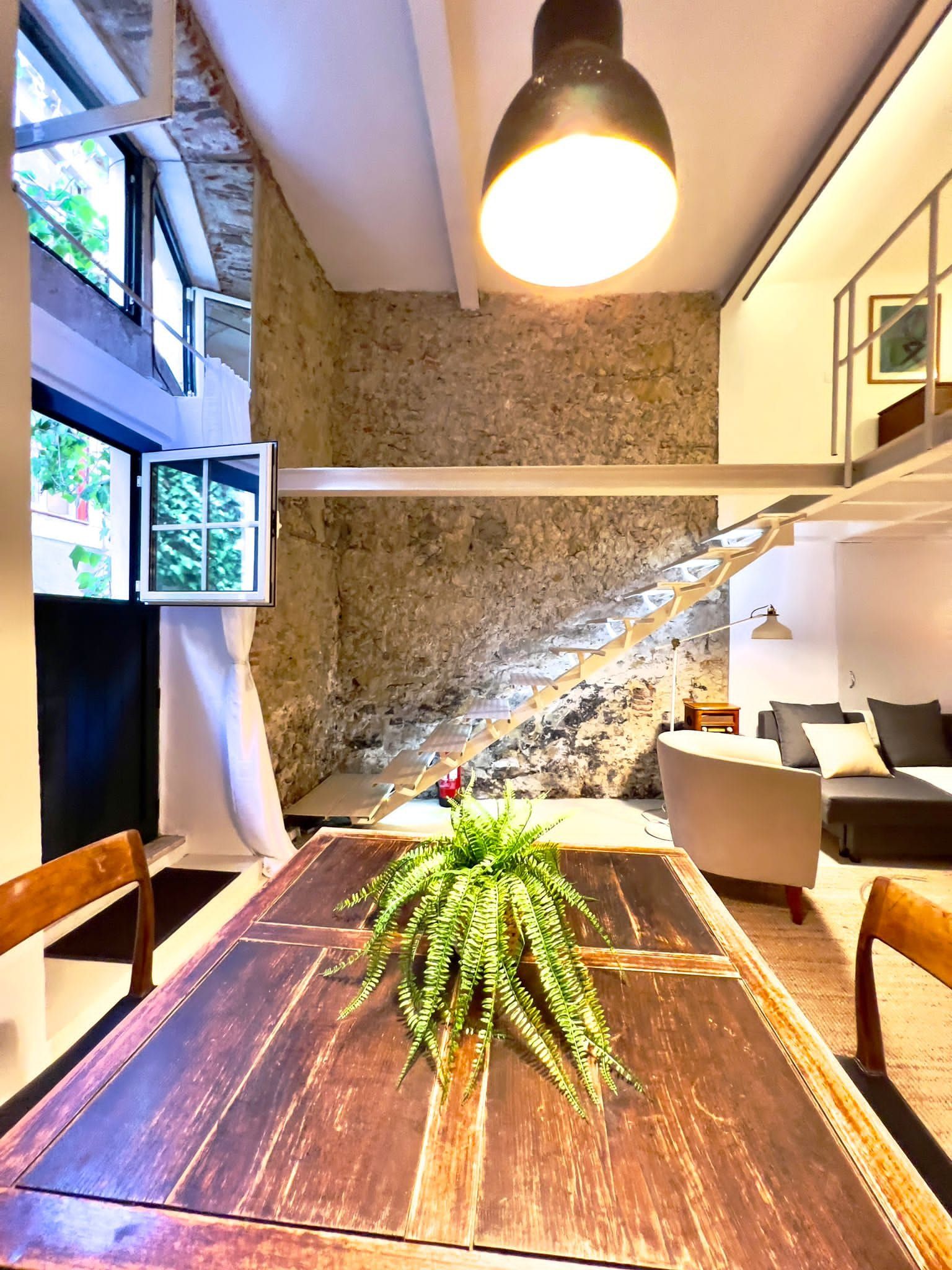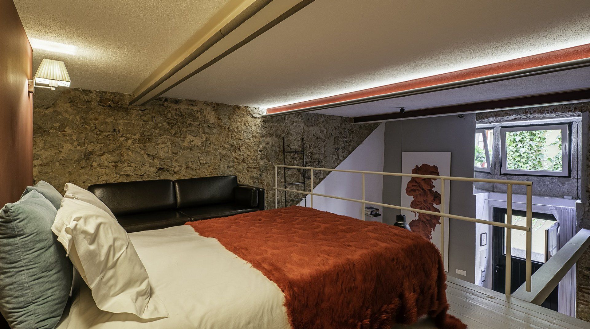 This split-level studio is simply bursting with character. Furnished with a quirky aesthetic and filled with curious art, this is much more than just a place to sleep in. Even though this home doesn't get a lot of daylight, the careful placement of artificial light helps create a cosy, intimate vibe. Located on a quiet street in the medieval neighbourhood of Alfama, you'll only be a short walk away from the riverside.
