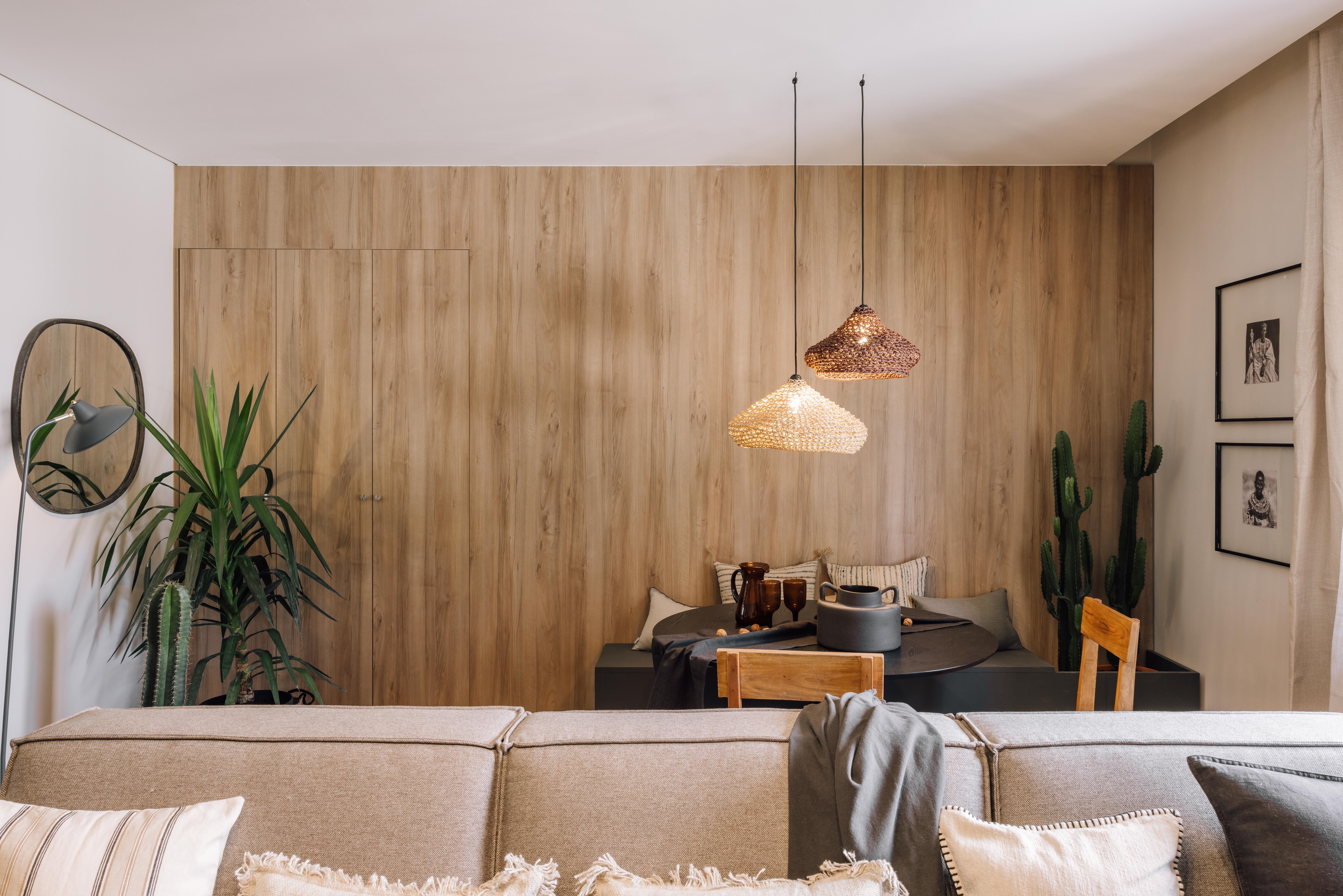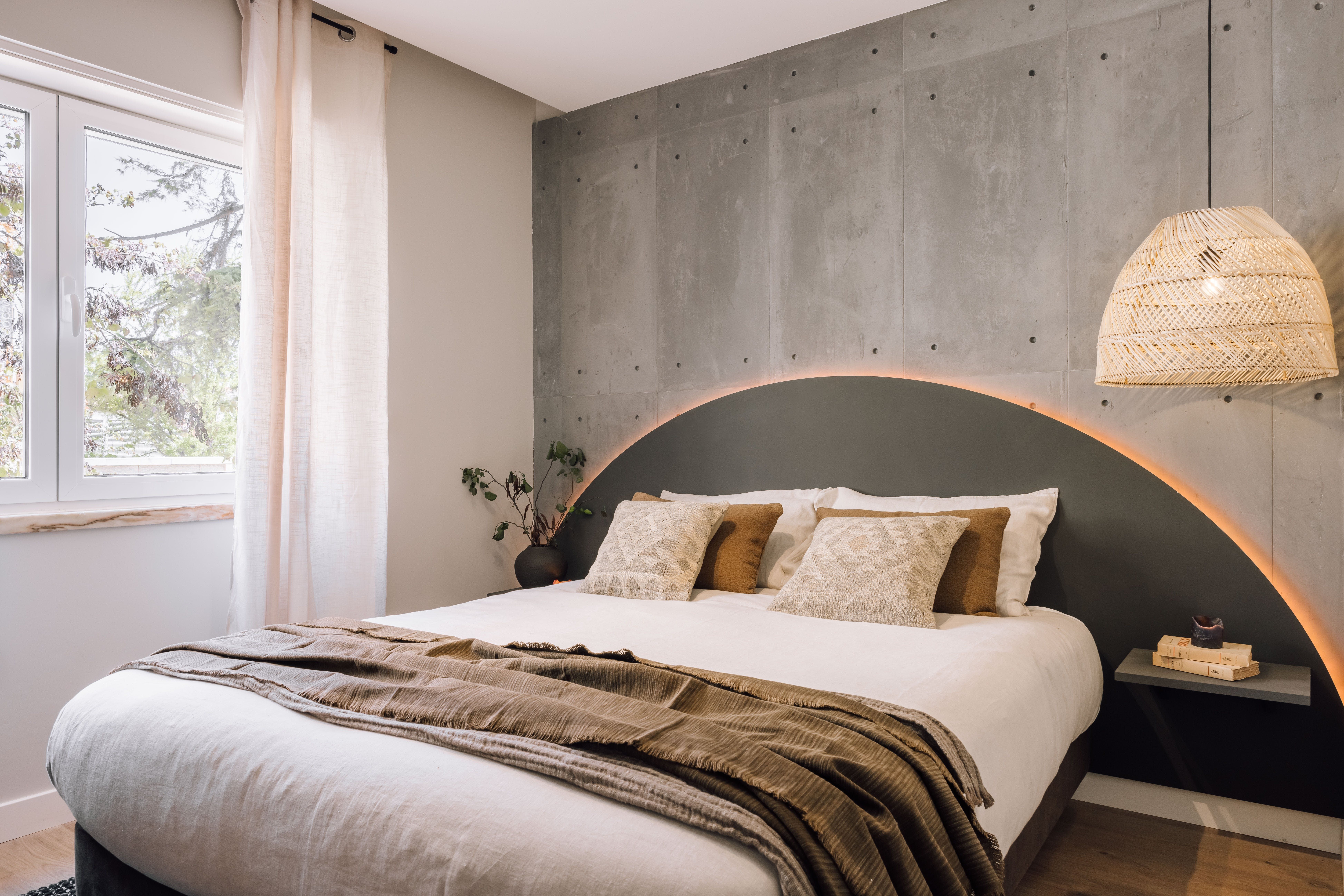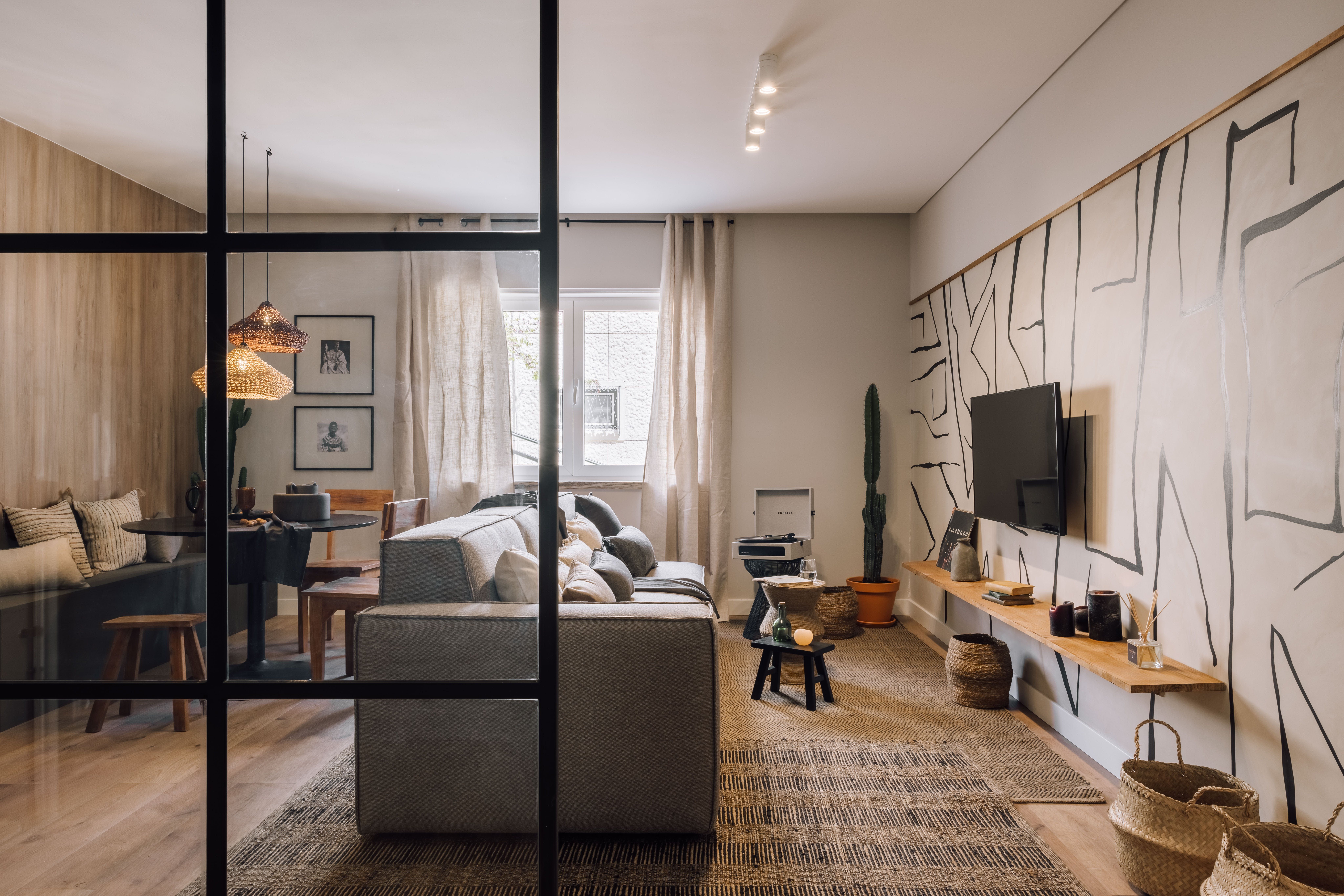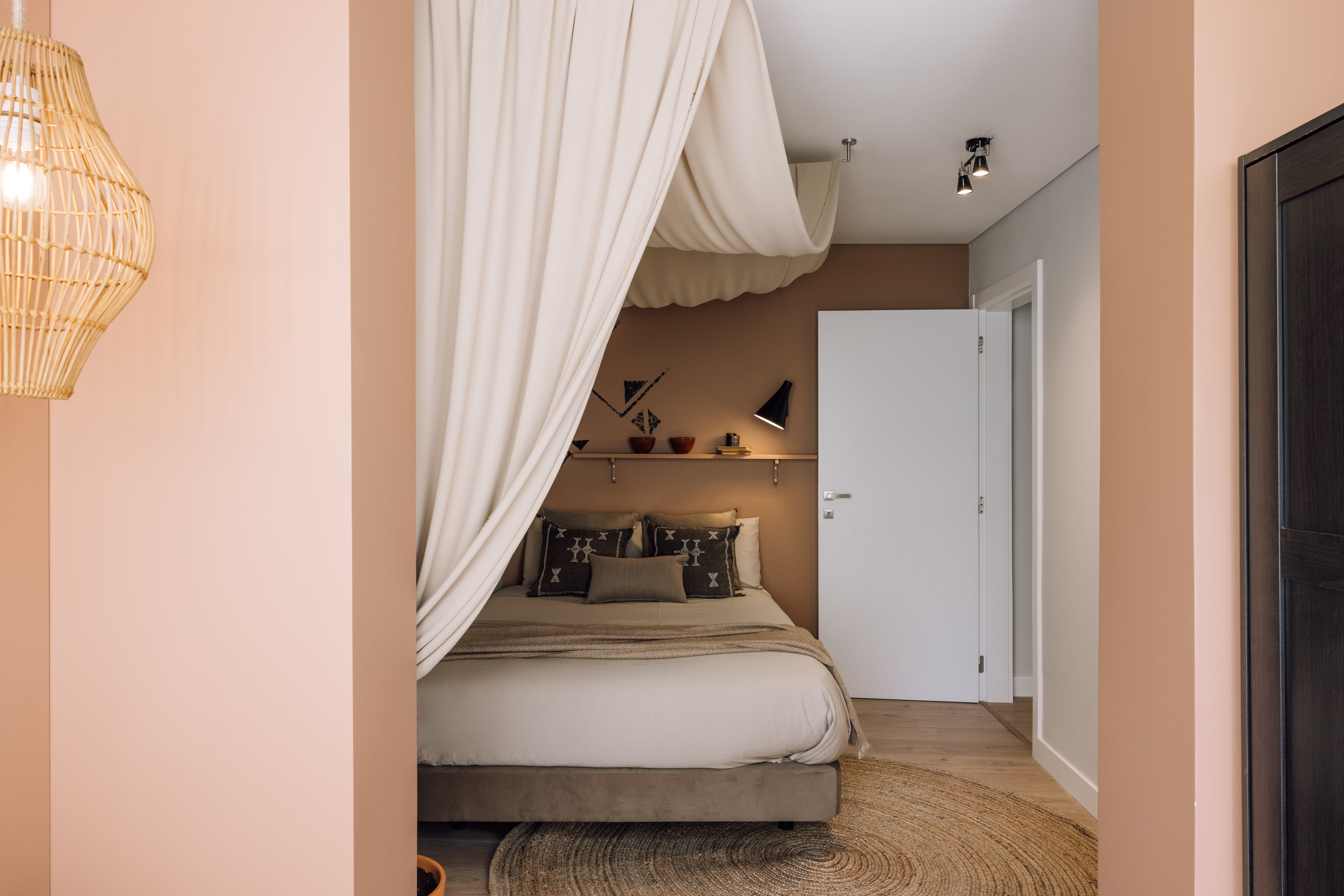 Taking inspiration from the deserts of New Mexico and Morocco, the warm, earthy tones of this stylish apartment have a lasting effect. The open-concept living area is all natural textures and laidback furnishings. It’s a tranquil space, with a comfy sofa for curling up when it’s grey out and a bespoke dining nook for traditional Portuguese dinners that last well into the night. Put a record on the turntable and let music drift through the home as you pen postcards at your bedroom’s writing desk.