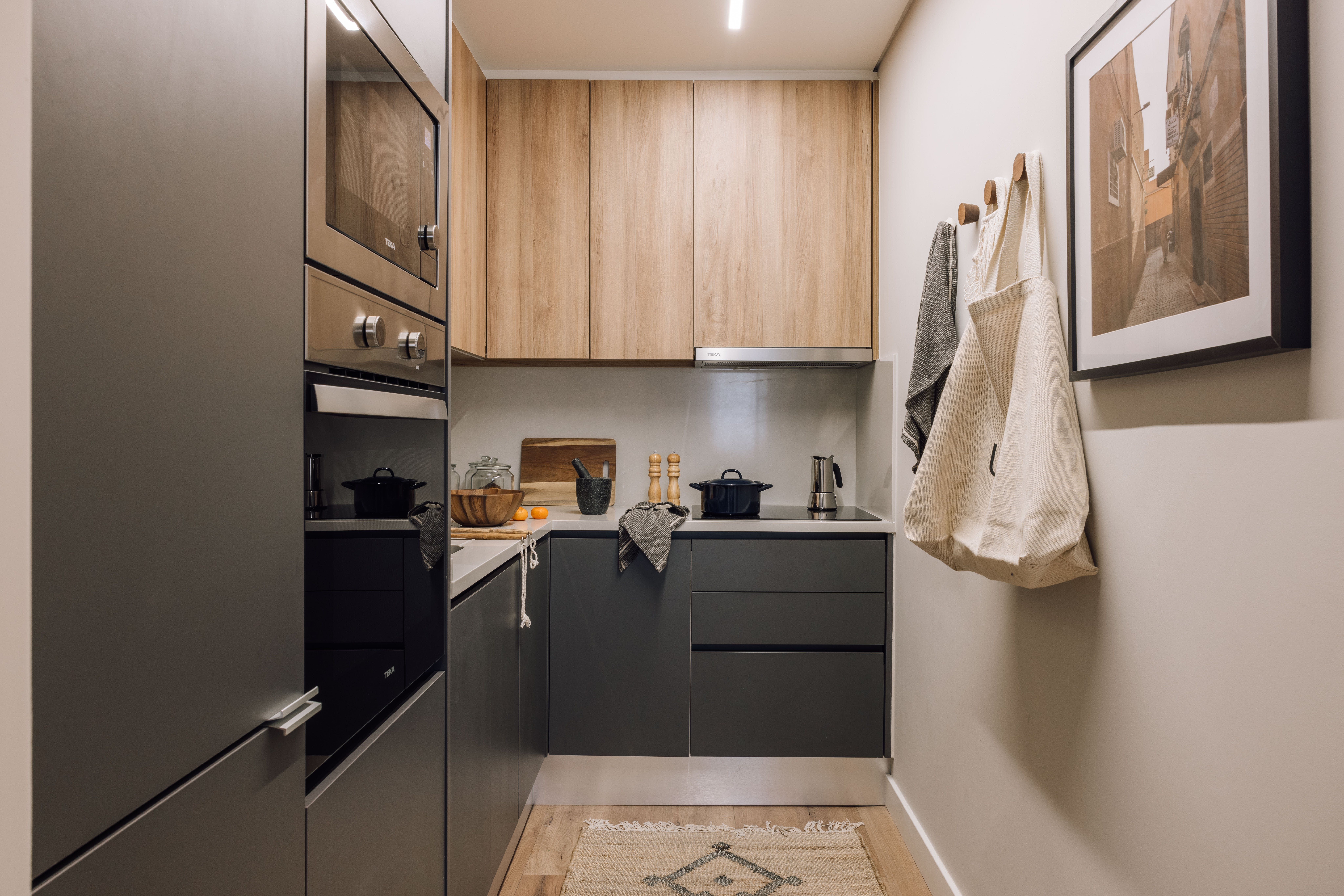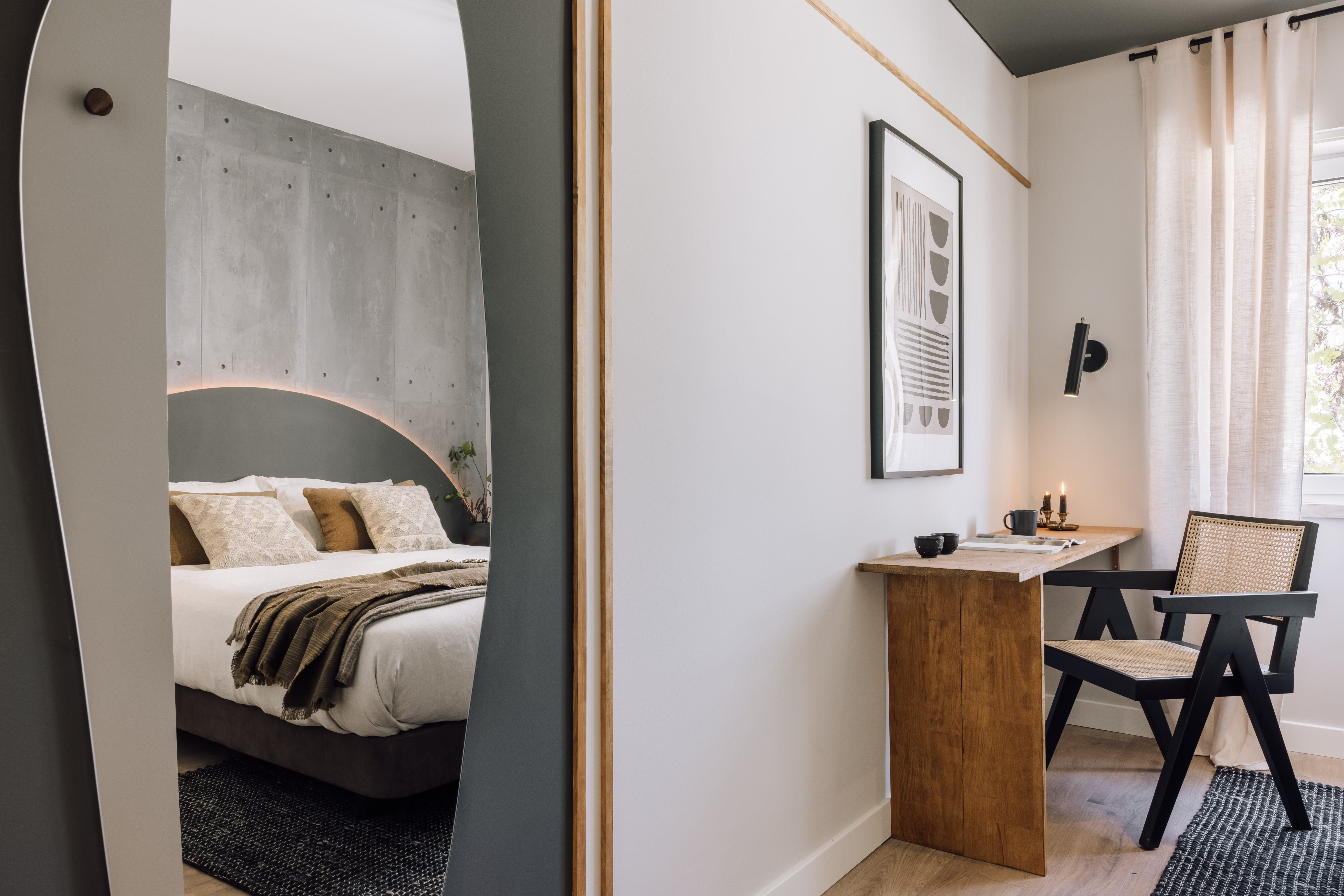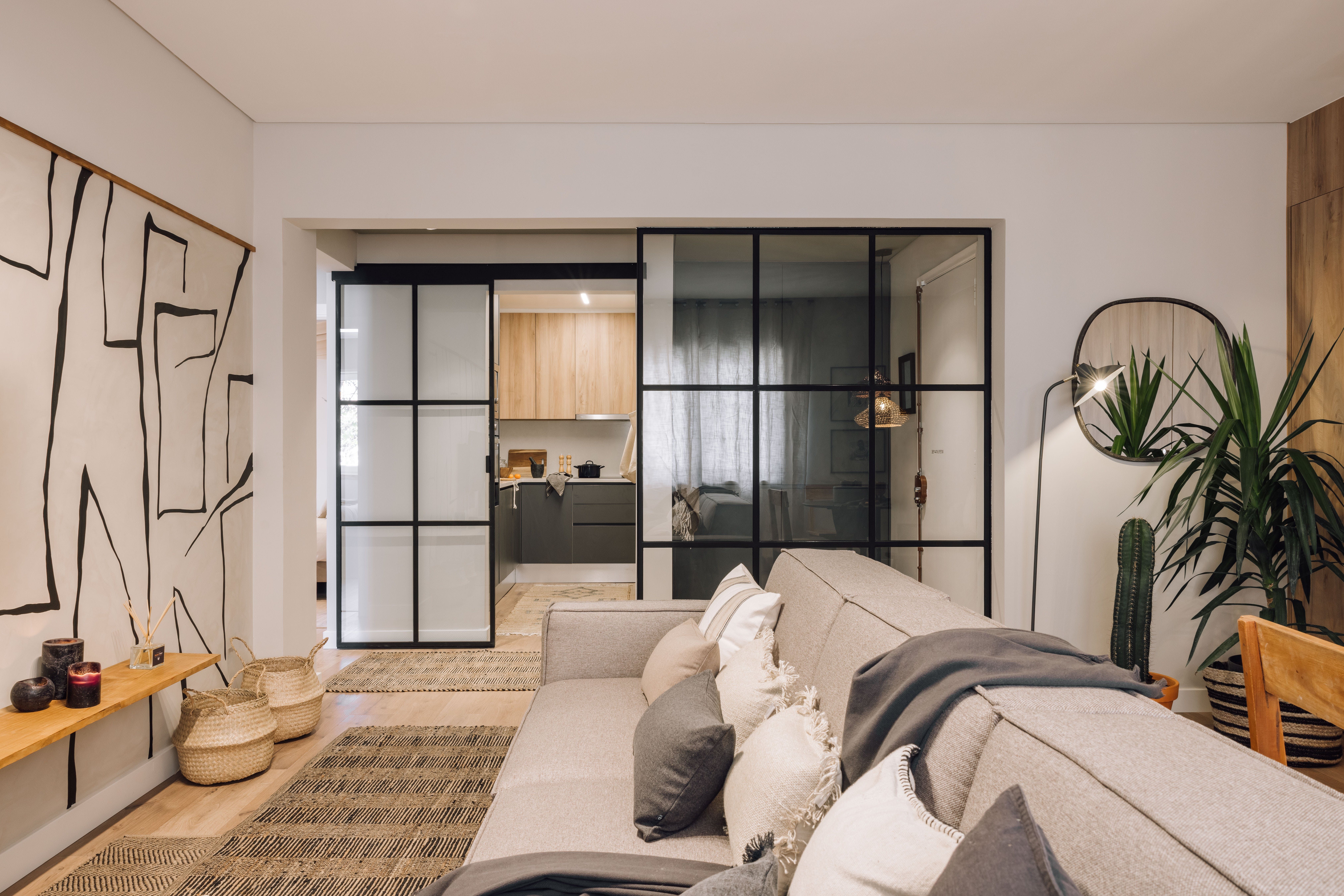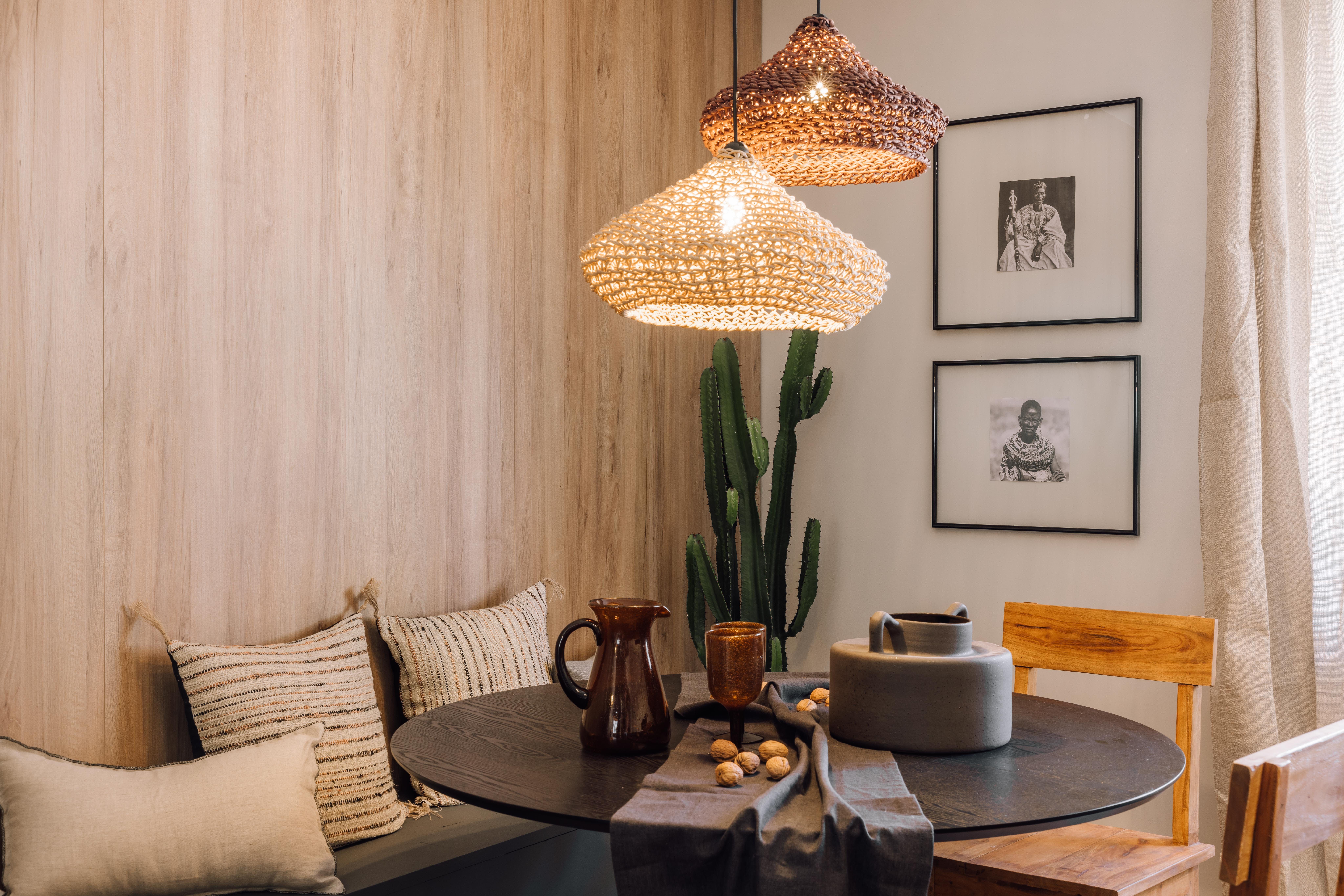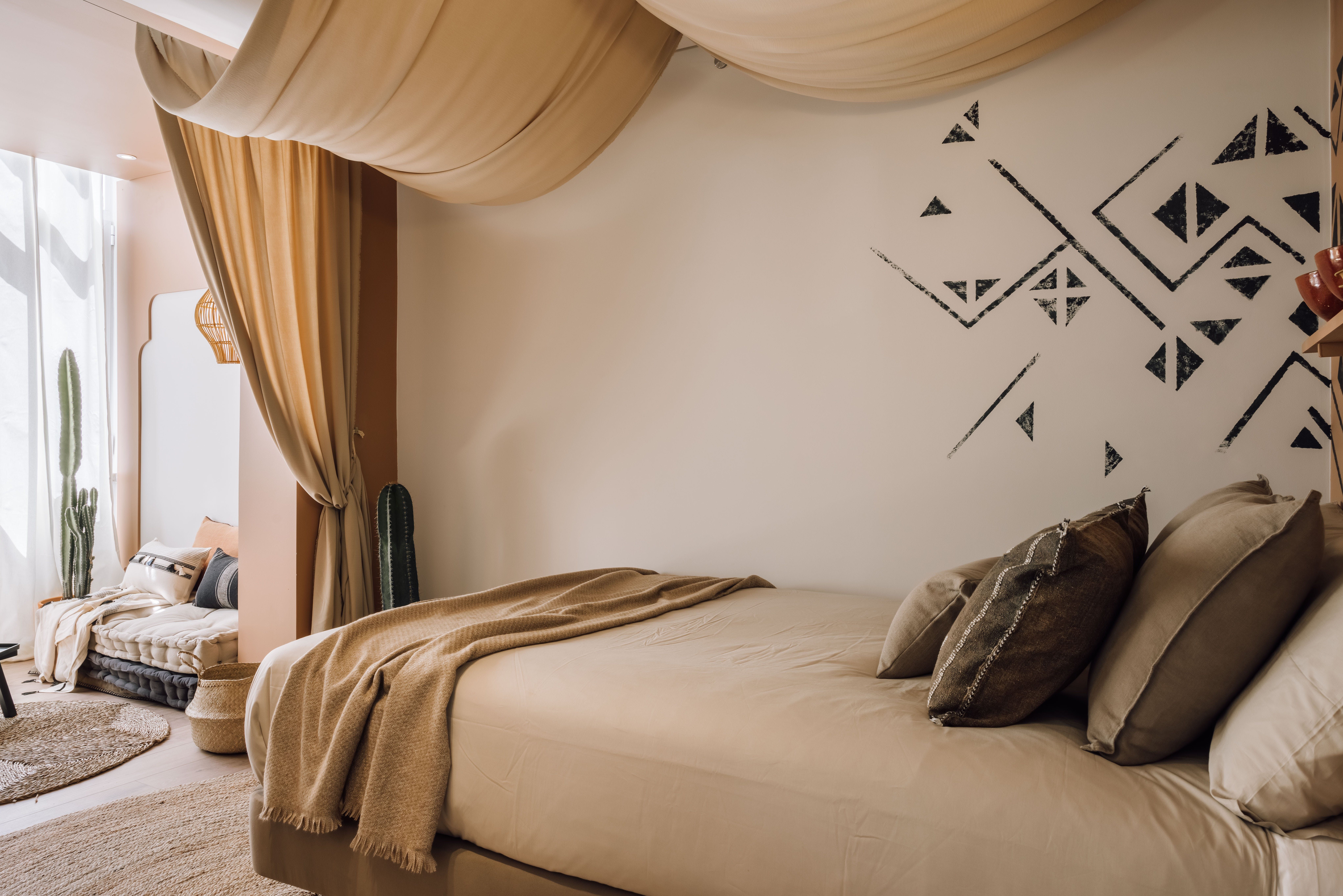 Taking inspiration from the deserts of New Mexico and Morocco, the warm, earthy tones of this stylish apartment have a lasting effect. The open-concept living area is all natural textures and laidback furnishings. It’s a tranquil space, with a comfy sofa for curling up when it’s grey out and a bespoke dining nook for traditional Portuguese dinners that last well into the night. Put a record on the turntable and let music drift through the home as you pen postcards at your bedroom’s writing desk.