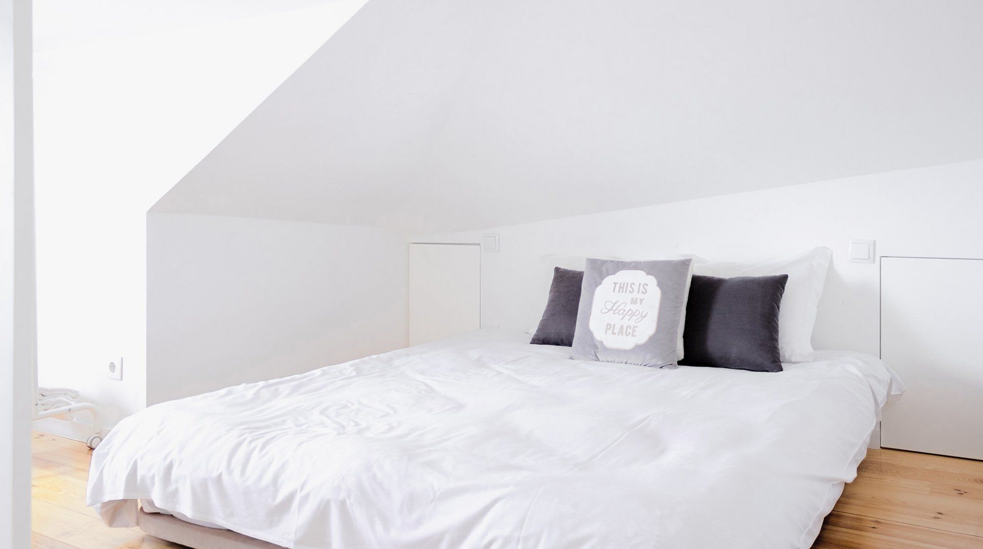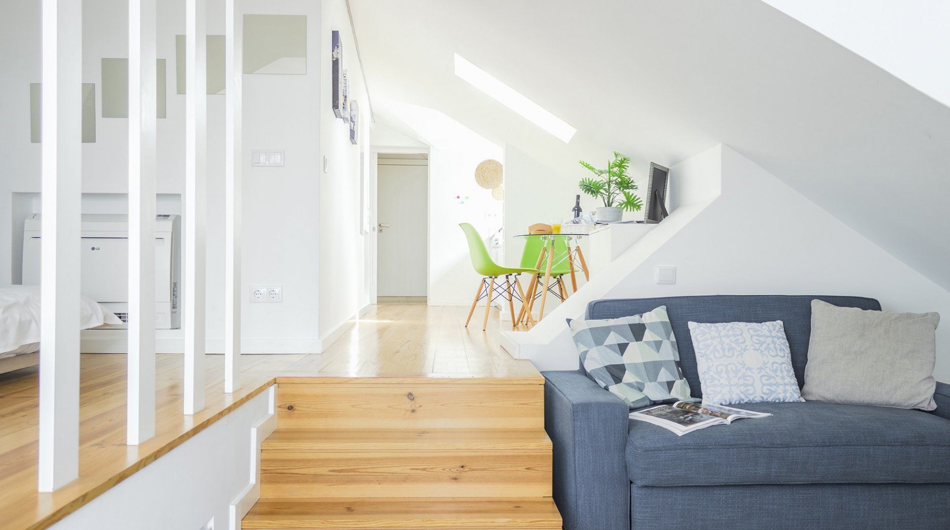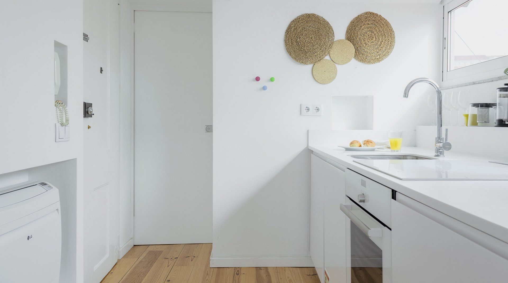 The view of this compact fourth-floor flat is its trump card. From the kitchen window and balcony, raised above the neighbouring roofs, you look out to the Tejo River. Set over two floors this studio-like home (there are no separate bedrooms) is a good base to explore the Alfama neighbourhood – as one of Lisbon’s oldest districts, its maze of cobbled streets lead to a number of historic attractions like the Castle and Se Cathedral. The home might be small, but its abundance of skylights and stunning view provide a bright and calm environment.