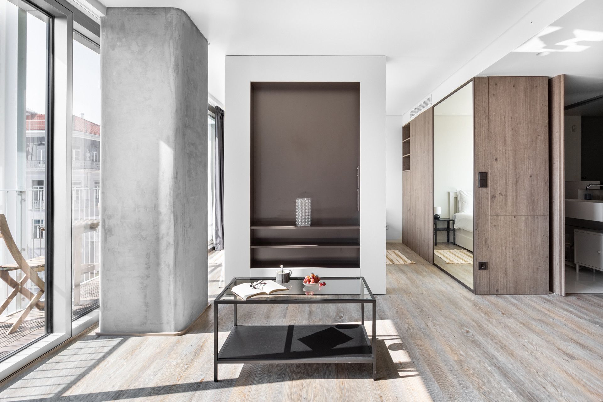 While the city of Lisbon is an explosion of colour down at street level, this apartment is pretty muted when it comes to interior design. The dominant colour palette of svelte greys and neutrals is contemporary in style, as are the sleek furnishings.
