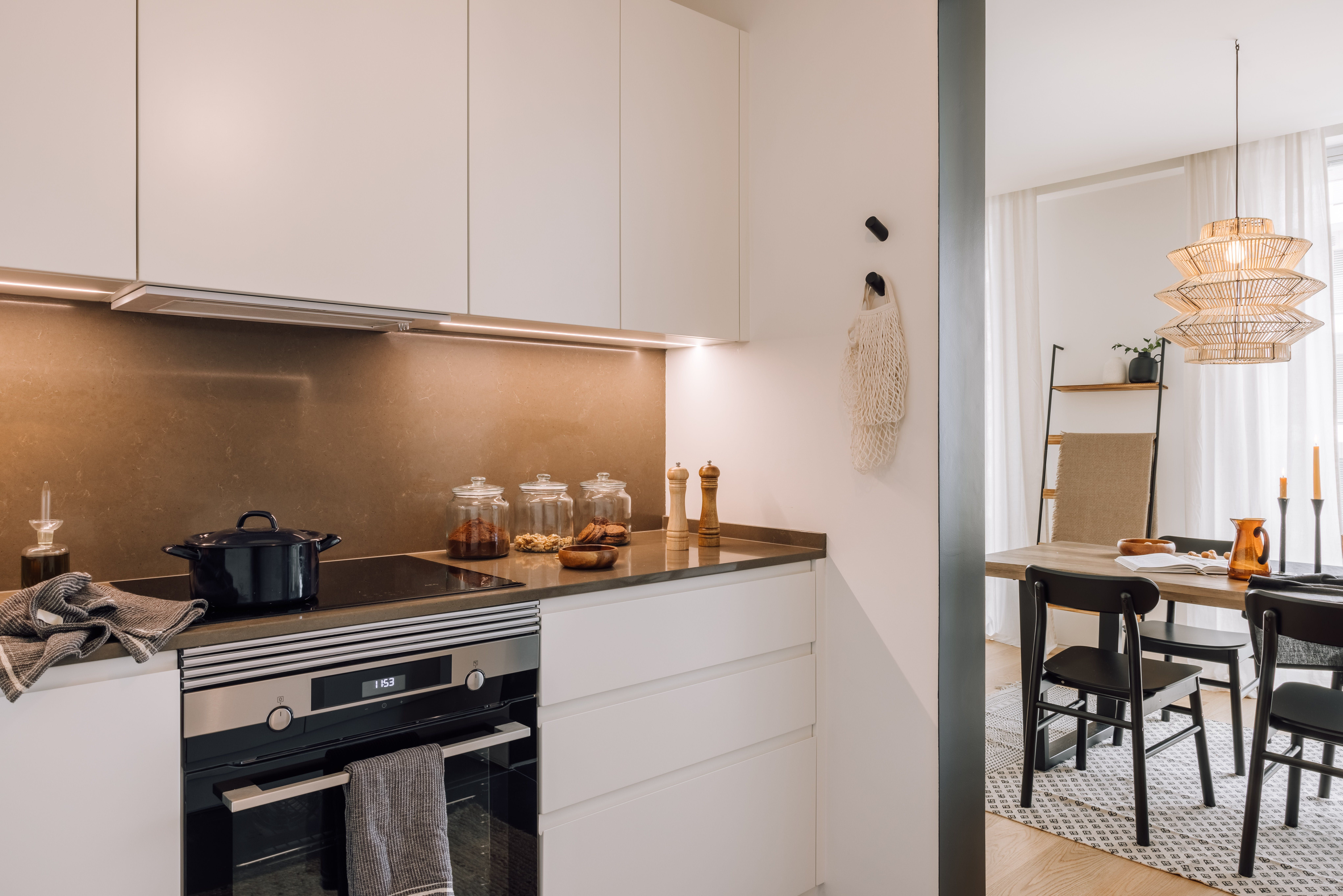 The inside will welcome you warmly with a light-filled living room and dining area, where you’ll be able to relax and unwind after a day of dashing about town. We love the plush furnishings, wooden floors and unique details, all working together to crate the home’s charming ambience. In case you don’t feel like eating out, you may opt to rustle up a delicious feast in the sleek kitchen and share it with your loved ones at the dining table.