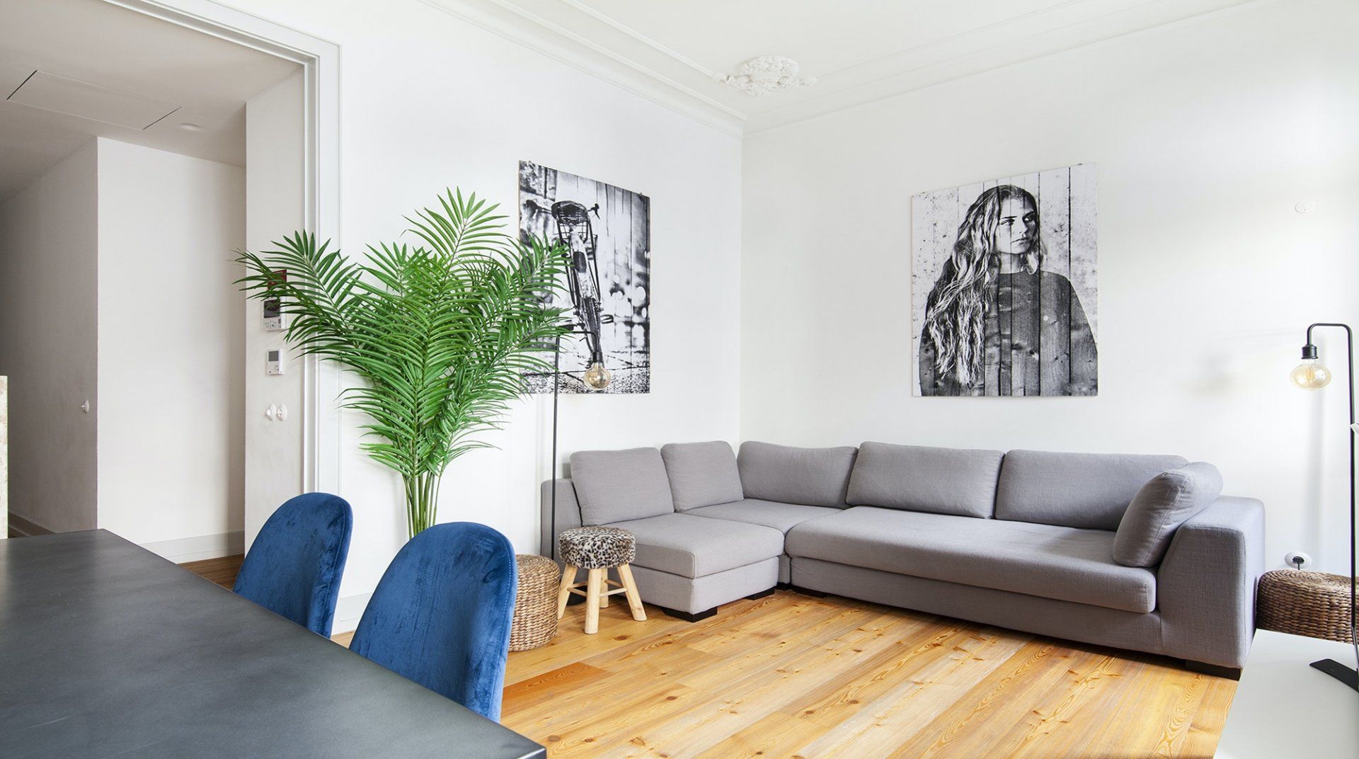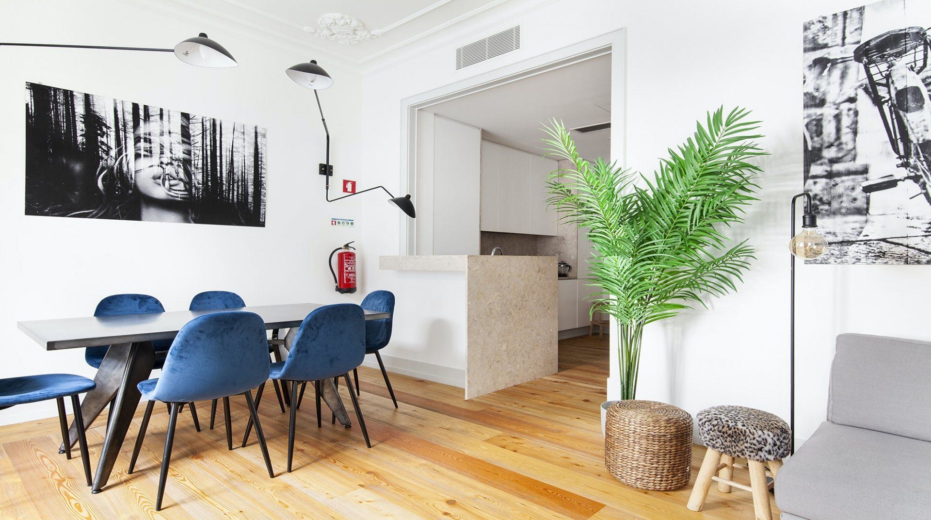Historic Alfama, with its medieval warren of streets, is just a twelve-minute walk from this modern home, while the chic boutiques of Chiado are a fifteen-minute saunter. The harbour-facing square, Praça do Comércio, on the other hand, is a mere four-minute stroll and is surrounded by an array of eateries – your host can make restaurant reservations for you if you wish. It's the same walking distance to Sé de Lisboa, the city's beautiful cathedral – although you don't have to go anywhere to admire it, you can see it from this stylish apartment's windows. It's plain to see this gorgeous home belongs to a designer. The generous space is furnished with standout pieces of furniture and fabulous modern art. If you don't fancy eating out, whip up a Portuguese feast in the kitchen and enjoy it at your dining table – this place is perfect for entertaining.