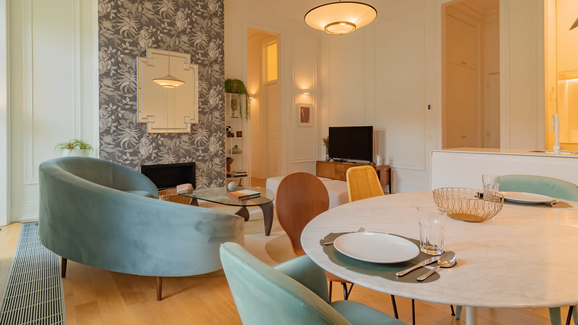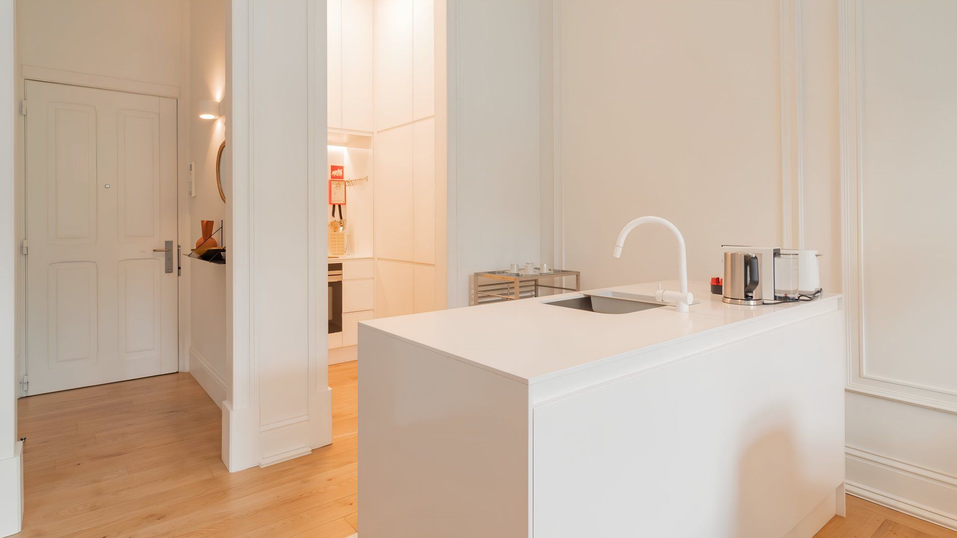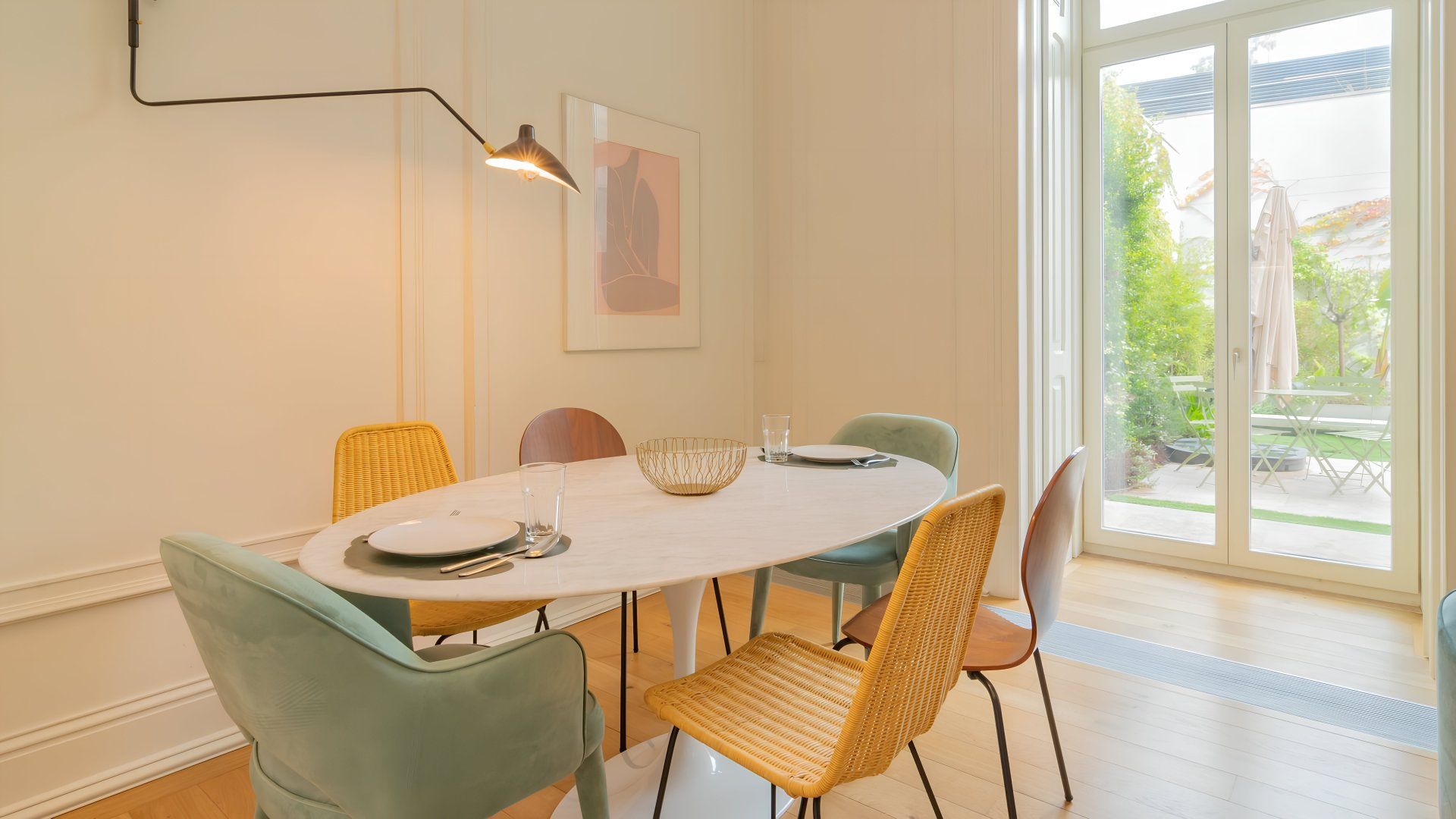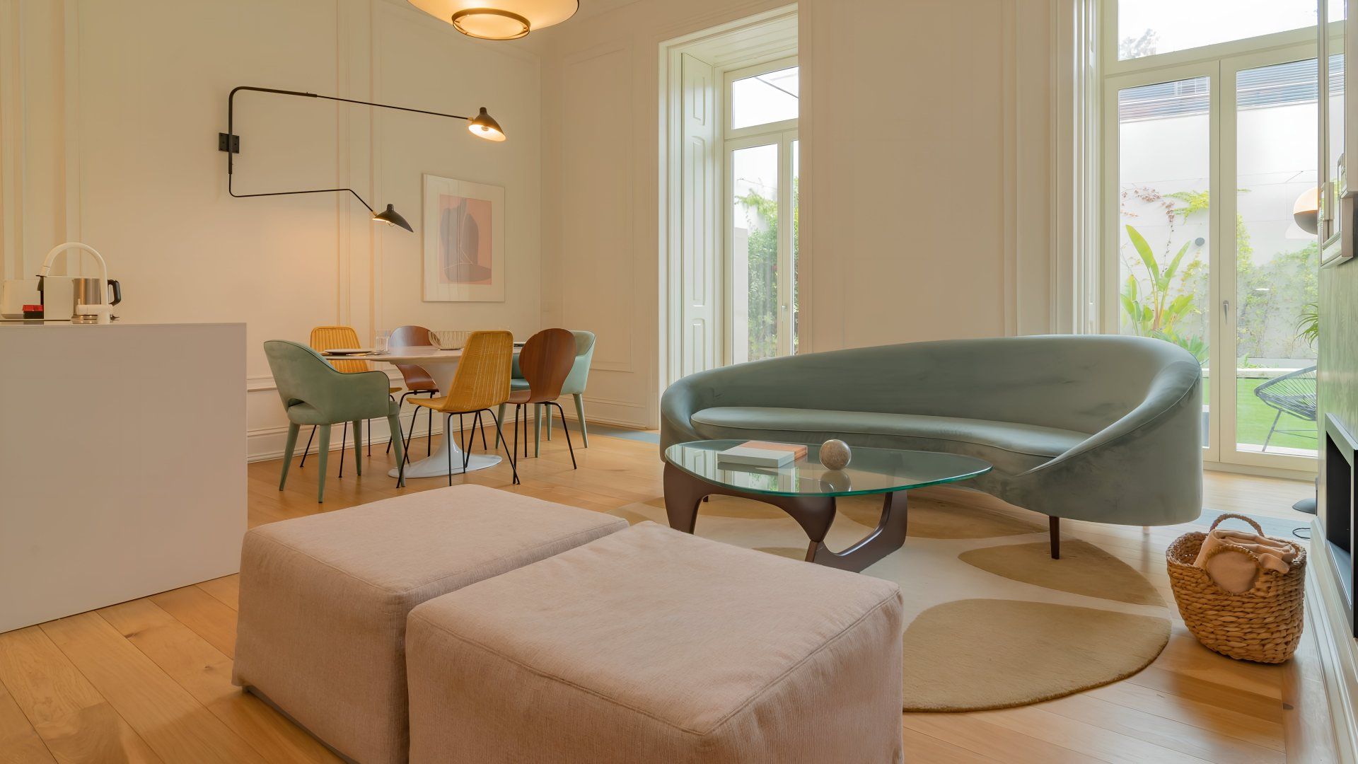 Stay in one of Lisbon's most prestigious avenues, Avenida da Liberdade, in this stylish apartment with a 24-hour concierge and shared indoor pool. Though the kitchen is a little sparse, it’s got all the essentials for quick breakfasts and at-home lunches. Double glass doors lead to a private terrace with a table and chairs for tipples outside and an astroturf lawn. Or, head out to the fado bars and restaurants of central Lisbon, all within easy walking distance.