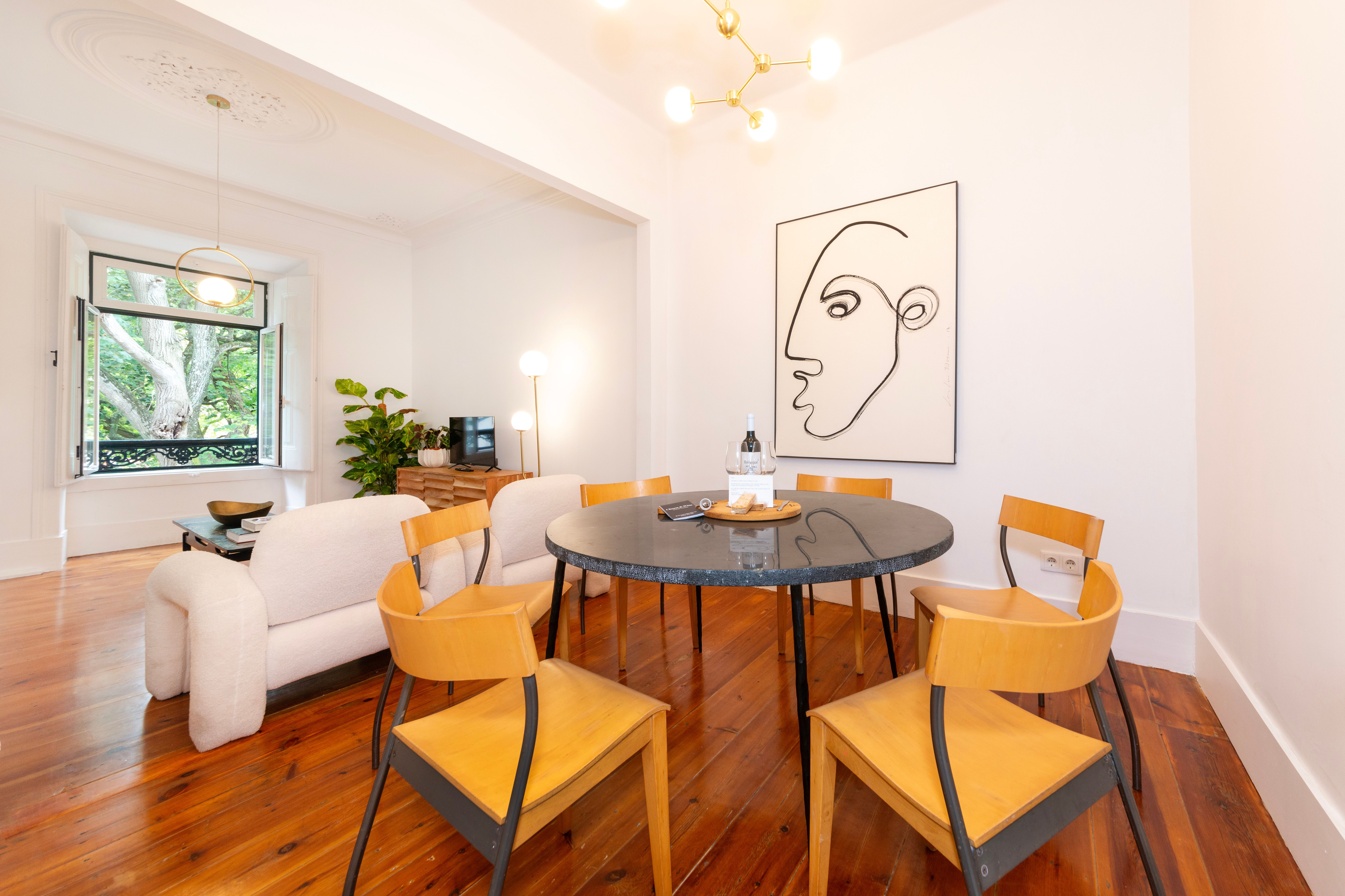 Sun-filled and spacious, this apartment is a serene retreat in the heart of Lisbon with views overlooking the Amoreiras Garden. Uniquely designed, you'll find a bunk bed room with a spiral staircase leading up to the cosy attic suite. Start your morning with a coffee and a Portuguese Pastel de Nata on the sunny balcony before heading out to explore everything Lisbon has to offer. Well connected to public transport and only a short stroll from the Águas Livres Aqueduct and the botanical gardens, it's the perfect base for a family getaway.