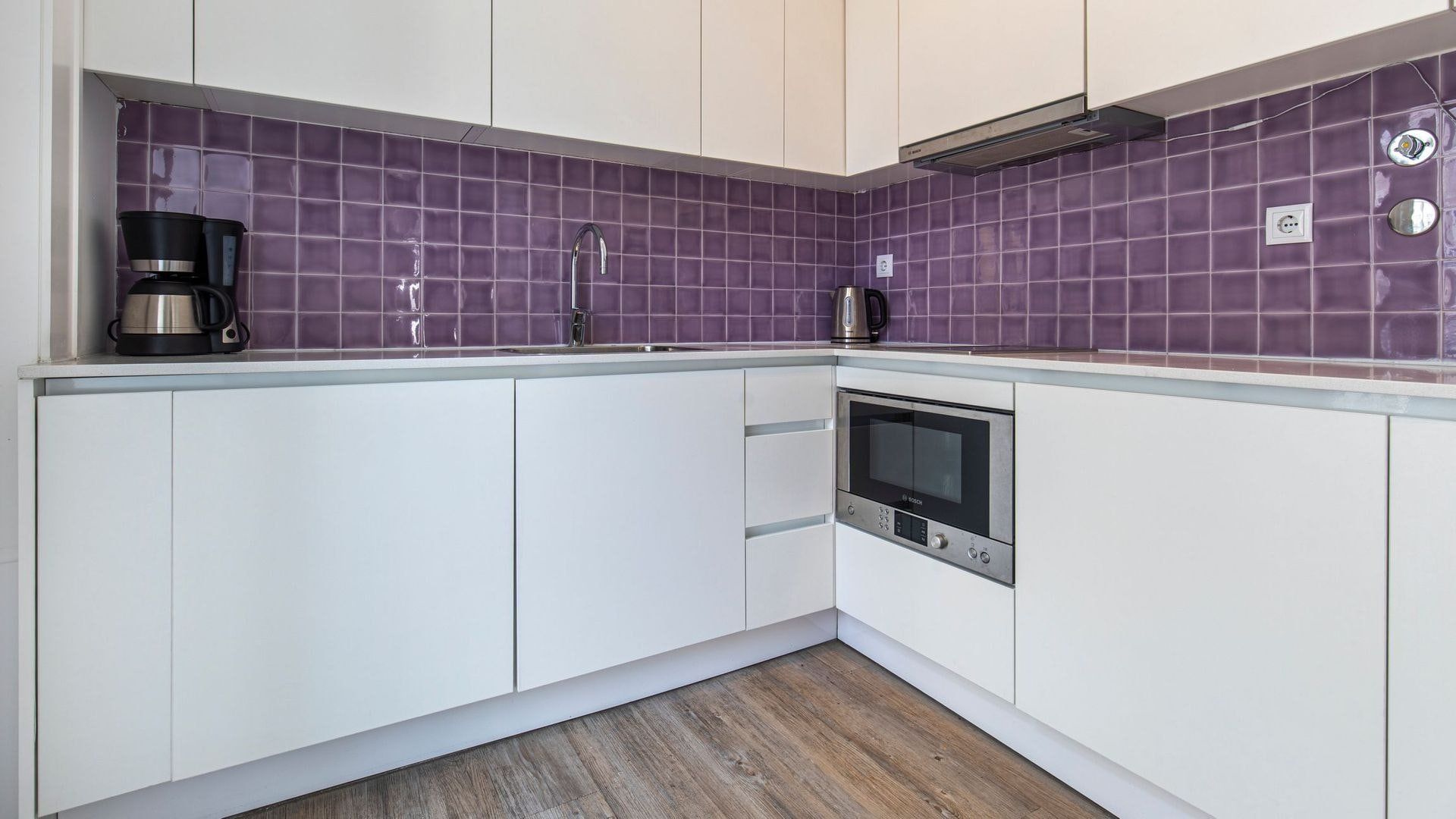 The interior is characterised by sky-high ceilings, vast doors that open onto Juliet balconies, bold colours and contemporary furnishings. Wake up each morning to city views before heading to the kitchen to brew a morning cup of joe to enjoy leaning on one of the wrought-iron balconies and watch the world go by. Feeling peckish? The sleek kitchen is more than capable of inspiring culinary creativity (as long as you're happy with a hob and microwave oven combo), with dimmable lights to set the mood when dinner rolls around.