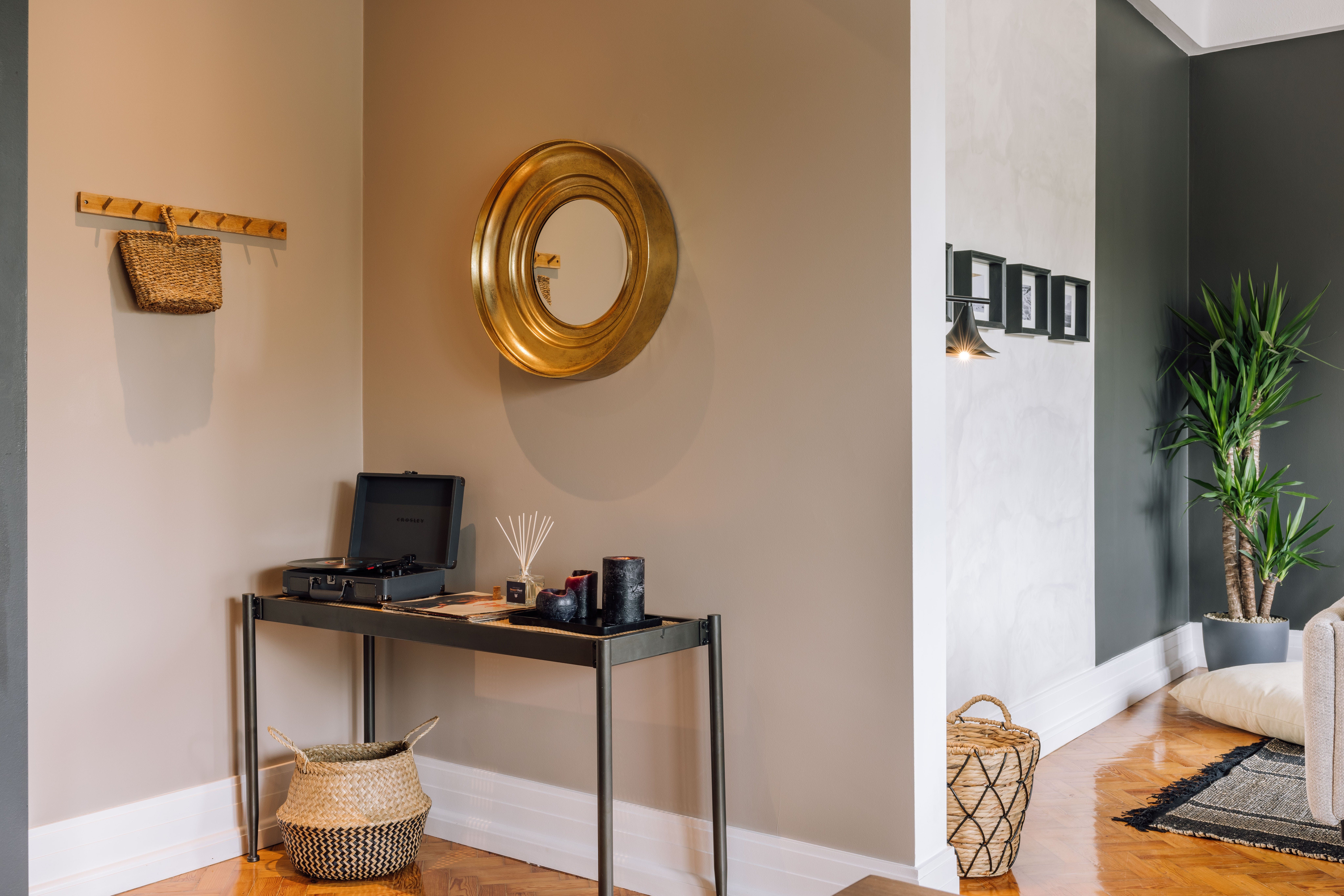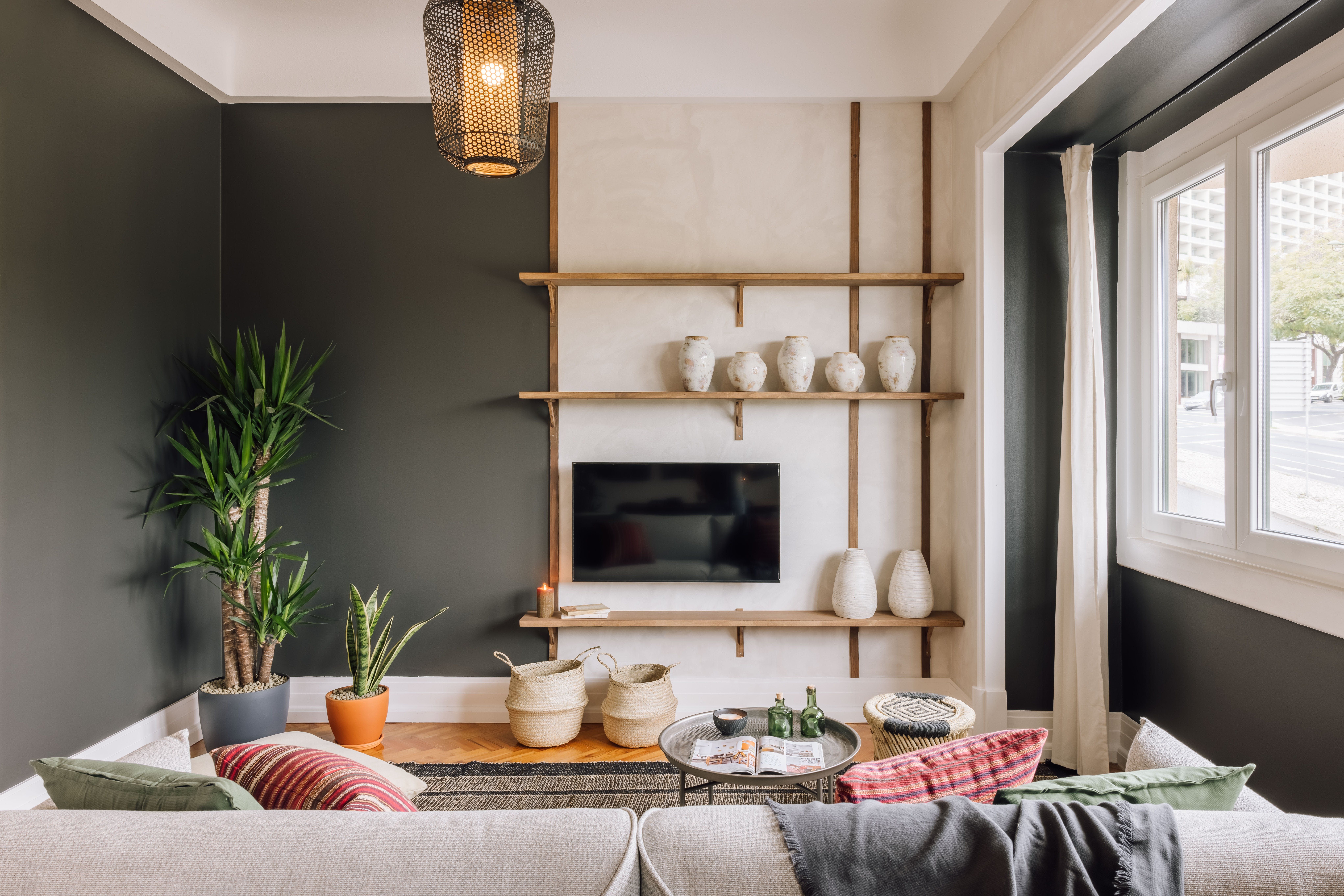 Lavishly decorated with a diverse range of textures and colours, this home echoes the vibrant atmosphere of the local area. We love the glossy parquet floors as you step inside, starting things off with a traditional vibe. But then geometry meets the natural world in the most stylish way.