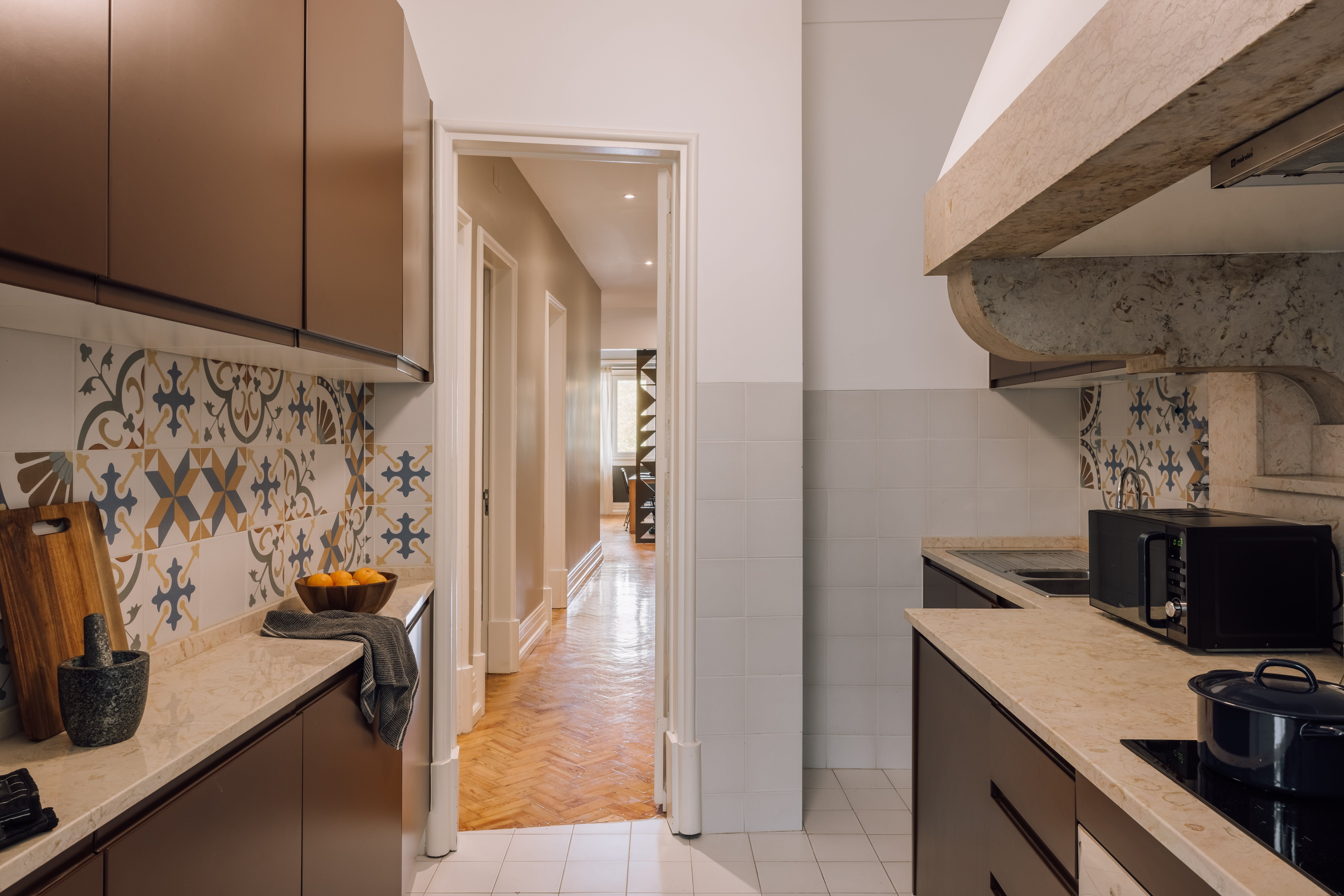 From the main vein of the city, the Avenida de Liberdade, the beating heart of Lisbon is the Marquês de Pombal Square. Where mopeds whizz around its central column and the statue of the Marquis looks out towards the Tagus, you might be more inclined to look in another direction. Think bustling streets of cafés, shopping, and the lush Parque Eduardo VII, just four minutes from this apartment.