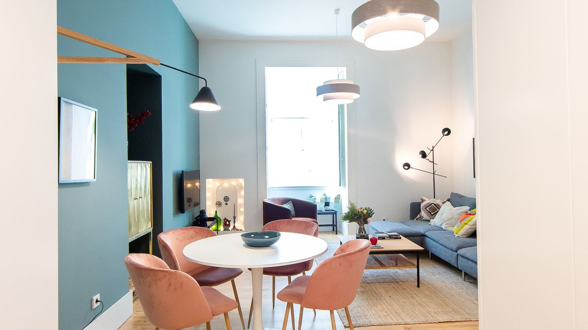 The living area is a chic space where you can really relax – you'll love admiring the splashes of colour and quirky design details dotted throughout. Budding chefs can whip up a delicious Portuguese feast in the kitchen and serve their culinary creations at the gorgeous dining table. And, the open-plan layout makes is perfect for socialising – you can chat to your guests about your plans over a delicious glass of wine in the evening.