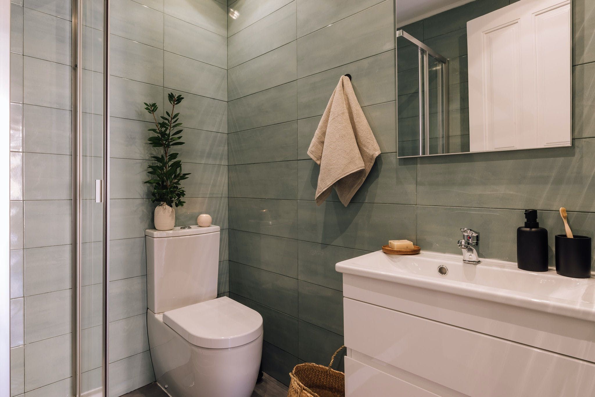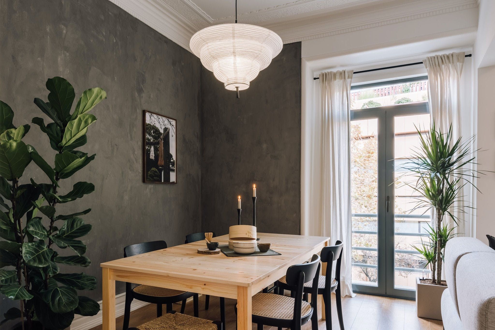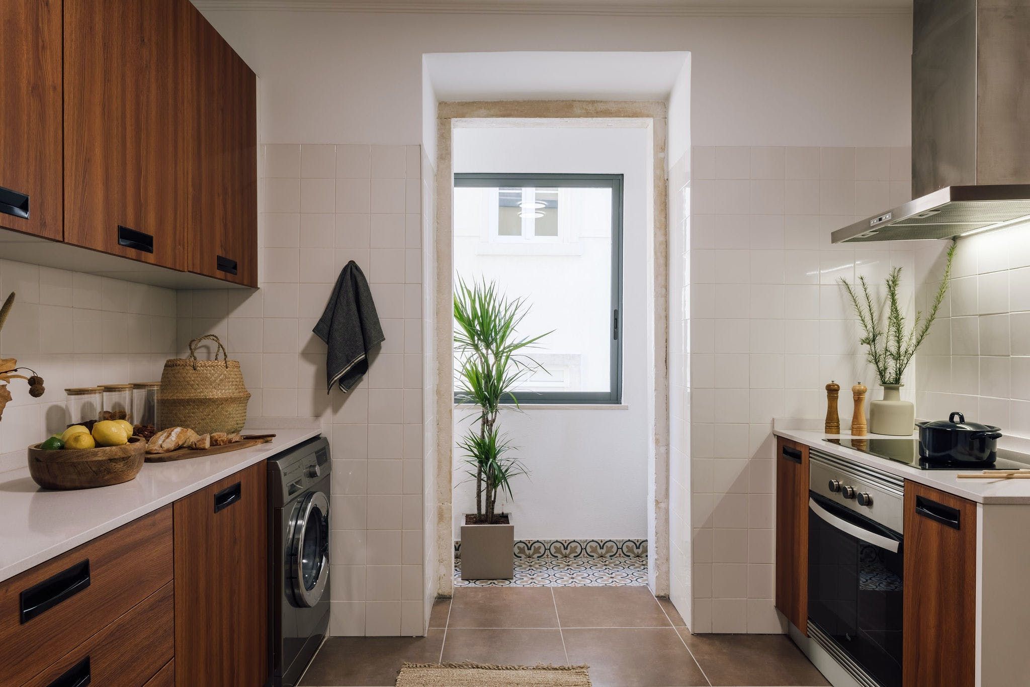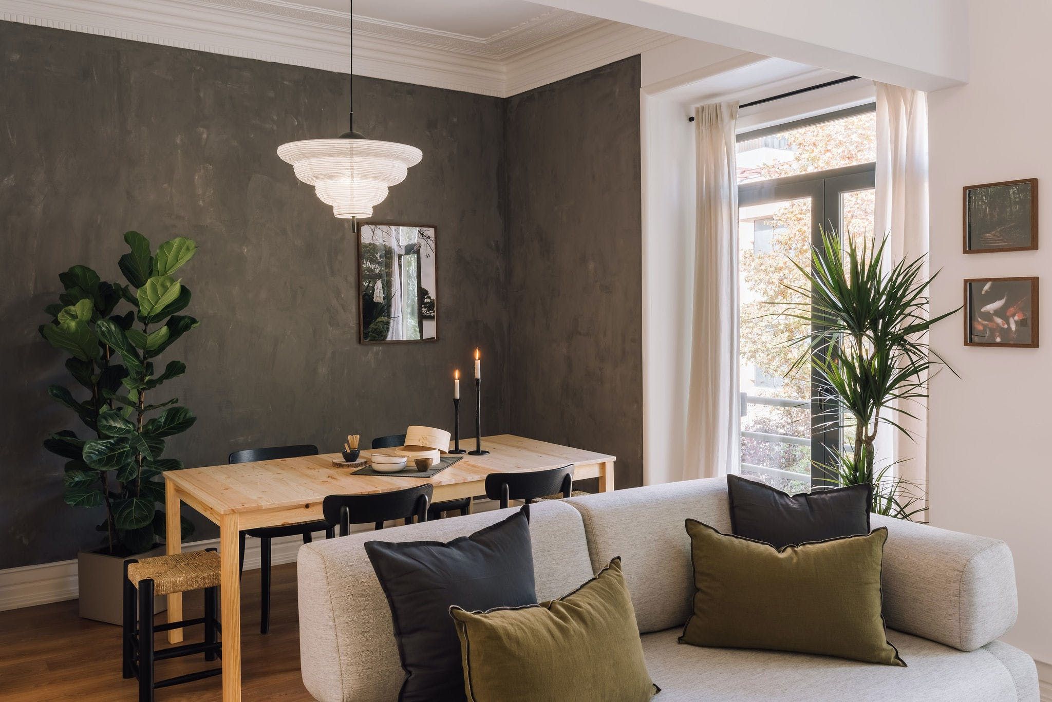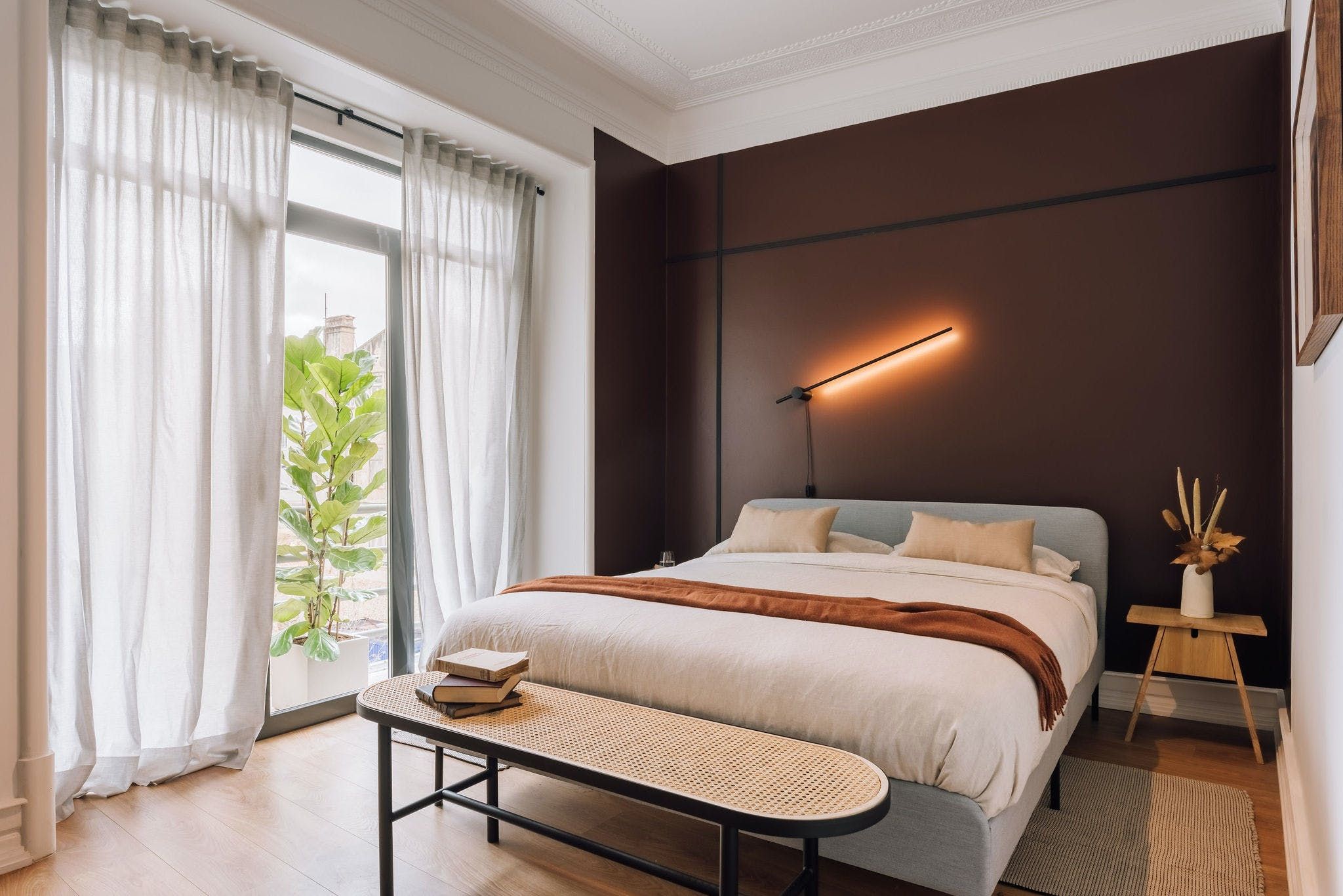 Perched in a residential spot in the heart of sunny Lisbon, this stylish apartment features both an on point location and impeccable design details. As you arrive inside the space, you'll be welcomed by the home's contemporary interiors that contrast different textures to create a soothing space from which you can relax in style. However, it's the finer details of this place that allow it to stand out from the rest, from the custom neon light to the matte finish feature walls and optimal dedicated desk space – the space goes above and beyond to serve its guests with a pleasing experience. We particularly love the colour palette of the calming peppermint bathroom – it provides the perfect place to pamper yourselves after an active day of discovering the city. Enjoy the just as green leafy neighbourhood from the privacy of one of the home's balconies, or better still, set off on an adventure to explore Lisbon's on foot or via the world-renowned public tramway? You'll be positioned just a thirty-minute walk away from the centre of town or an even quicker fifteen minutes away by public transport.