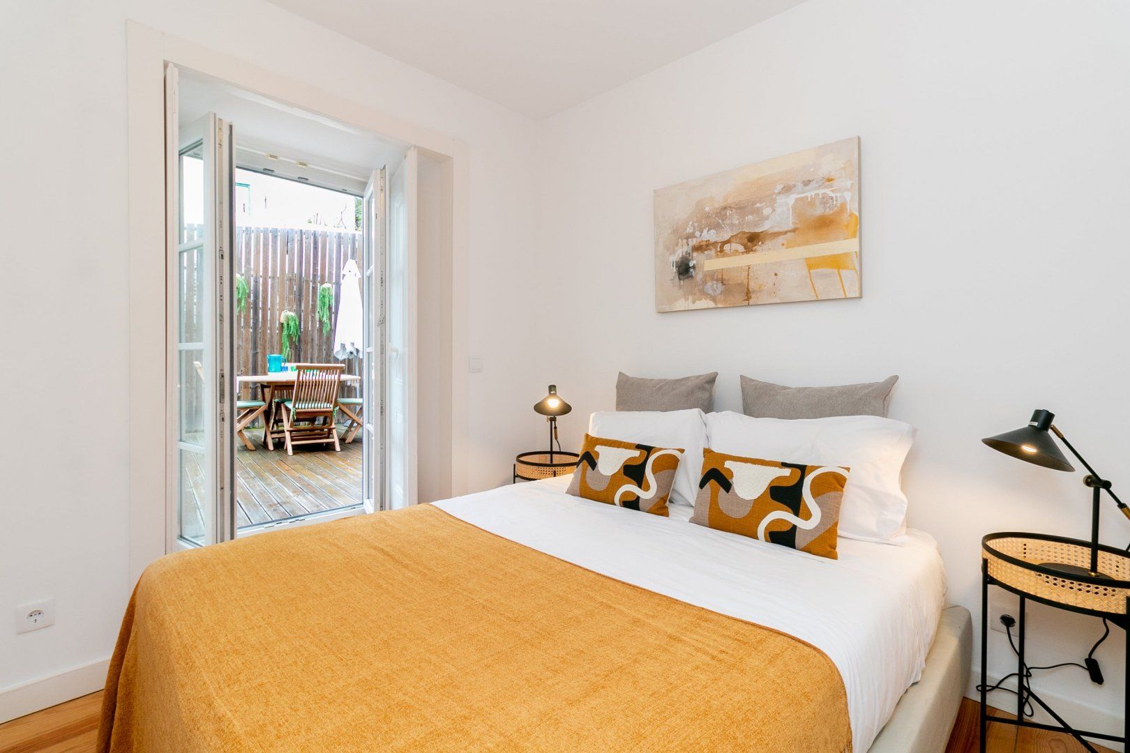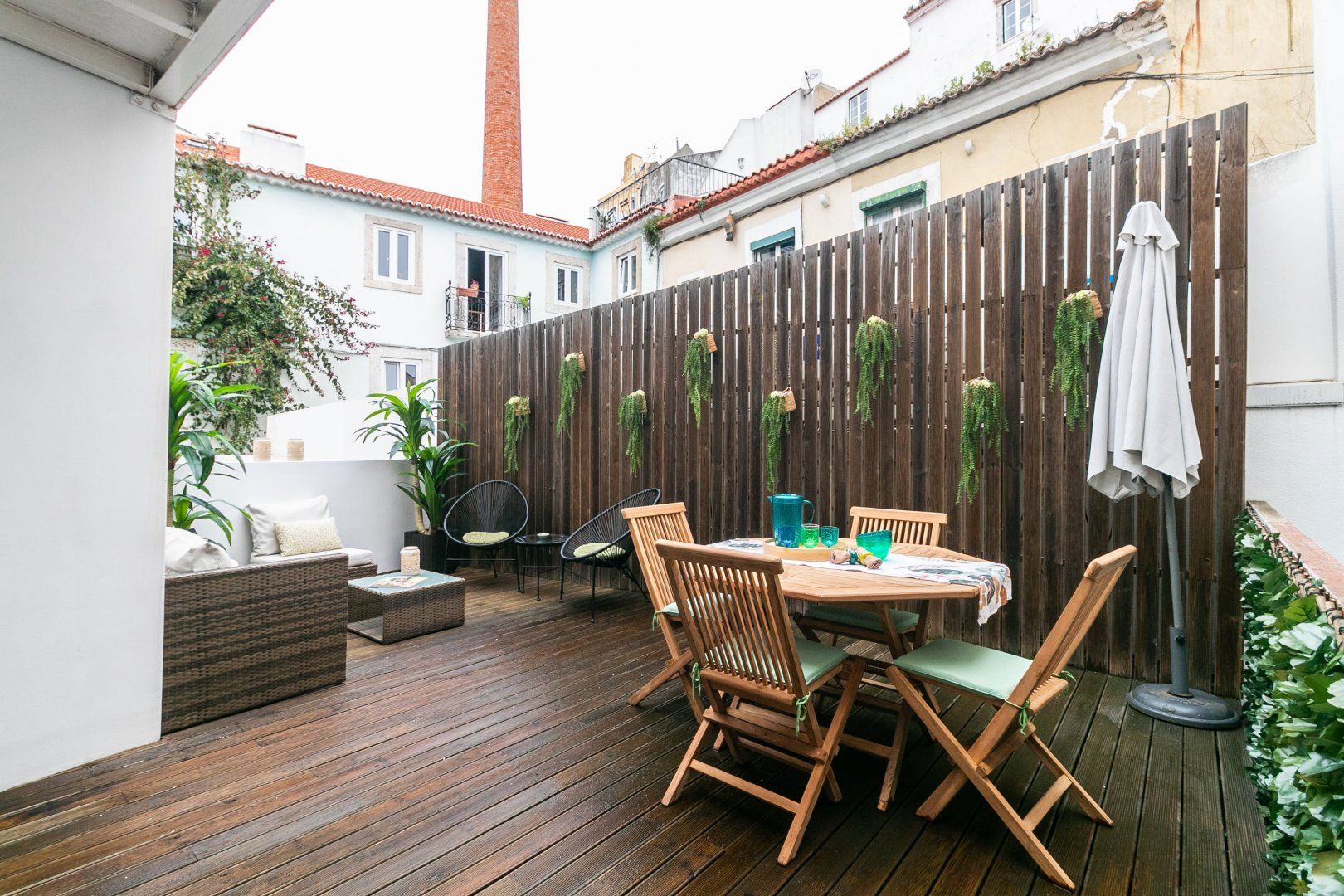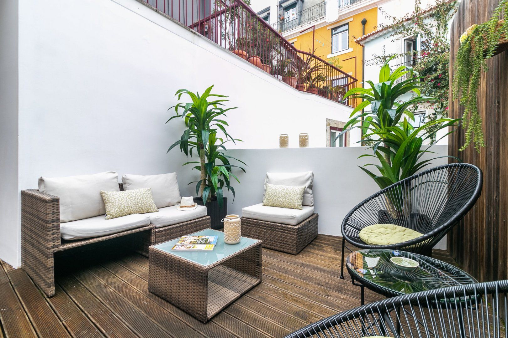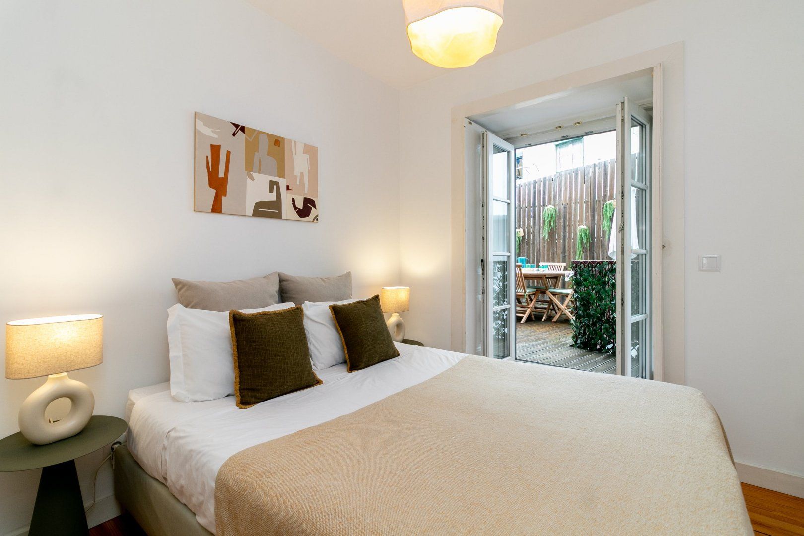 The thing that really sets this home apart from many others is its spacious terrace that spans the whole apartment. There's a dining area for alfresco meals and a comfy outdoor sofa and chairs for evening drinks. We love that both bedrooms open out onto the patio too. There are views over the area and to the river from the living room's large windows as well. And what a neighbourhood this is. If you've heard of Alfama, you'll know it has plenty of authentic Fado restaurants. And attractions, including São Jorge Castle, Lisbon Cathedral, and the Miradouro das Portas do Sol are under a ten-minute walk away. Oh, and another highlight, the iconic Tram 28 stops right outside the door.