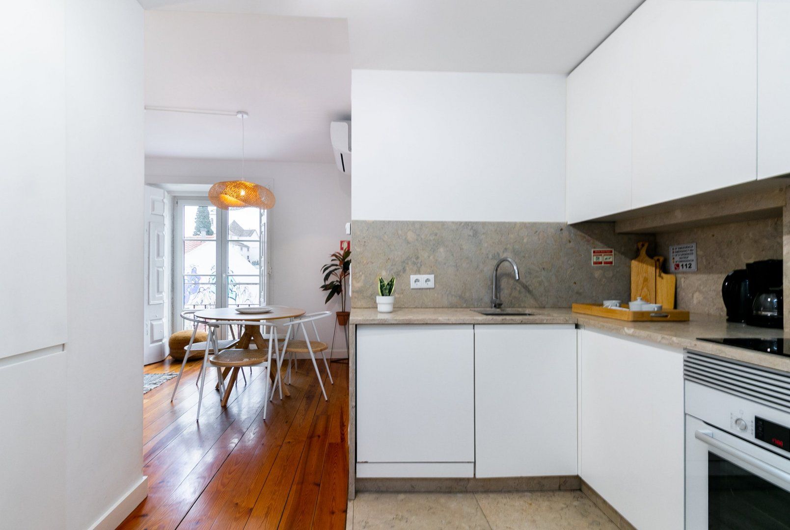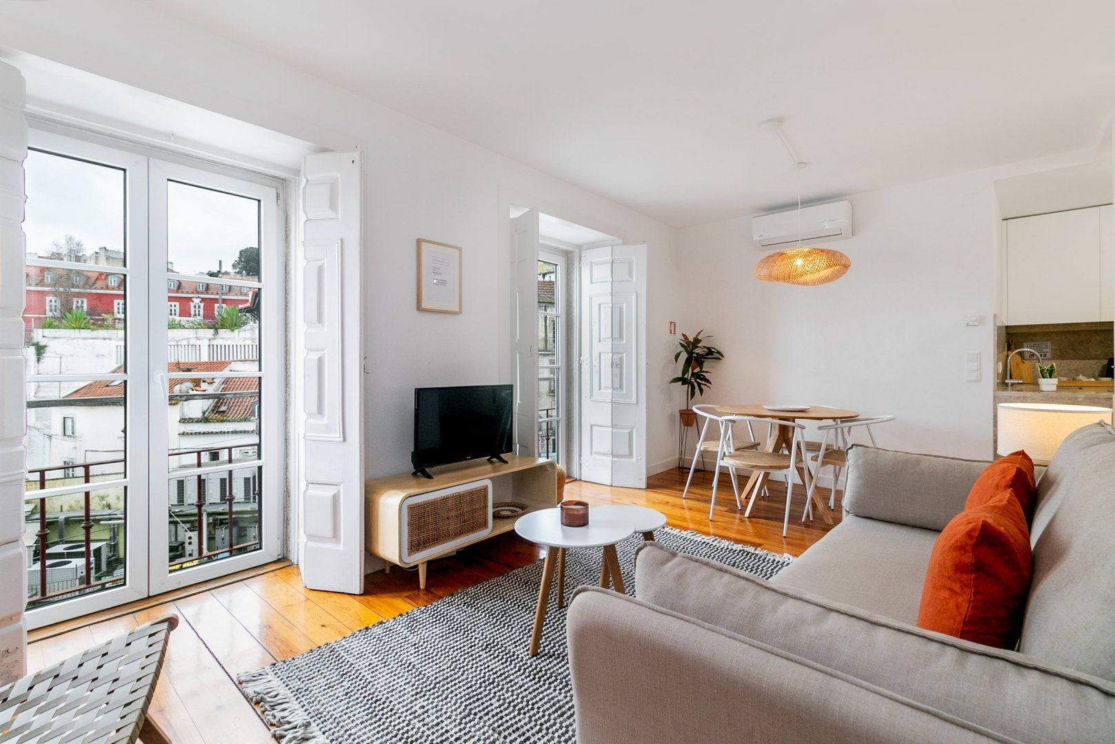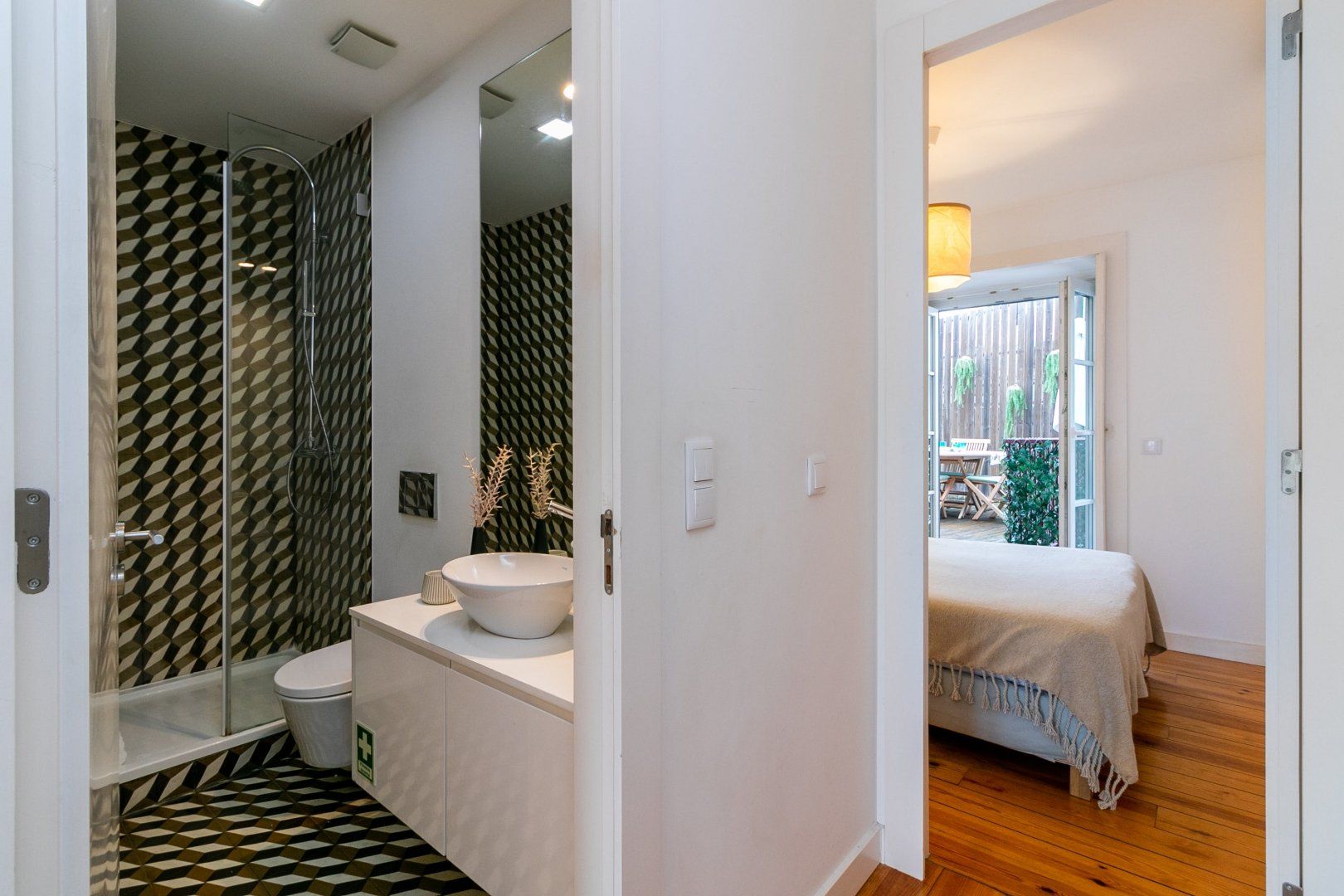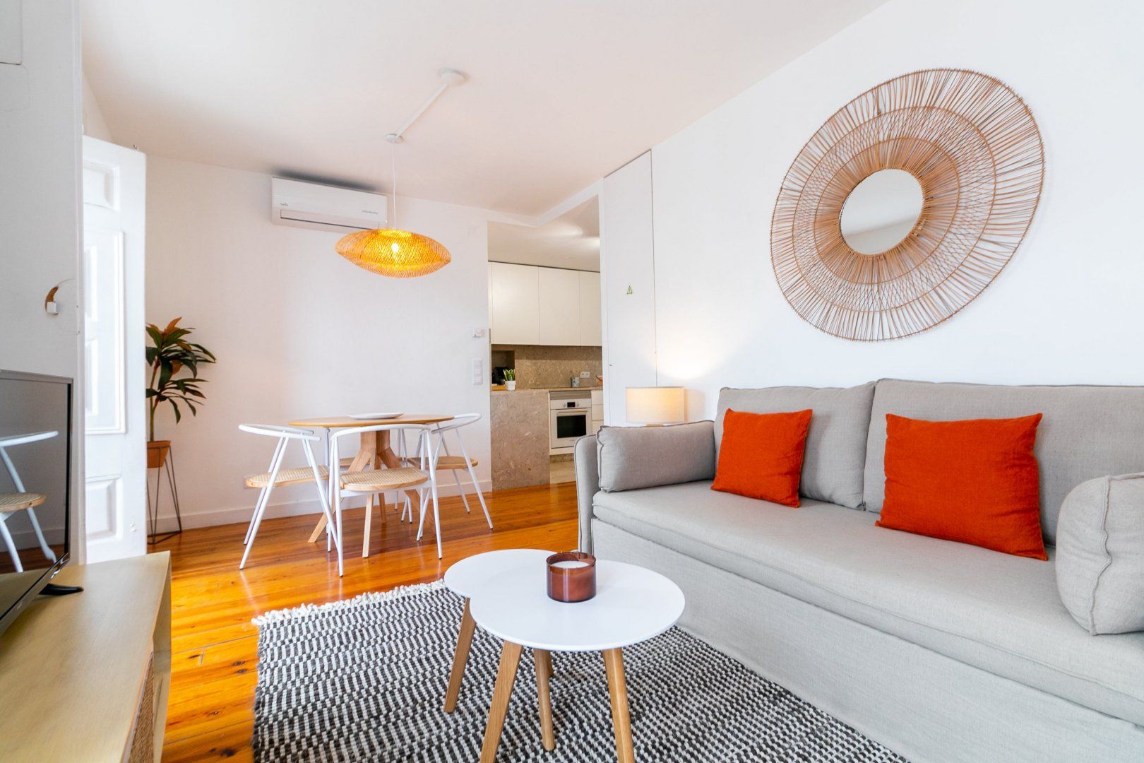 The thing that really sets this home apart from many others is its spacious terrace that spans the whole apartment. There's a dining area for alfresco meals and a comfy outdoor sofa and chairs for evening drinks. We love that both bedrooms open out onto the patio too. There are views over the area and to the river from the living room's large windows as well. And what a neighbourhood this is. If you've heard of Alfama, you'll know it has plenty of authentic Fado restaurants. And attractions, including São Jorge Castle, Lisbon Cathedral, and the Miradouro das Portas do Sol are under a ten-minute walk away. Oh, and another highlight, the iconic Tram 28 stops right outside the door.