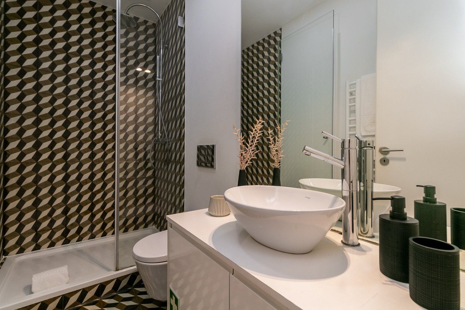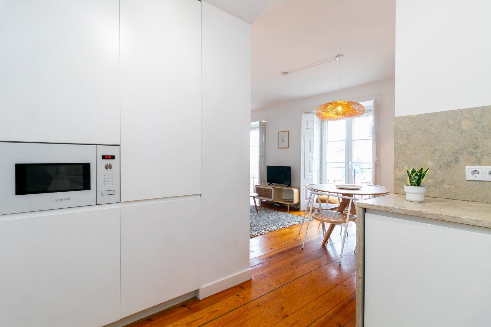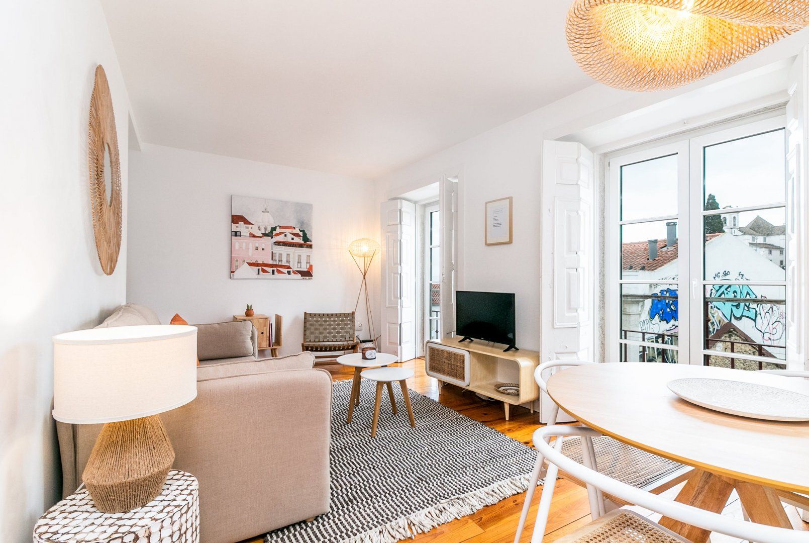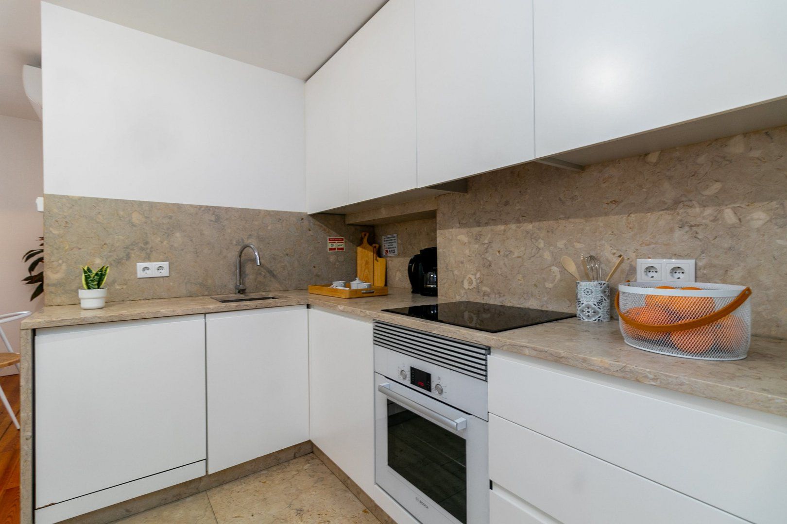 The thing that really sets this home apart from many others is its spacious terrace that spans the whole apartment. There's a dining area for alfresco meals and a comfy outdoor sofa and chairs for evening drinks. We love that both bedrooms open out onto the patio too. There are views over the area and to the river from the living room's large windows as well. And what a neighbourhood this is. If you've heard of Alfama, you'll know it has plenty of authentic Fado restaurants. And attractions, including São Jorge Castle, Lisbon Cathedral, and the Miradouro das Portas do Sol are under a ten-minute walk away. Oh, and another highlight, the iconic Tram 28 stops right outside the door.