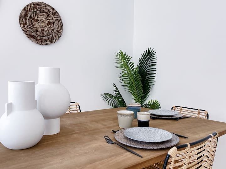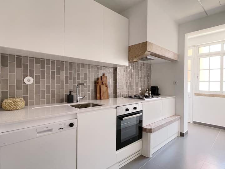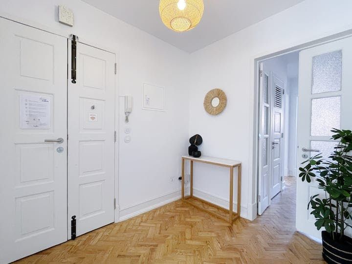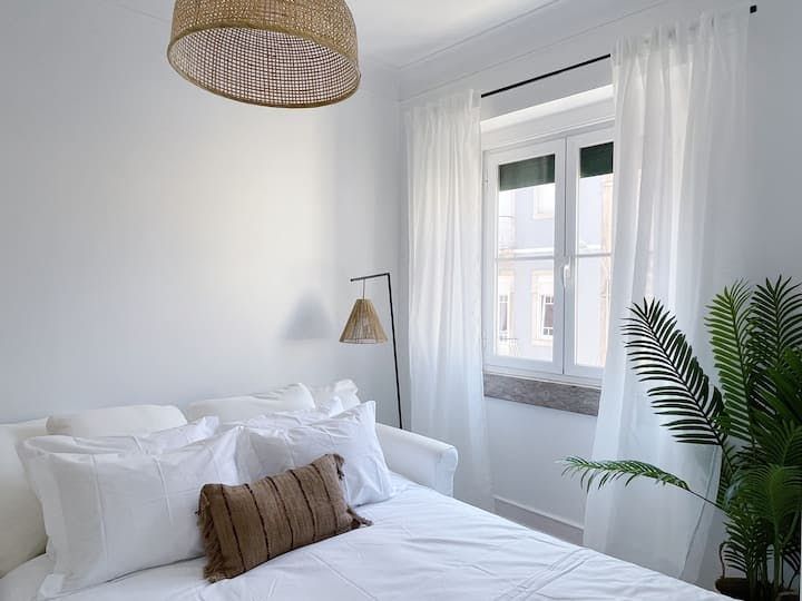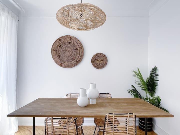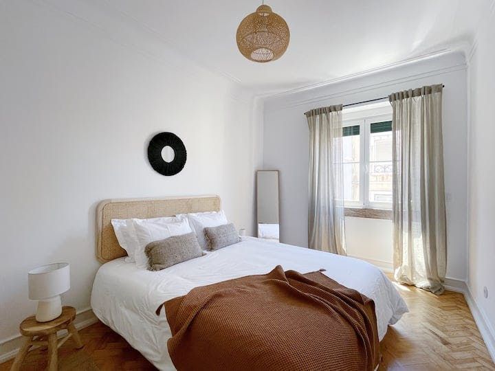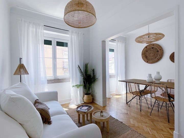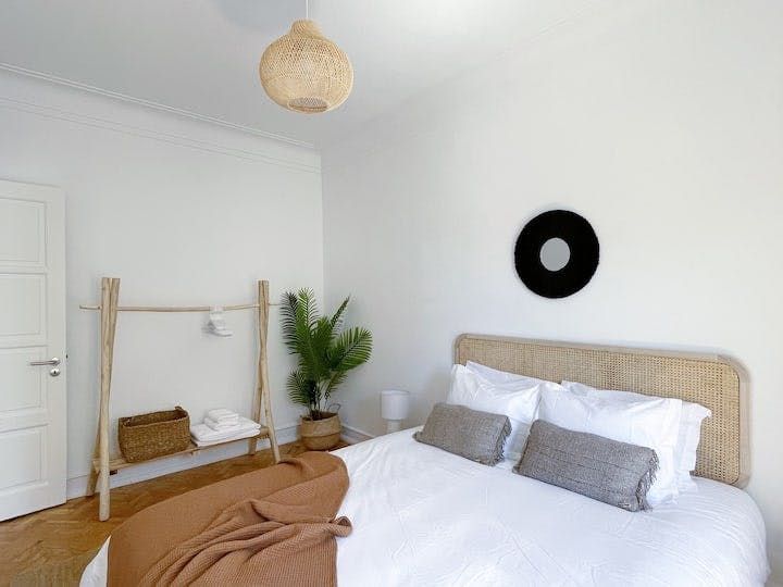 Back at this apartment, there's a charming bohemian vibe and lots of natural materials such as bamboo, raffia lamps, rattan and woven baskets. Plenty of plants give this place a homely feel. If you don't fancy eating out, head to the modern kitchen and rustle up some tasty bacalhau (salt cod) with olives and homemade bread made in this home's handy bread maker. This place is ideal for a family or group of friends.