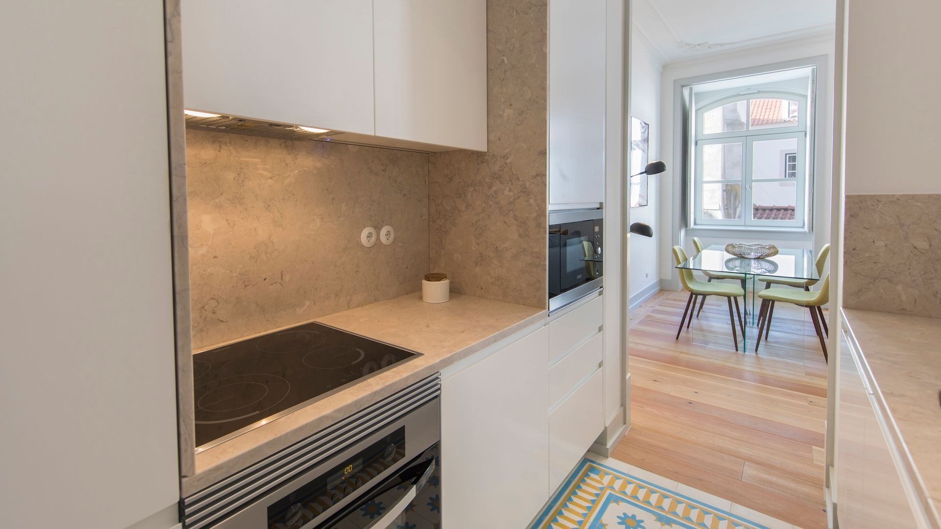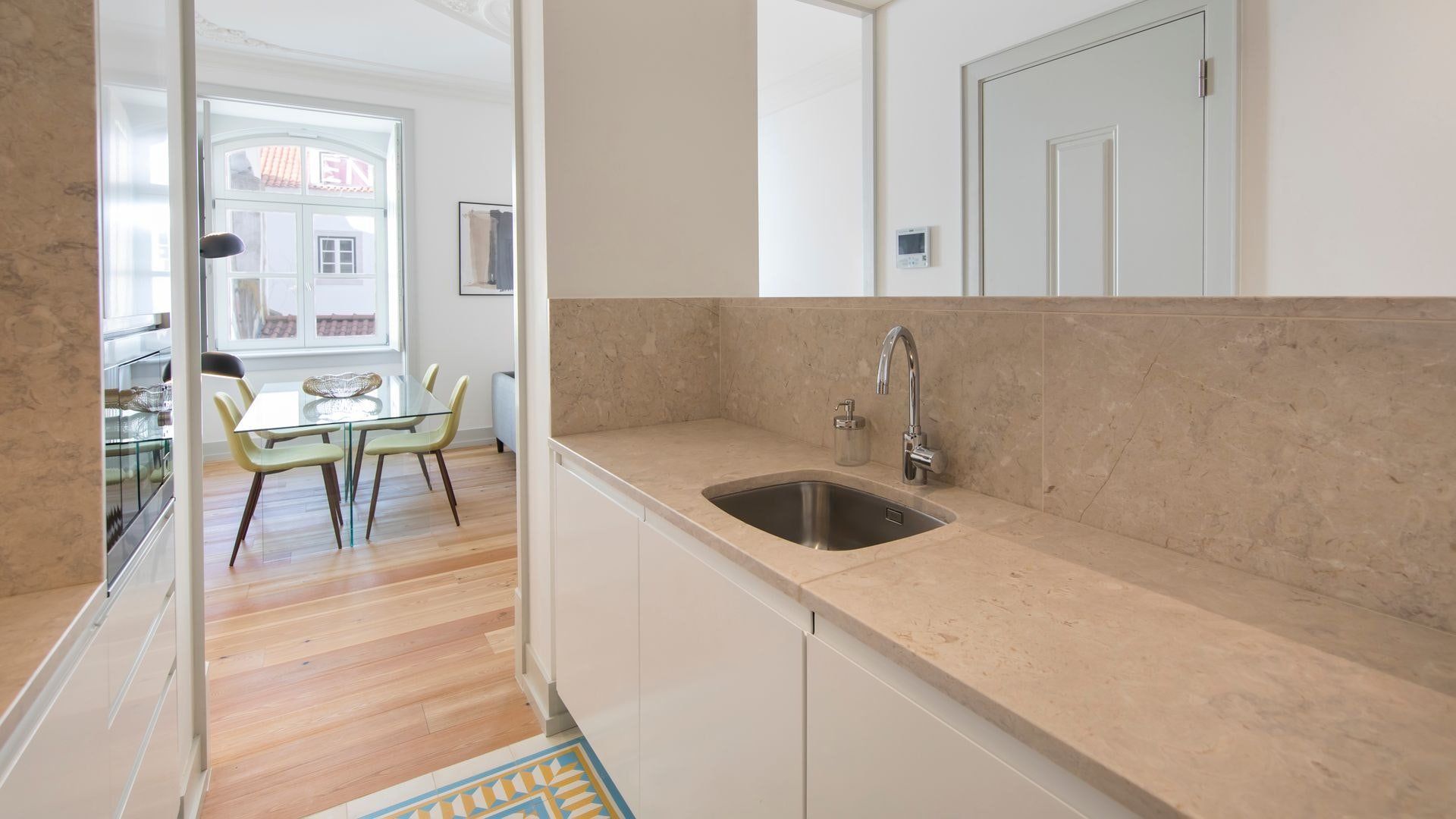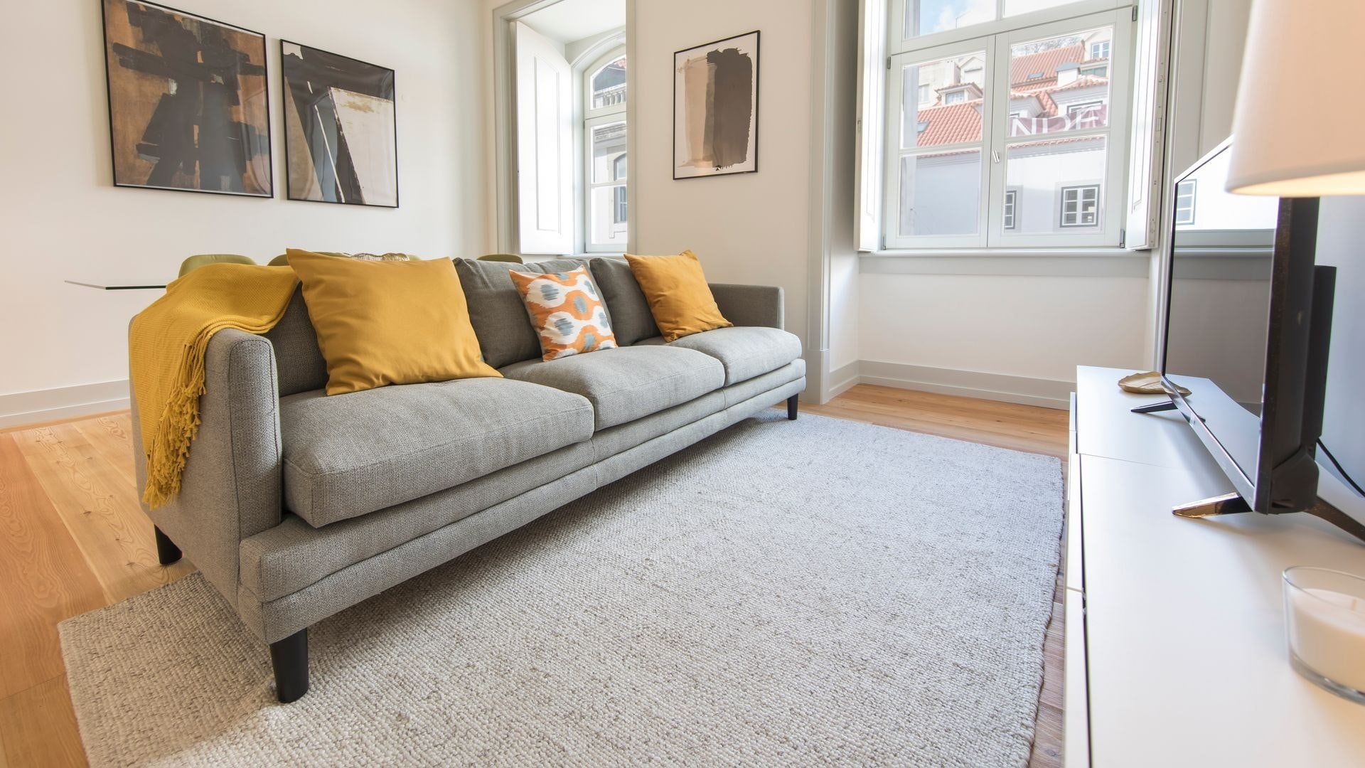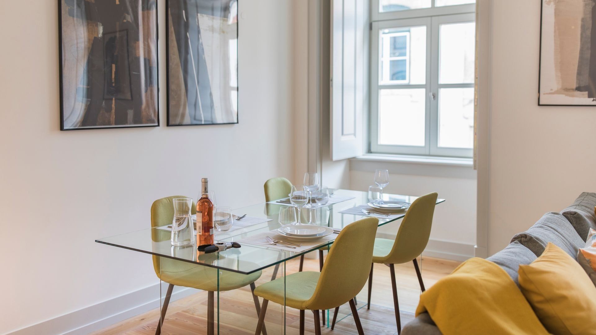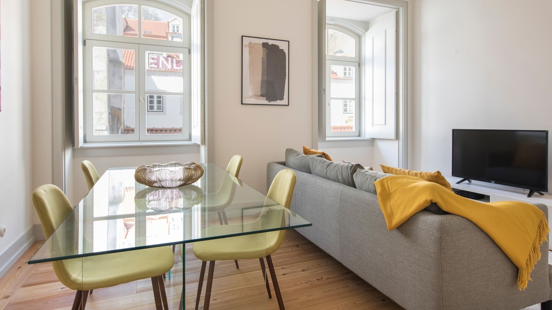 Open up the French doors to the small balcony in the bedroom in the morning and listen to the sounds of Lisbon. Then whip up some Portuguese style baked eggs in the modern kitchen for breakfast. Sunny yellow cushions and throws adorn the sofa in the bright living room – it’s the perfect place to plan your day.