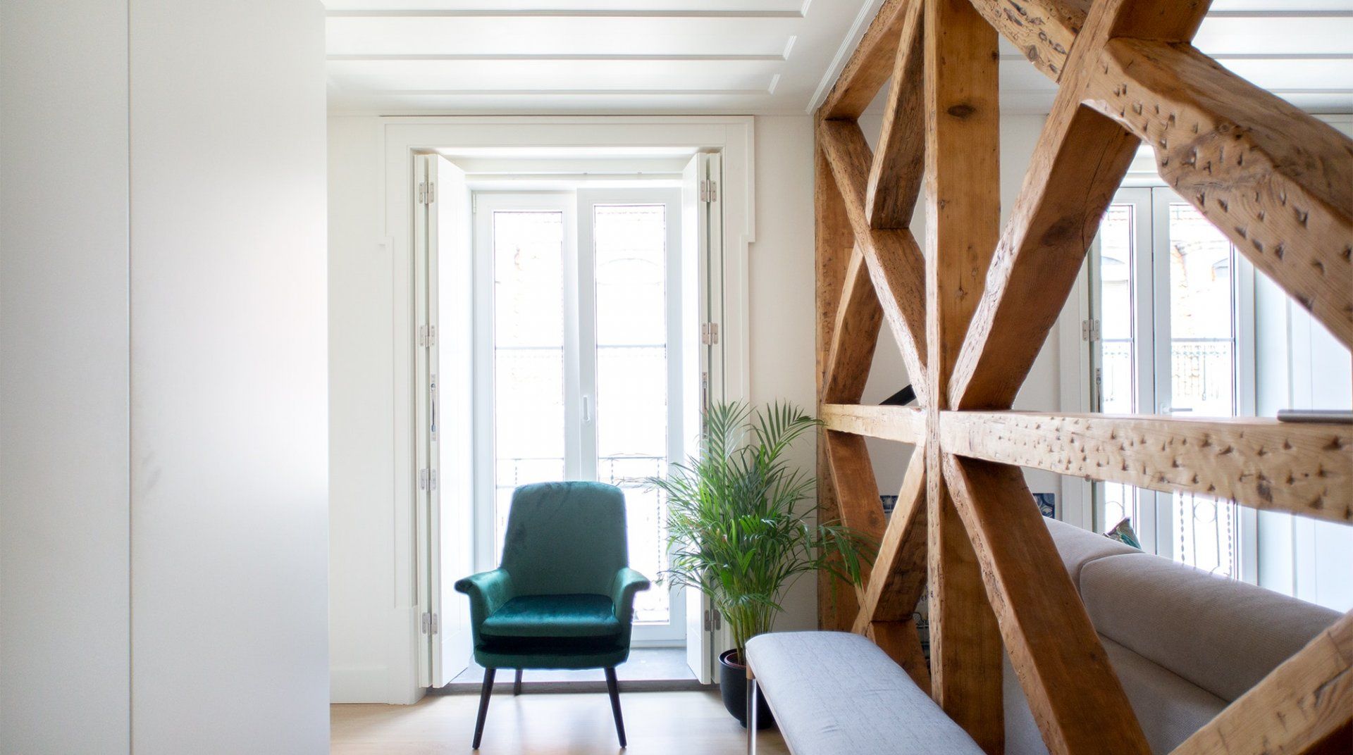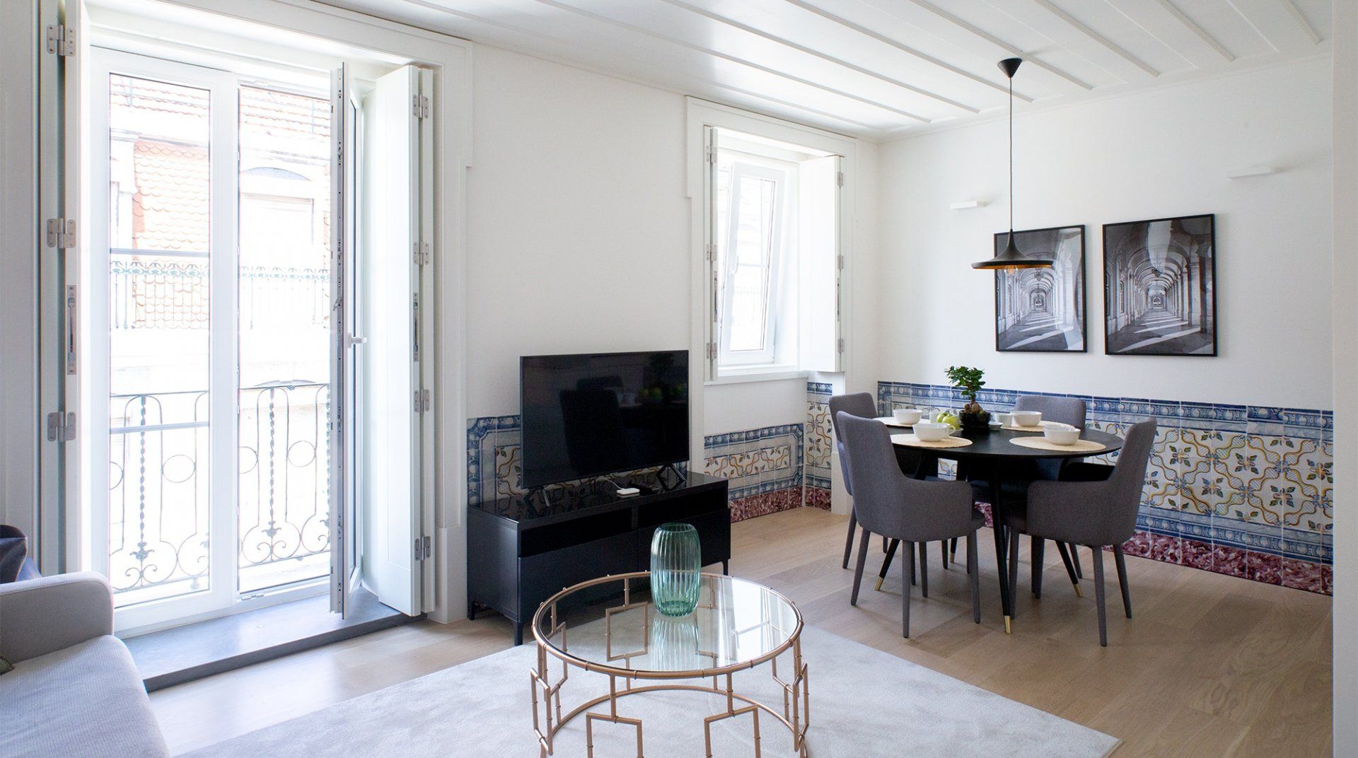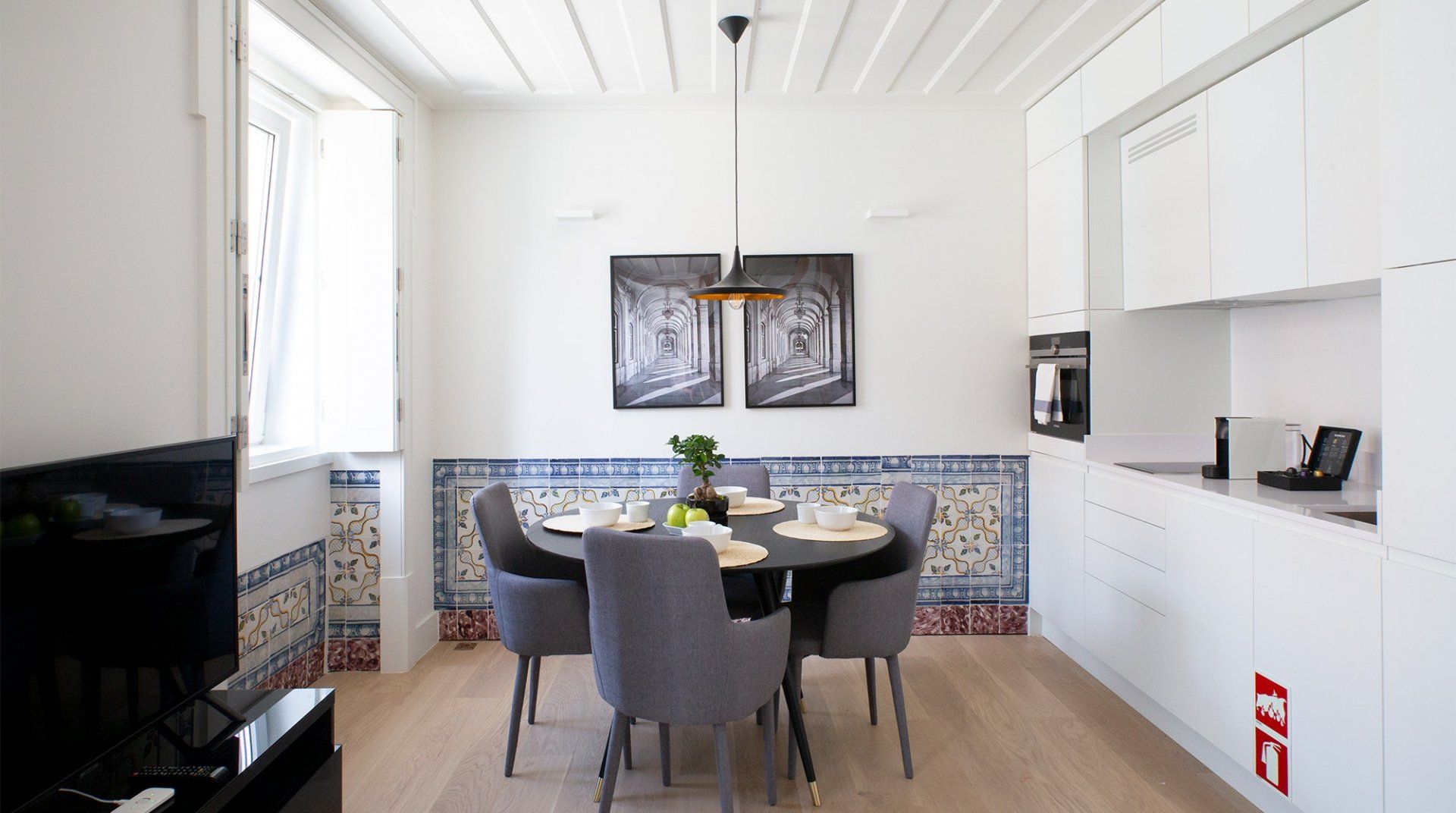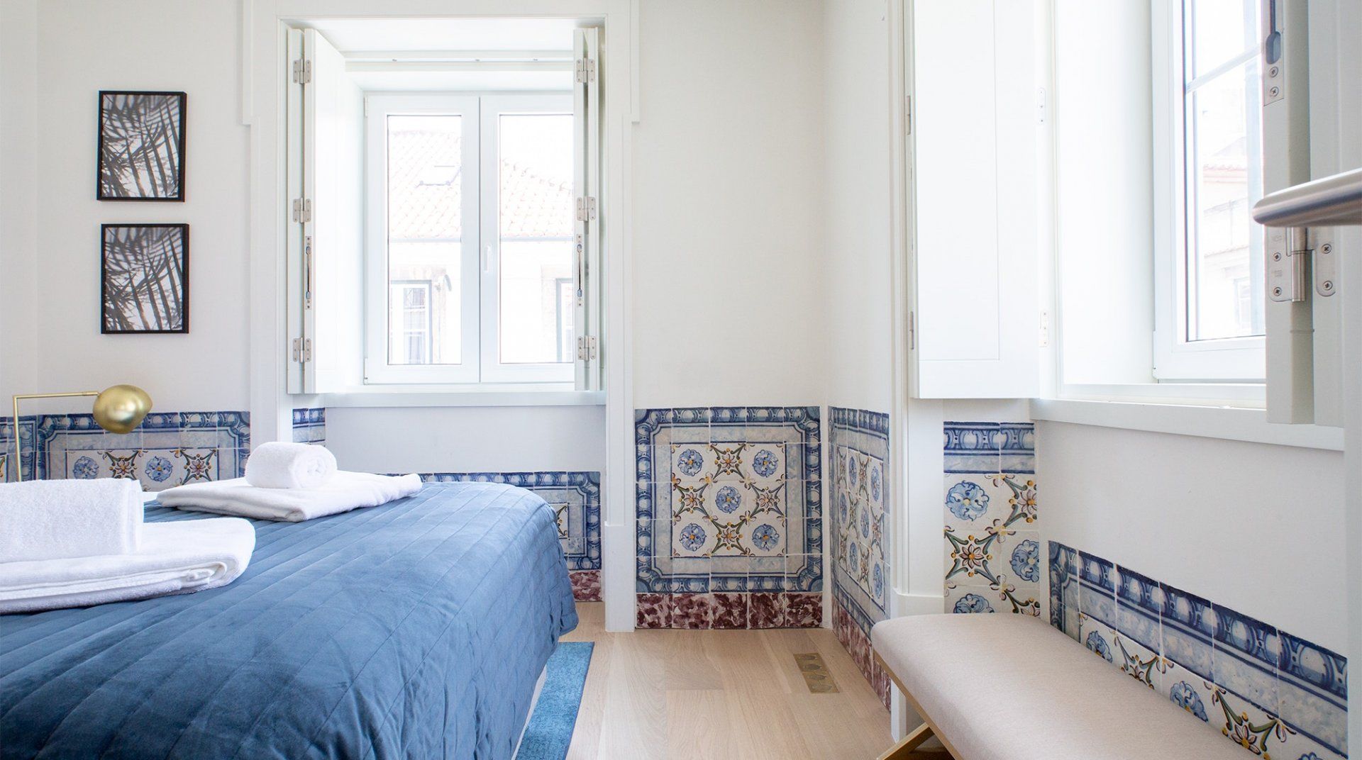 This is home with a coherent and familiar aesthetic – traditional Portuguese design details are present in almost every room. From the azulejo details in the bedroom, the Pombaline support beams, and the inset ceiling, Bolo Cremoso sets the tone for a truly Lisbon holiday. Located only minutes away from the Santa Justa Lift, the Tejo riverfront, and Sāo Jorge Castle, this home will place you in the heart of the action. In the evening, you can relax on the cosy balcony, overlooking the busy streets of Baixa below.