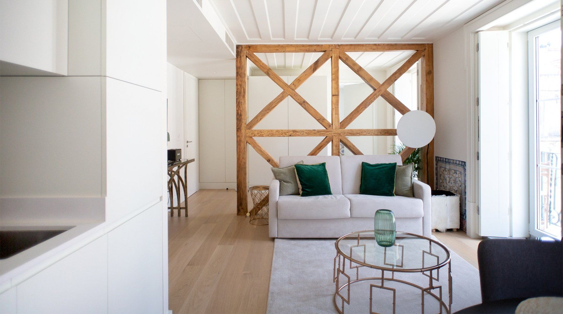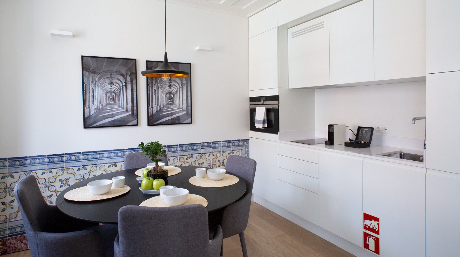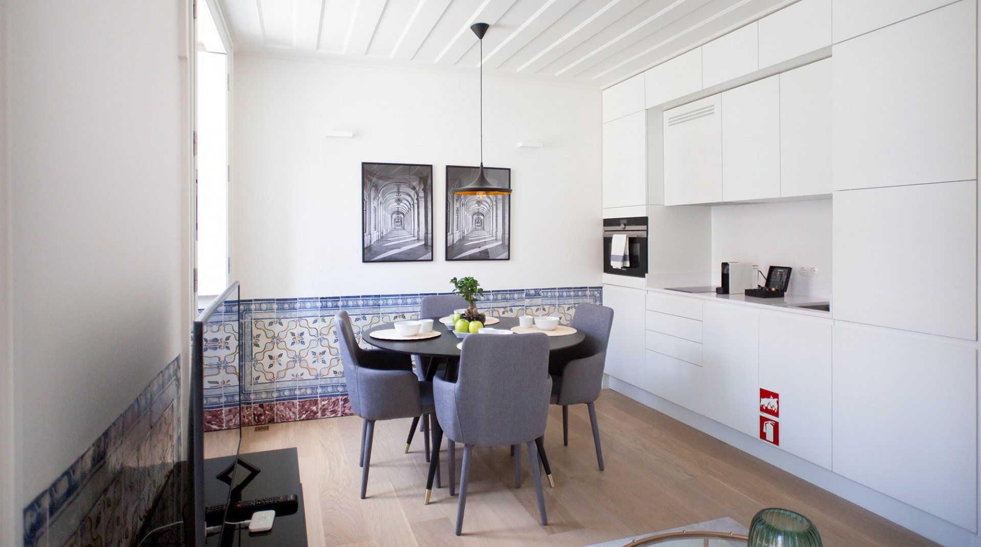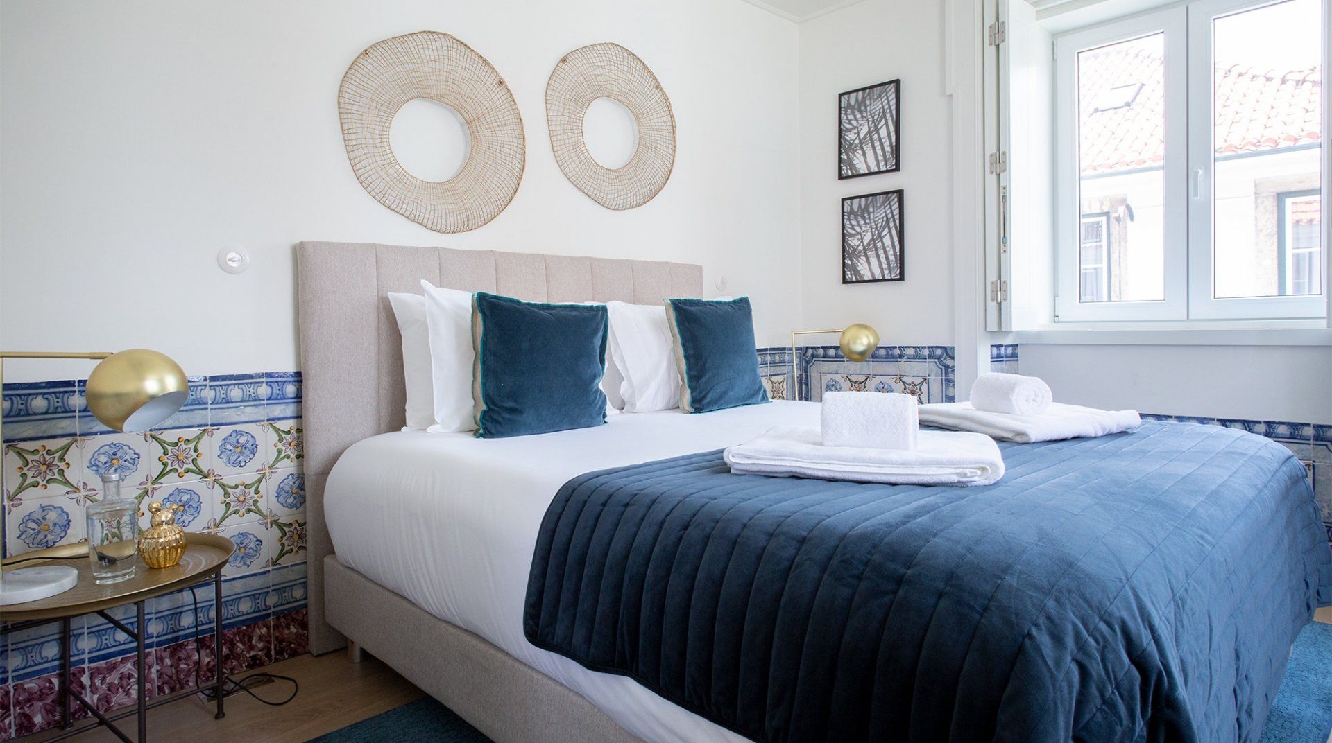 This is home with a coherent and familiar aesthetic – traditional Portuguese design details are present in almost every room. From the azulejo details in the bedroom, the Pombaline support beams, and the inset ceiling, Bolo Cremoso sets the tone for a truly Lisbon holiday. Located only minutes away from the Santa Justa Lift, the Tejo riverfront, and Sāo Jorge Castle, this home will place you in the heart of the action. In the evening, you can relax on the cosy balcony, overlooking the busy streets of Baixa below.