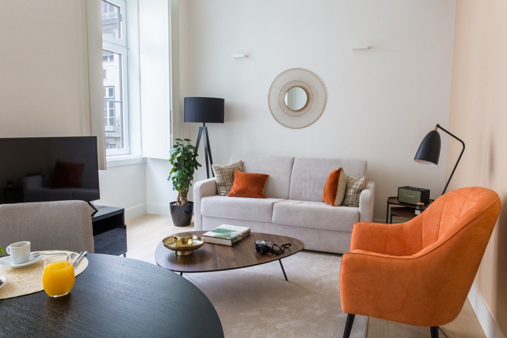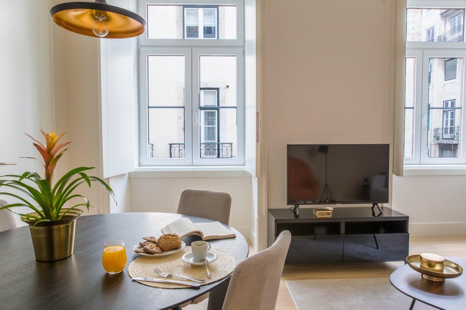 Bright and cheerful, this home will make you feel welcome from the moment you open your suitcase. The sunny living area is decked out in pastel hues, with the occasional pop of orange to add character. There's plenty of space to cook, eat and relax in style as you plan your sightseeing itinerary. The host has added some really thoughtful touches for you to enjoy, from the Marshall speaker to the luxurious toiletries and basic cooking ingredients. Overlooking the vibrant neighbourhood of Baixa, you'll be spoilt for choice when choosing which landmark to see first. The Santa Justa Lift and Praça do Comércio are both mere minutes away, and there are plenty of boutiques, restaurants and coffee shops nearby. Make sure you don't leave without tasting a pastel de nata – one of the best bakeries in town is just a minute away from your front door.