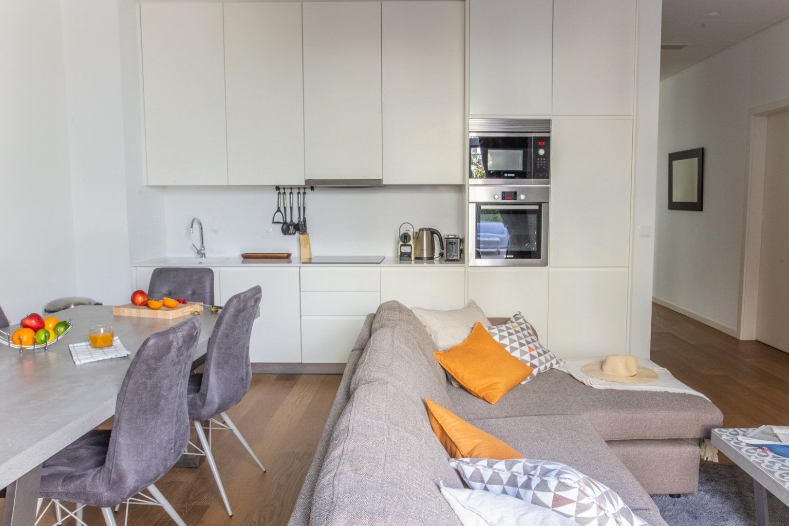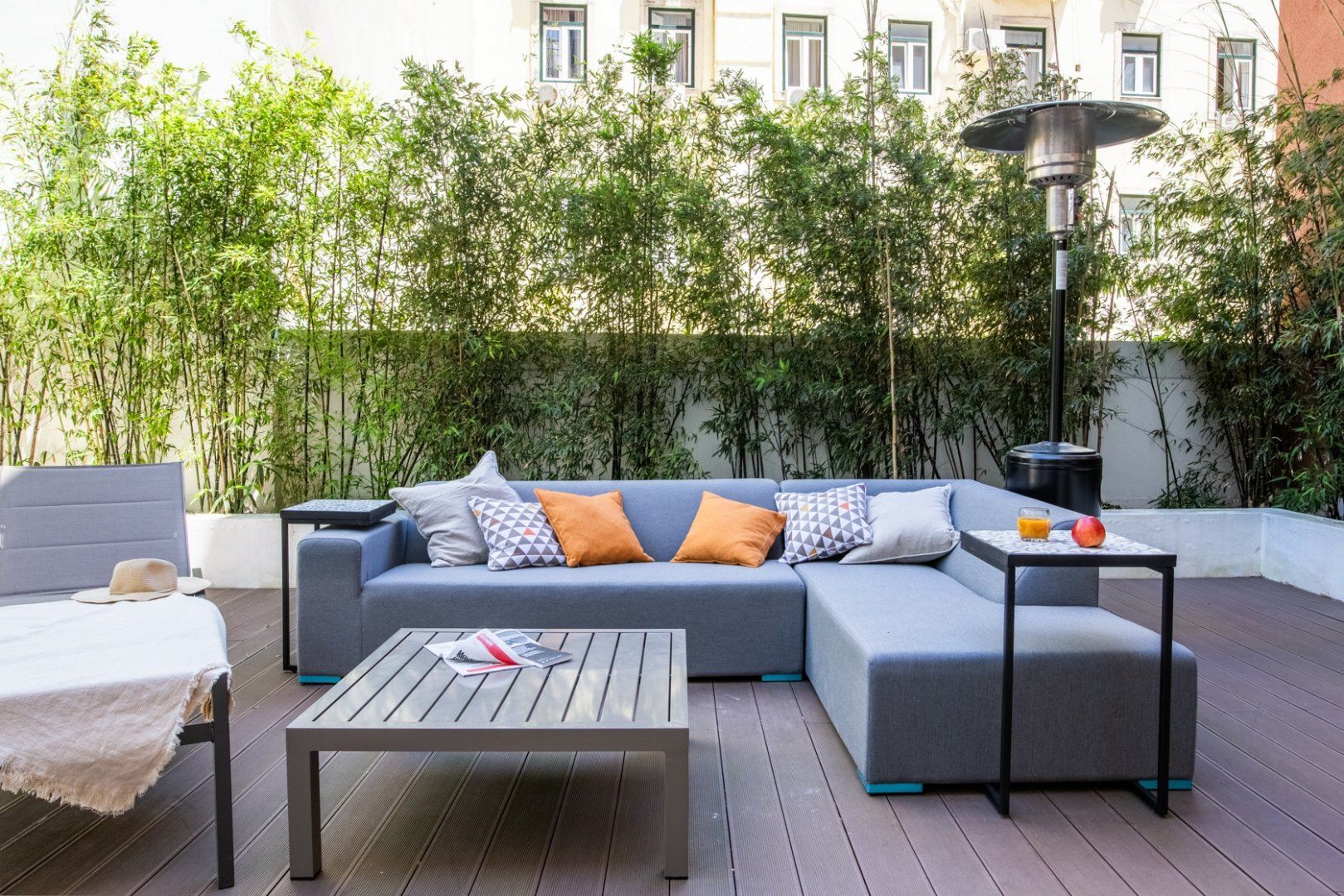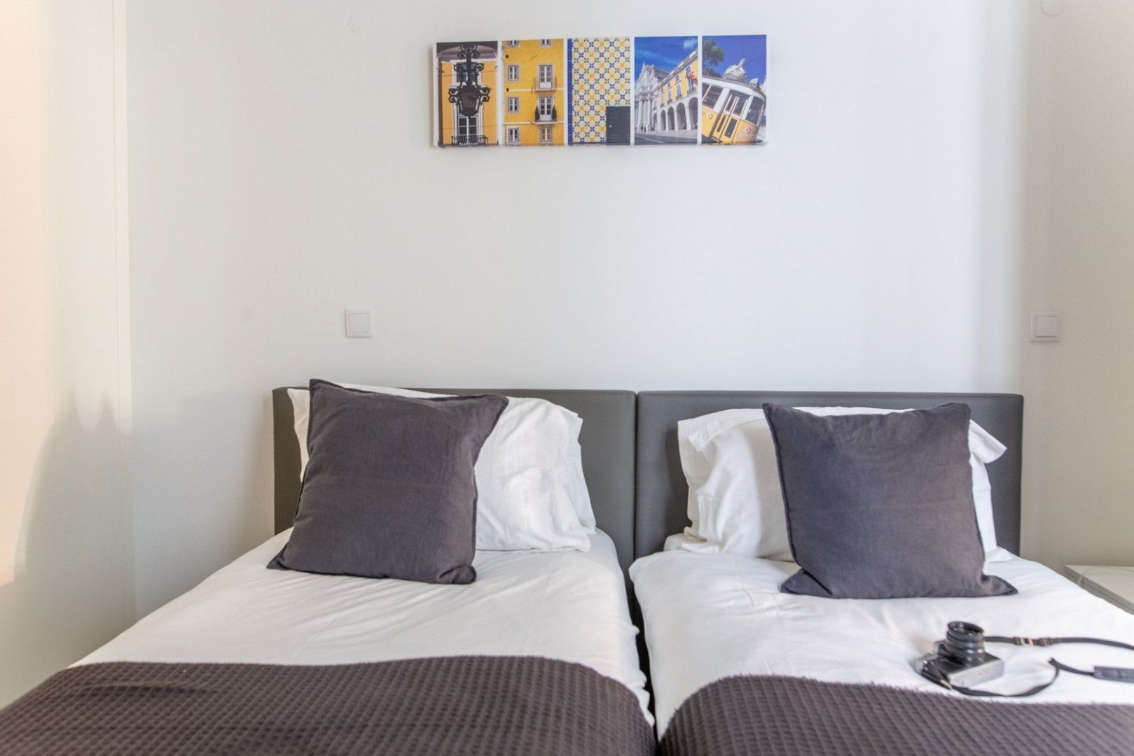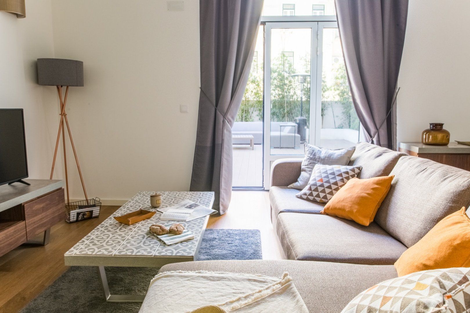 Furnished with comfort and functionality in mind, this clutter-free apartment is finished in warm, earthy tones that feel like home. Start your mornings among the plump cushions on the sofa with a milky coffee as your brood sets the breakfast table. After filling up on traditional Portuguese pastries, step out of your building and onto Praça dos Restauradores, one of the centre’s four grand squares – you’ll be struck by just how quiet your place is despite its bustling location. Turn left and stroll no more than five minutes into the heart of downtown. You’ll find endless boutiques, brunch spots and coffee houses plus the famous Santa Justa elevator and Carmo Convent. Continue walking for ten minutes to reach the picturesque river Tagus or take the historic 28E tram route from Praça Martim Moniz and trundle uphill to São Jorge castle. In the evening, just before sunset, head back to your pad and share a bottle of wine on your spacious private terrace – a real rarity in central Lisbon.