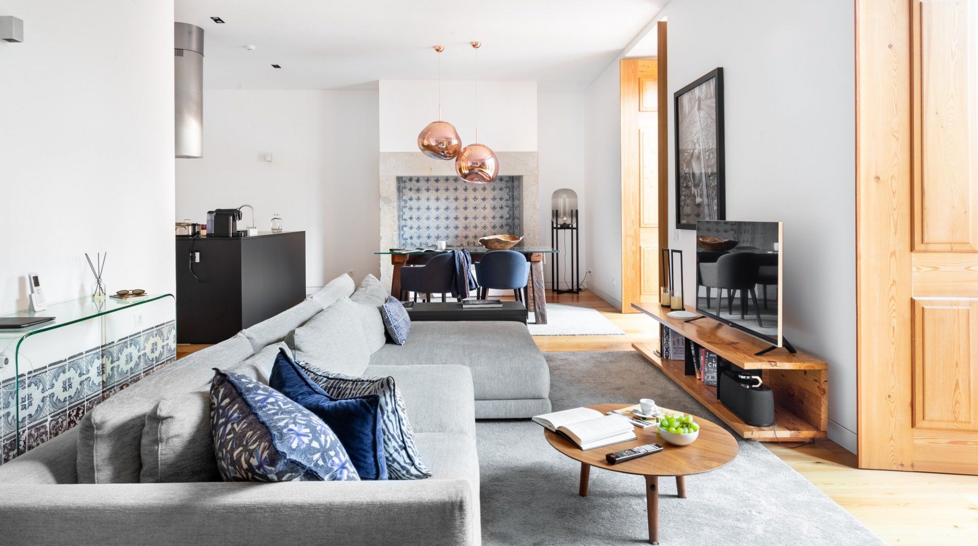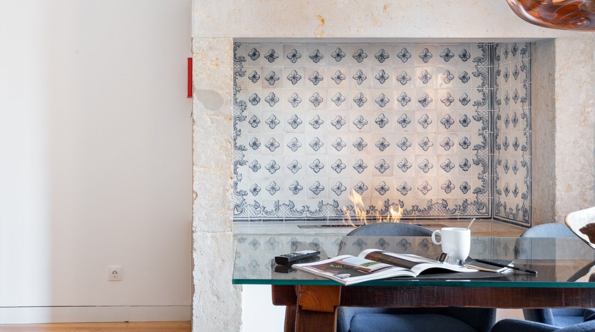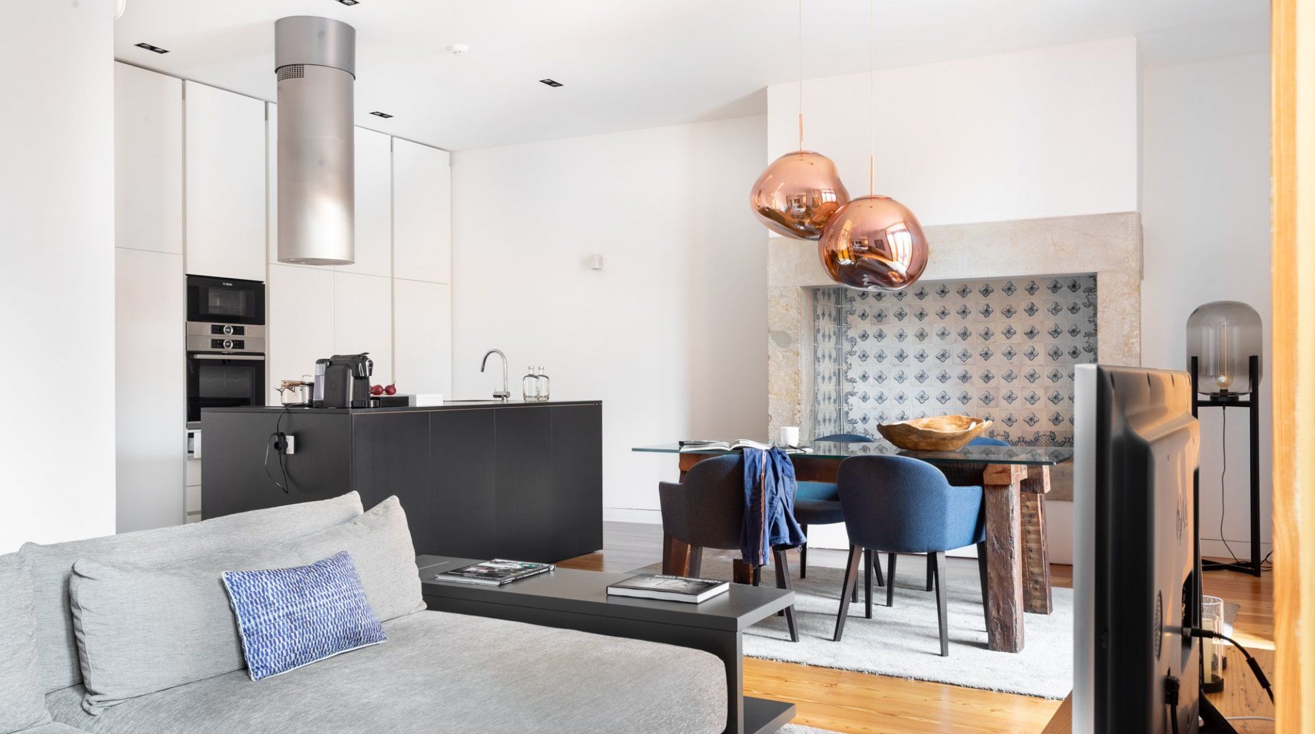 Whether it's the photography prints by Rui Palha, the designer furniture, or the two terraces, there's a lot to be impressed by in Sterling Honey. The location is everything you could want in a trip to Lisbon, while the design is thoughtful and measured, but still with great on-point style and flair. The apartment (along with the others in the building) underwent a renovation by architect Ricardo Flora – he made a concerted effort to modernise the interiors without sacrificing the history of the original structure. From the terracotta walls on the terrace to the use of natural materials through the furnishings and the tiled gas fireplace – it's a space that redefines the original character with a contemporary twist. After an afternoon of discovering the neighbourhood's sought after shopping boutiques, why not come home and pour a glass of wine to sip out on the private terrace? Then once you're well-rested and ready for another dose of Lisbon, make a reservation for dinner at one of the nearby local restaurants. If you're in the mood for Portuguese food, then, of course, you're in the right place, but with the wealth of international cuisine available here – you'll be spoilt for choice when it comes to wining and dining in this central spot in the city.