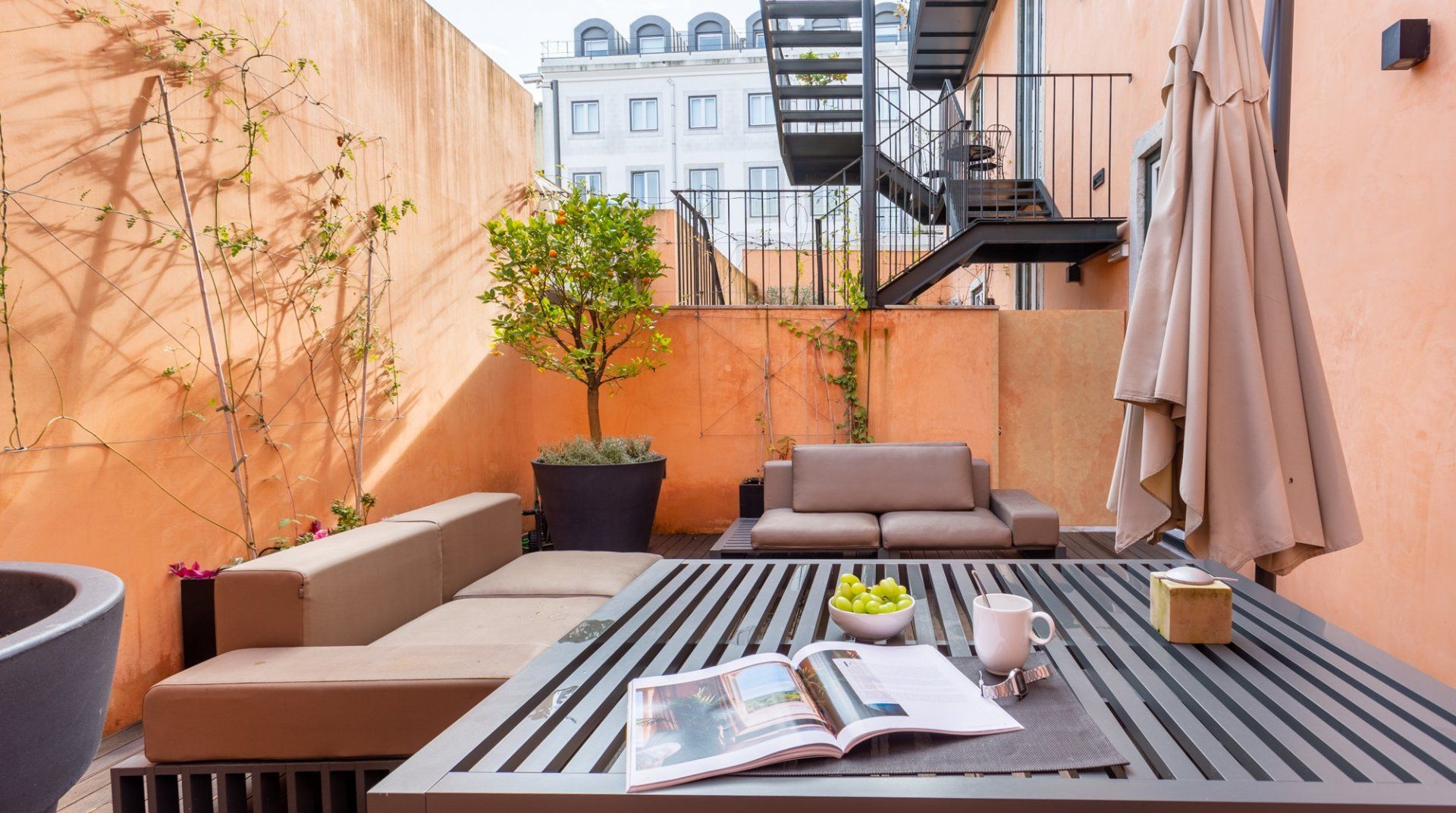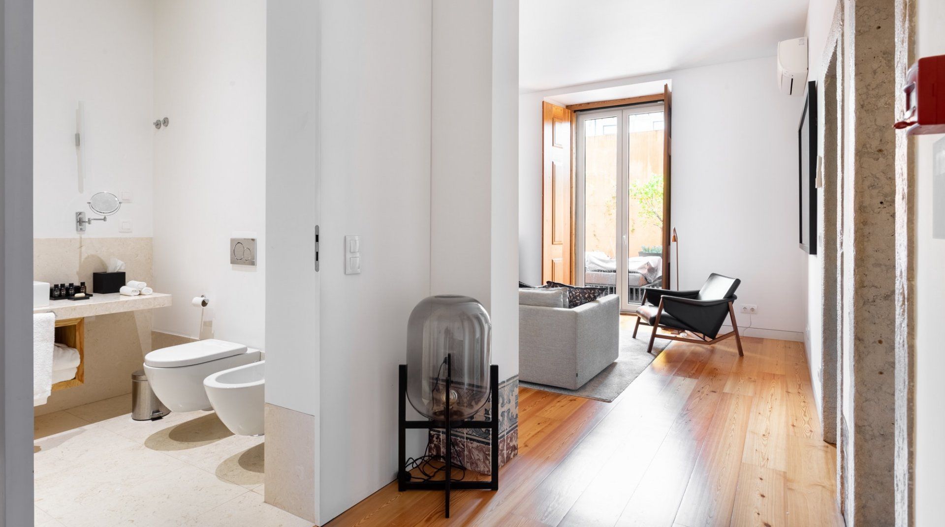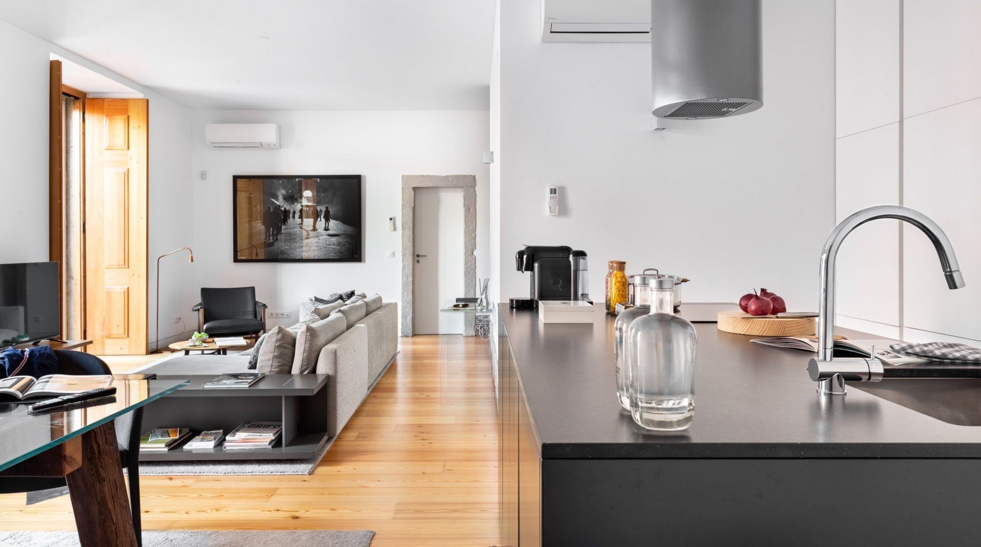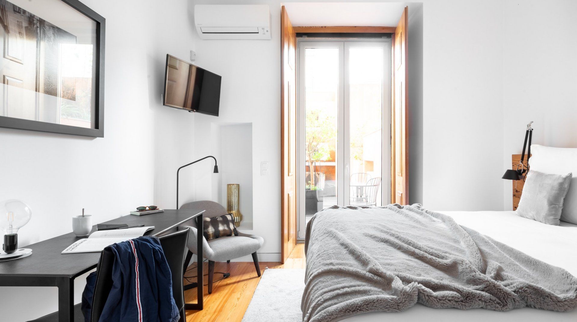 Whether it's the photography prints by Rui Palha, the designer furniture, or the two terraces, there's a lot to be impressed by in Sterling Honey. The location is everything you could want in a trip to Lisbon, while the design is thoughtful and measured, but still with great on-point style and flair. The apartment (along with the others in the building) underwent a renovation by architect Ricardo Flora – he made a concerted effort to modernise the interiors without sacrificing the history of the original structure. From the terracotta walls on the terrace to the use of natural materials through the furnishings and the tiled gas fireplace – it's a space that redefines the original character with a contemporary twist. After an afternoon of discovering the neighbourhood's sought after shopping boutiques, why not come home and pour a glass of wine to sip out on the private terrace? Then once you're well-rested and ready for another dose of Lisbon, make a reservation for dinner at one of the nearby local restaurants. If you're in the mood for Portuguese food, then, of course, you're in the right place, but with the wealth of international cuisine available here – you'll be spoilt for choice when it comes to wining and dining in this central spot in the city.