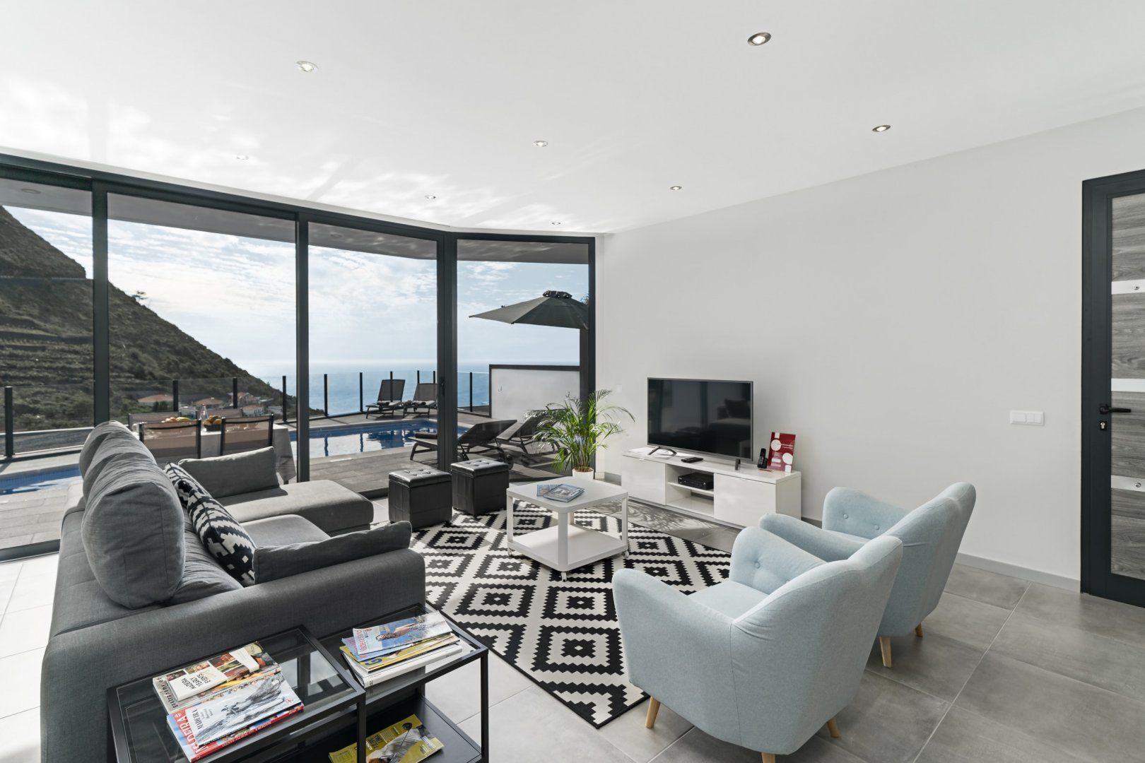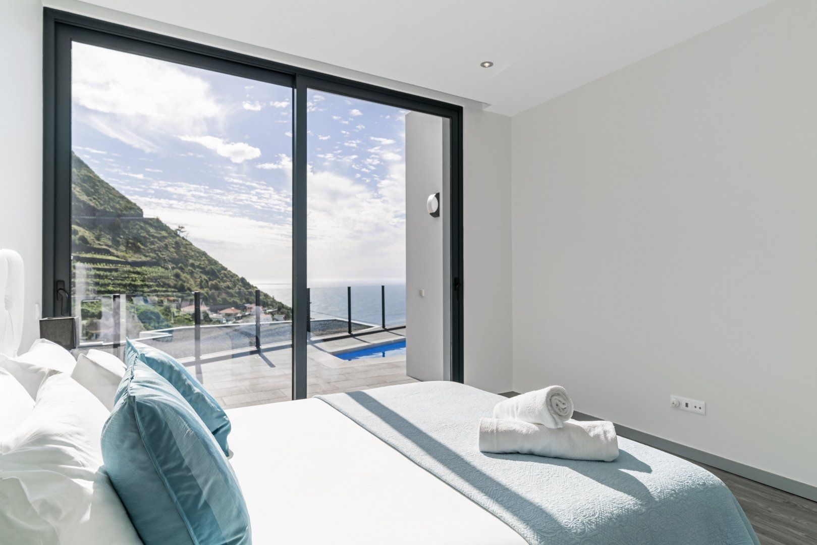This sleek and modern villa is beautifully designed to help you make the most of your Portuguese holiday, with its own private pool and alfresco dining area. Enjoy good food prepared in the fully-equipped kitchen or on the barbecue as you enjoy the expansive views of the surrounding mountains and distant sea horizon, and work on that perfectly bronze holiday tan on the sun loungers by the calm waters. In the evening, the living space is perfect for gathering on the sofa for a movie night while the sun sets outside and the stars blanket the sky. In the morning, you'll be able to open the blinds to stunning views from all three bedrooms, letting the sunlight bathe the whole home in natural light.